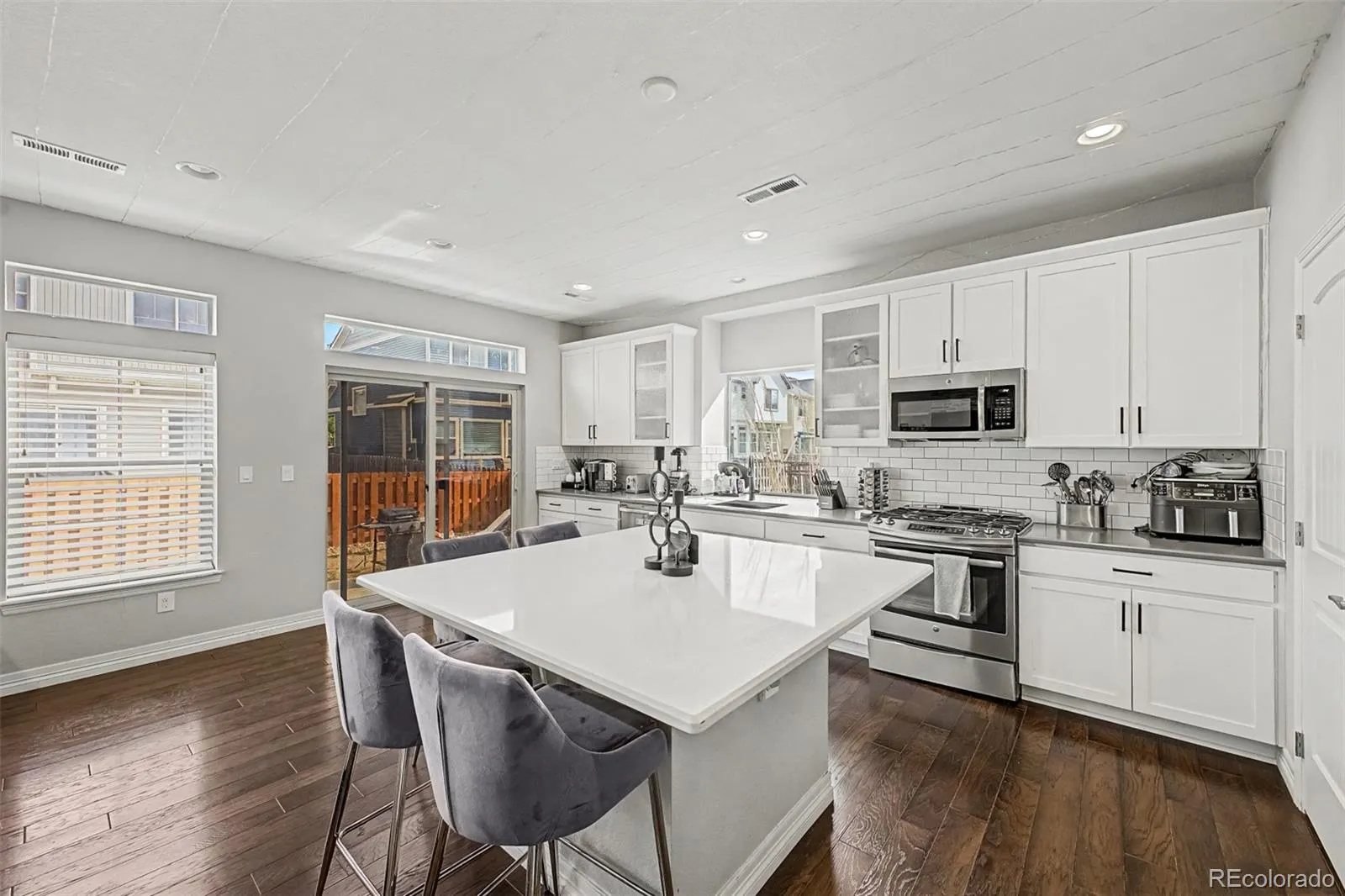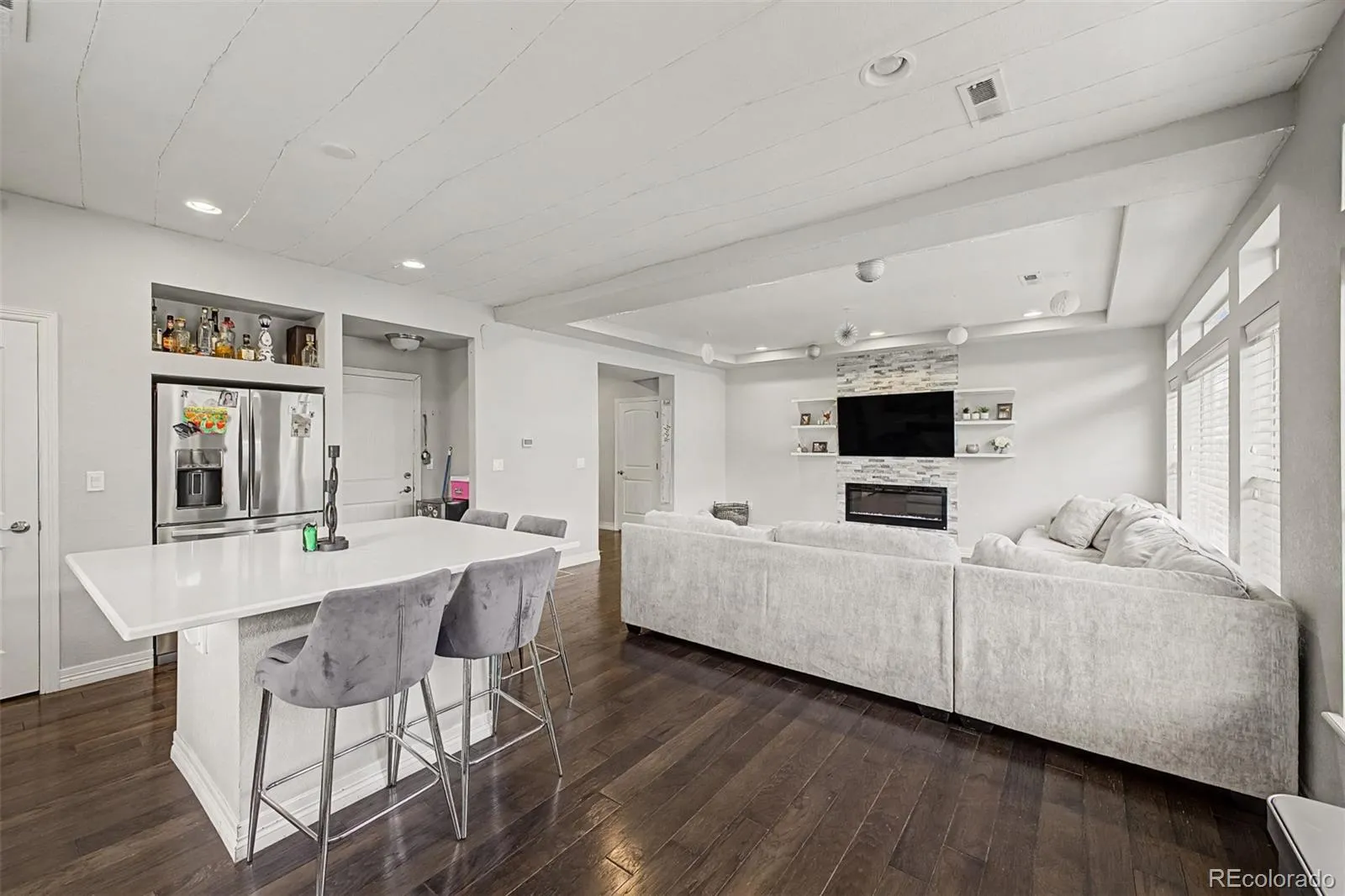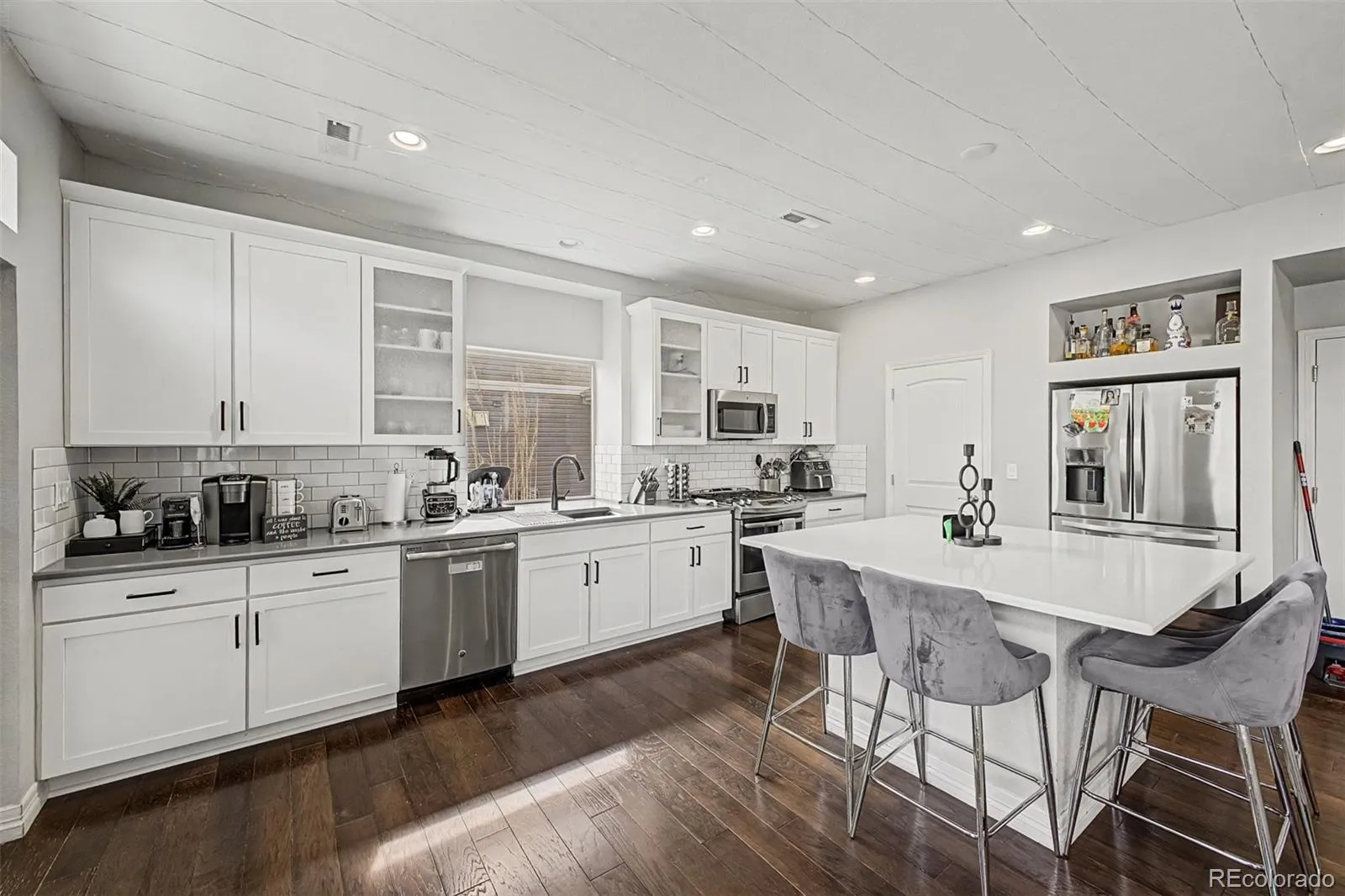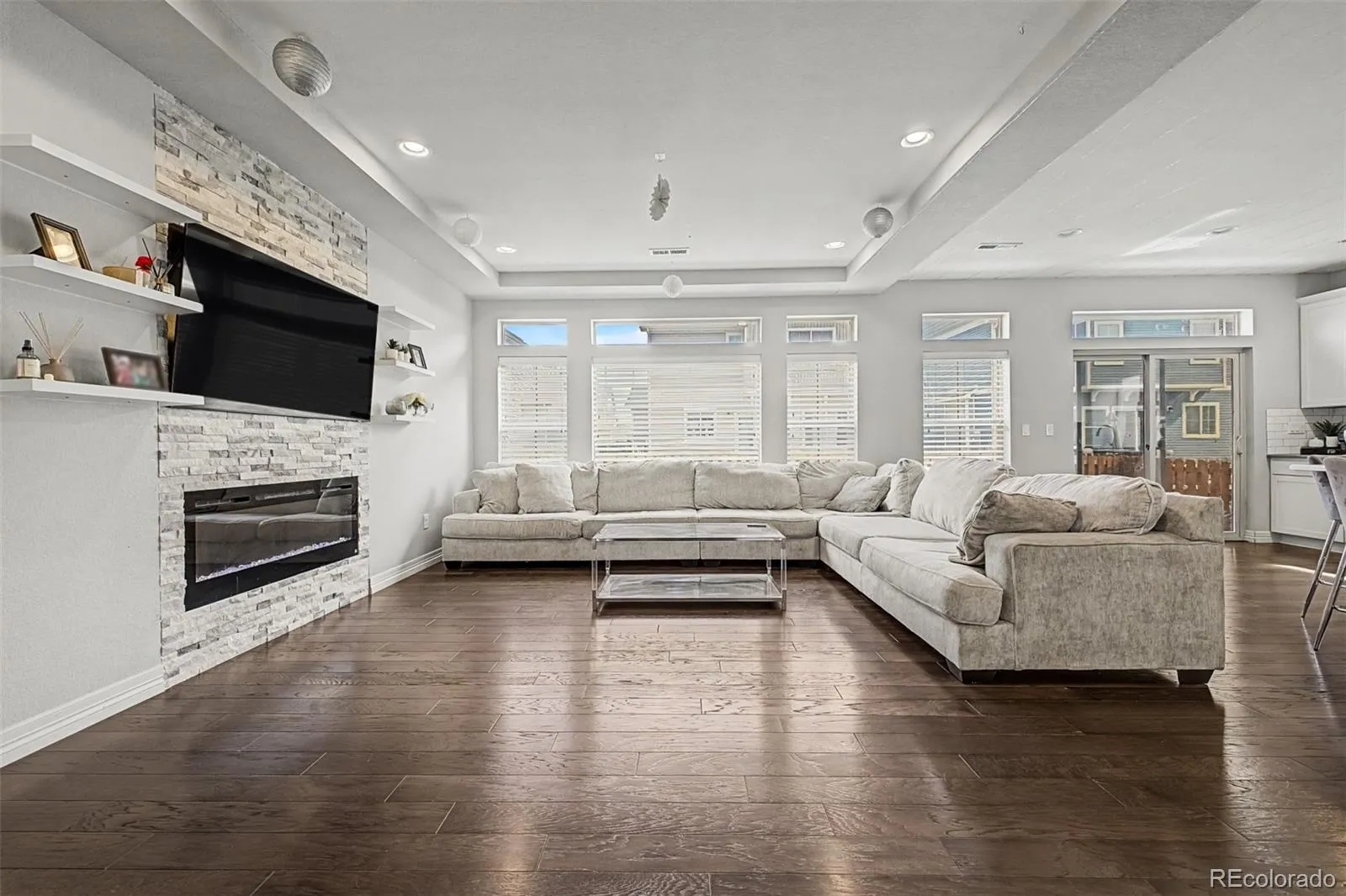 Welcome to your new home! This two-level jewel offers 3 bedrooms, 2.5 bathrooms, and an impressive 3,018 SqFt of living space designed for comfort and modern living. A charming front porch welcomes you to a spacious, open-concept layout filled with abundant natural light, recessed lighting, and warm wood flooring throughout the main areas. The inviting living room features a cozy fireplace, creating the perfect atmosphere for relaxing. The stylish kitchen boasts a large breakfast bar island, sleek stainless steel appliances, subway tile backsplash, and plenty of cabinetry for storage—ideal for hosting gatherings and everyday living. Upstairs, a carpeted loft provides additional living space for a media room, office, or play area! The main bedroom has a bathroom featuring dual sinks, a glass-enclosed shower, and a generous walk-in closet. Additional highlights include an unfinished basement ready for your personal touch, energy-efficient solar panels, and a 2-car attached garage. Private backyard offers great potential—ready for you to finish and customize into your own outdoor oasis. Don’t let this fabulous property slip by!