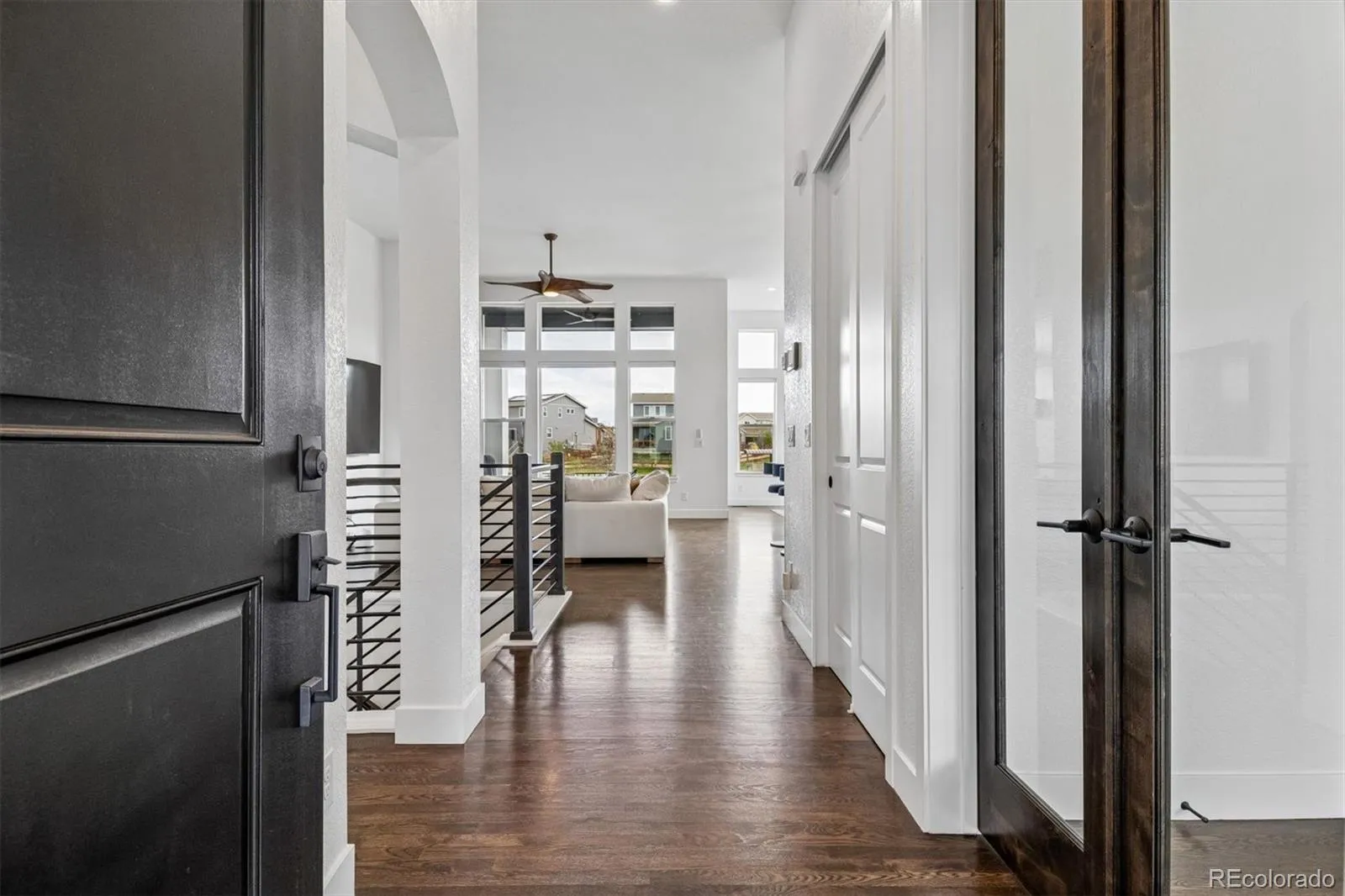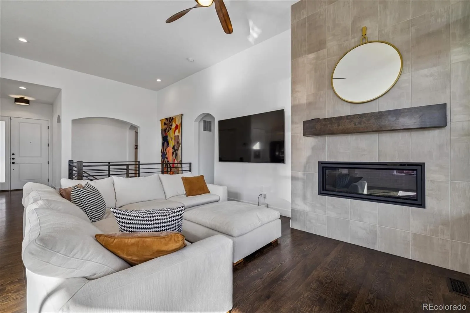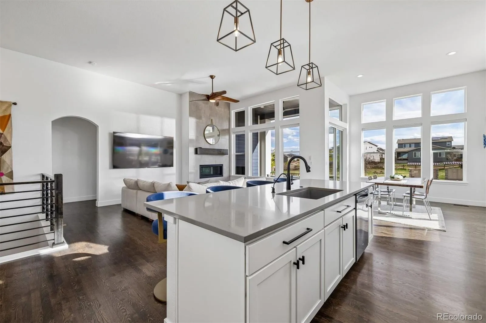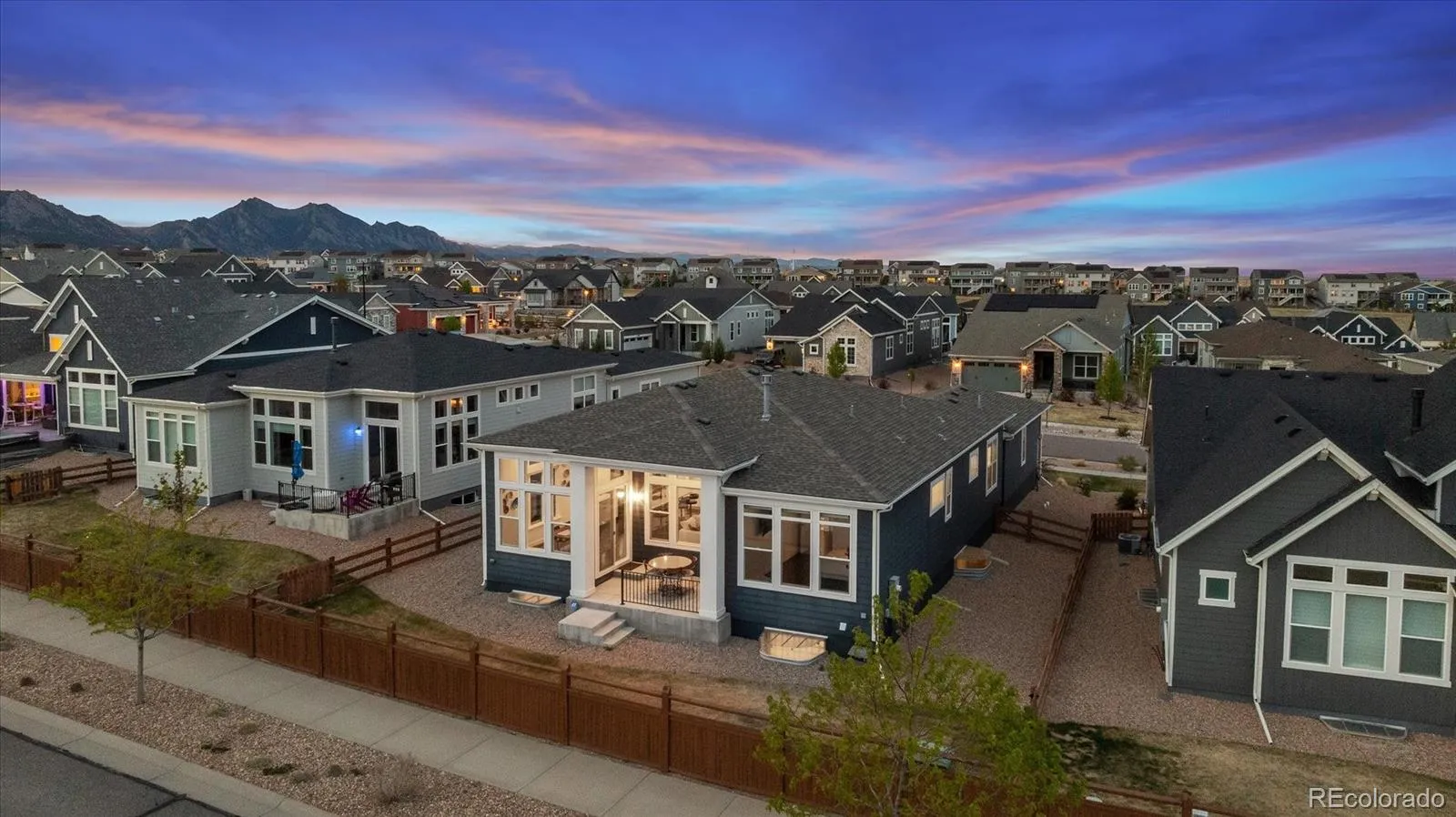 Welcome to a refined ranch-style Remington Homes PATIO HOME in the highly sought-after Candelas community—where modern design, thoughtful craftsmanship, and effortless Colorado living converge. Catch MOUNTAIN VIEWS and BACKING TO pocket PARK setting! GROUNDS maintenance and SNOW REMOVAL are handled for you! Built in 2021, this METICULOUSLY maintained home showcases a southern exposure pouring in natural light, open-concept layout with soaring 12′ ceilings, massive windows with top-down bottom-up blinds throughout and HIGH-END FINISHES. The chef’s kitchen is designed to impress, featuring a striking quartz island, abundant cabinetry, walk-in pantry, and open-concept to the informal dining & living space; perfectly suited for gatherings. The MAIN-LEVEL PRIMARY suite offers a true retreat, complete with a spa-inspired bath, generous proportions, and a walk-in closet, while a secondary bedroom 2 + dedicated home office provide flexibility for remote work, or creative pursuits. MAIN LEVEL LAUNDRY room offers hanging bar and extra cabinet storage. The newly completed FINISHED BASEMENT unlocks exceptional versatility, offering a family room with wet bar rough-in, massive guest suite with ensuite bath + Bed 4 with 3/4 bath and oversized bonus and game spaces—multi-generational living. Don’t miss, reverse osmosis water filtration, whole house water softener, tankless H2O, humidifier & structural floor. Outdoors enjoys fenced FULLY maintained yard & covered patio or front porch invite relaxed evenings framed by Colorado’s natural beauty. The finished side load OVERSIZED 3-CAR garage adds rare functionality. RV dump station + front & rear sprinklers. Enjoy access to Candelas’ premier amenities, including resort-style pool, fitness center, scenic trails, parks, and community garden—all just moments from top-rated schools, shopping, dining, and endless outdoor adventure. This is more than a home—it’s a polished, turnkey lifestyle in one of Arvada’s most desirable communities.