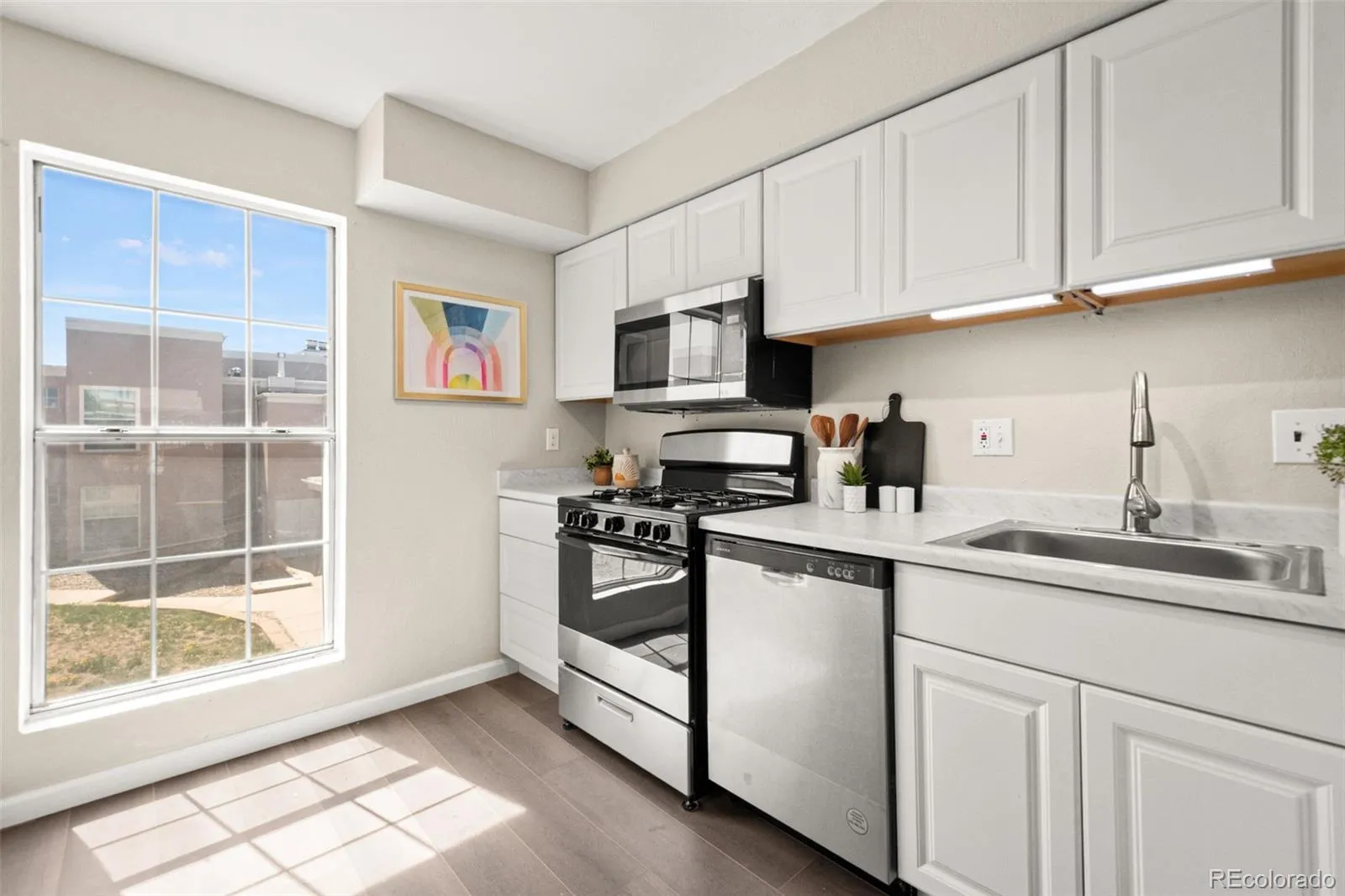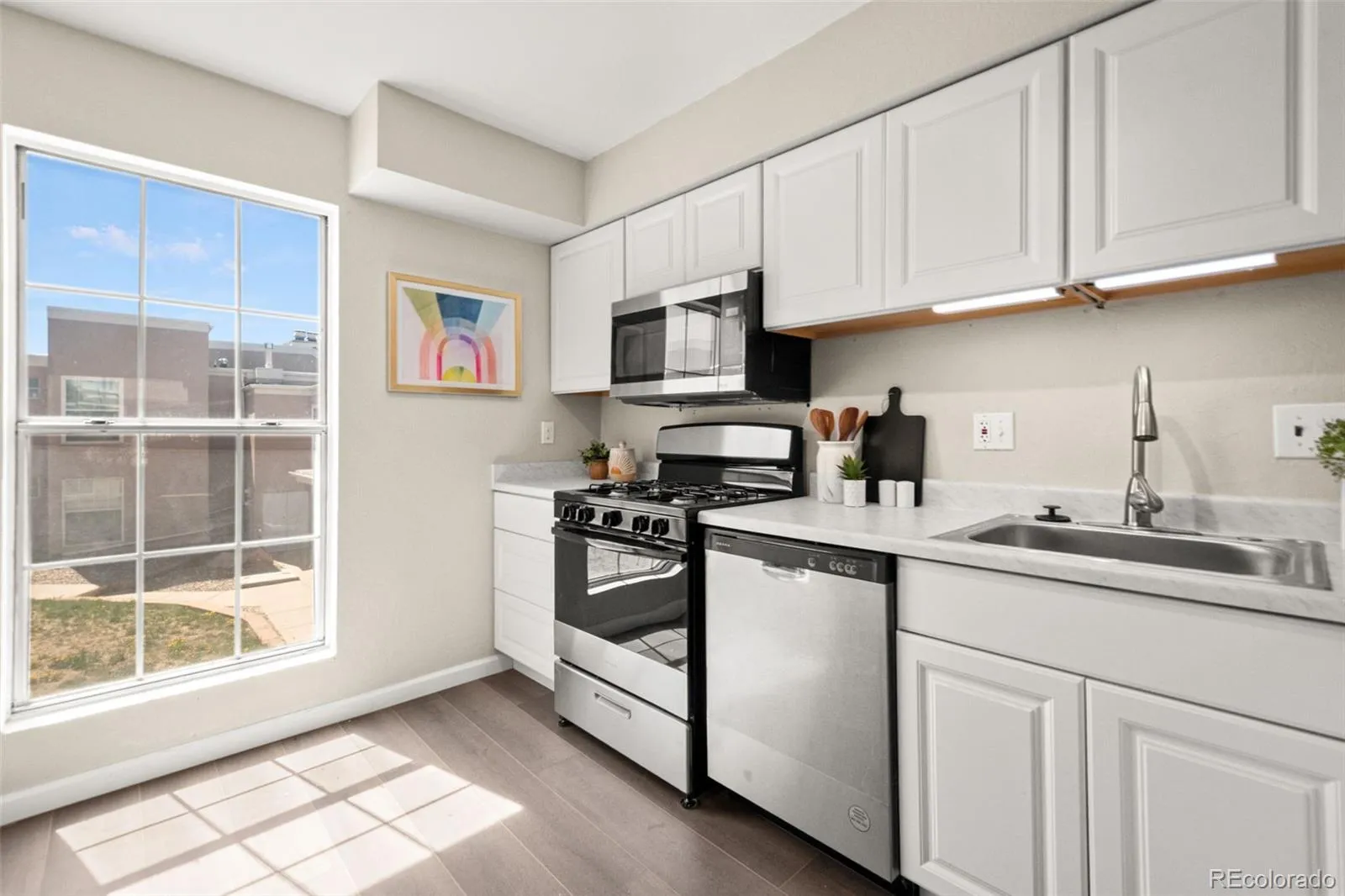 Welcome to this exquisitely remodeled 2-bedroom, 1-bath condominium nestled in the desirable Sierra Pointe community of Colorado Springs. Perfectly positioned in a prime central location, this sophisticated residence is just moments from premier shopping, renowned universities, vibrant restaurants, and abundant recreation, making it an ideal blend of convenience and comfort. Step inside to discover a bright, airy, and inviting interior that boasts soaring vaulted ceilings and expansive high windows, flooding the space with natural light and creating an elevated sense of style and space. Every inch of this home has been thoughtfully designed with luxury and livability in mind. The kitchen is a chef’s dream, featuring gleaming stainless steel appliances, a sleek gas range, and refreshed cabinetry — all complemented by modern finishes and a refined aesthetic. Entertain or unwind in the open-concept living area, adorned with luxury vinyl plank flooring that offers durability and easy maintenance without sacrificing elegance. Retreat to either of the two spacious bedrooms, including one with a generously sized walk-in closet, perfect for stylish storage solutions. The updated bathroom shines with contemporary touches, creating a serene spa-like ambiance. This charming unit also offers reserved parking, a comprehensive HOA that covers many essentials, and access to well-maintained community amenities. Whether you’re a first-time buyer, downsizer, or savvy investor, this move-in-ready condo promises modern luxury, comfort, and convenience in one of Colorado Springs’ most accessible and dynamic areas. Don’t miss your chance to live instyle at Sierra Pointe—where location meets lifestyle!