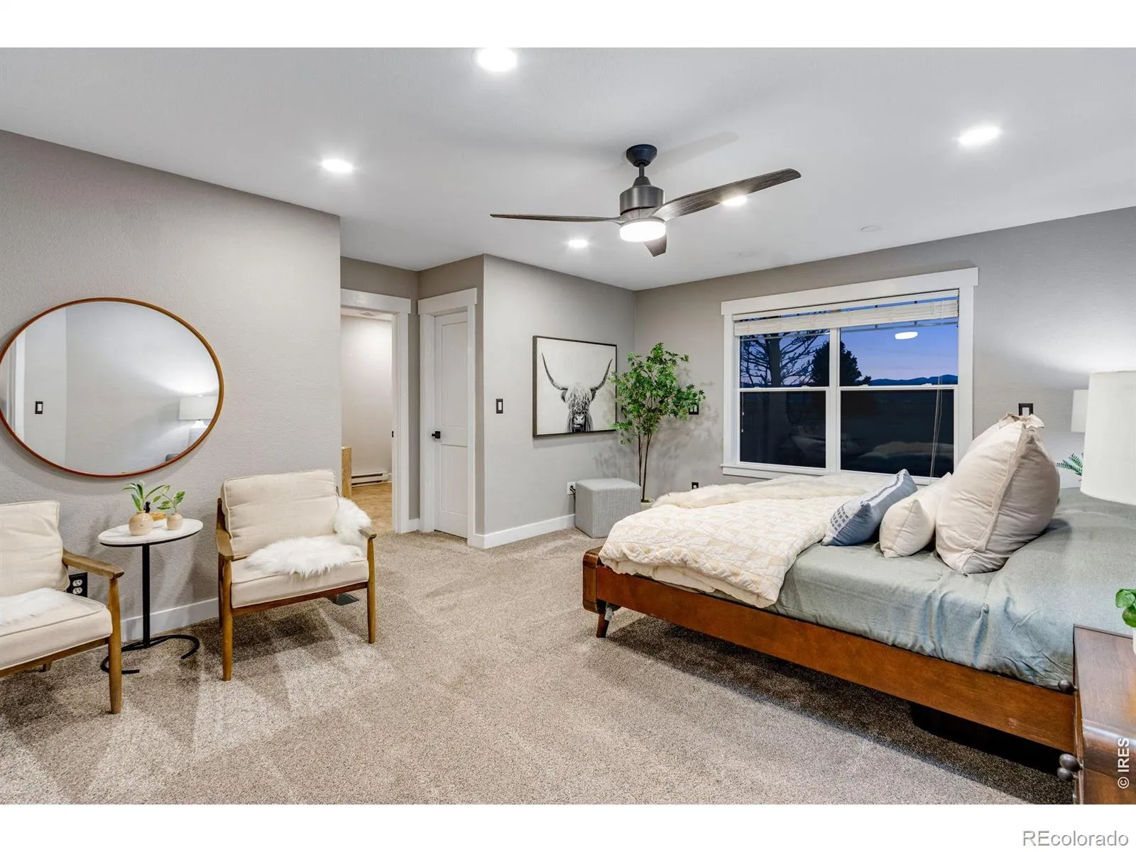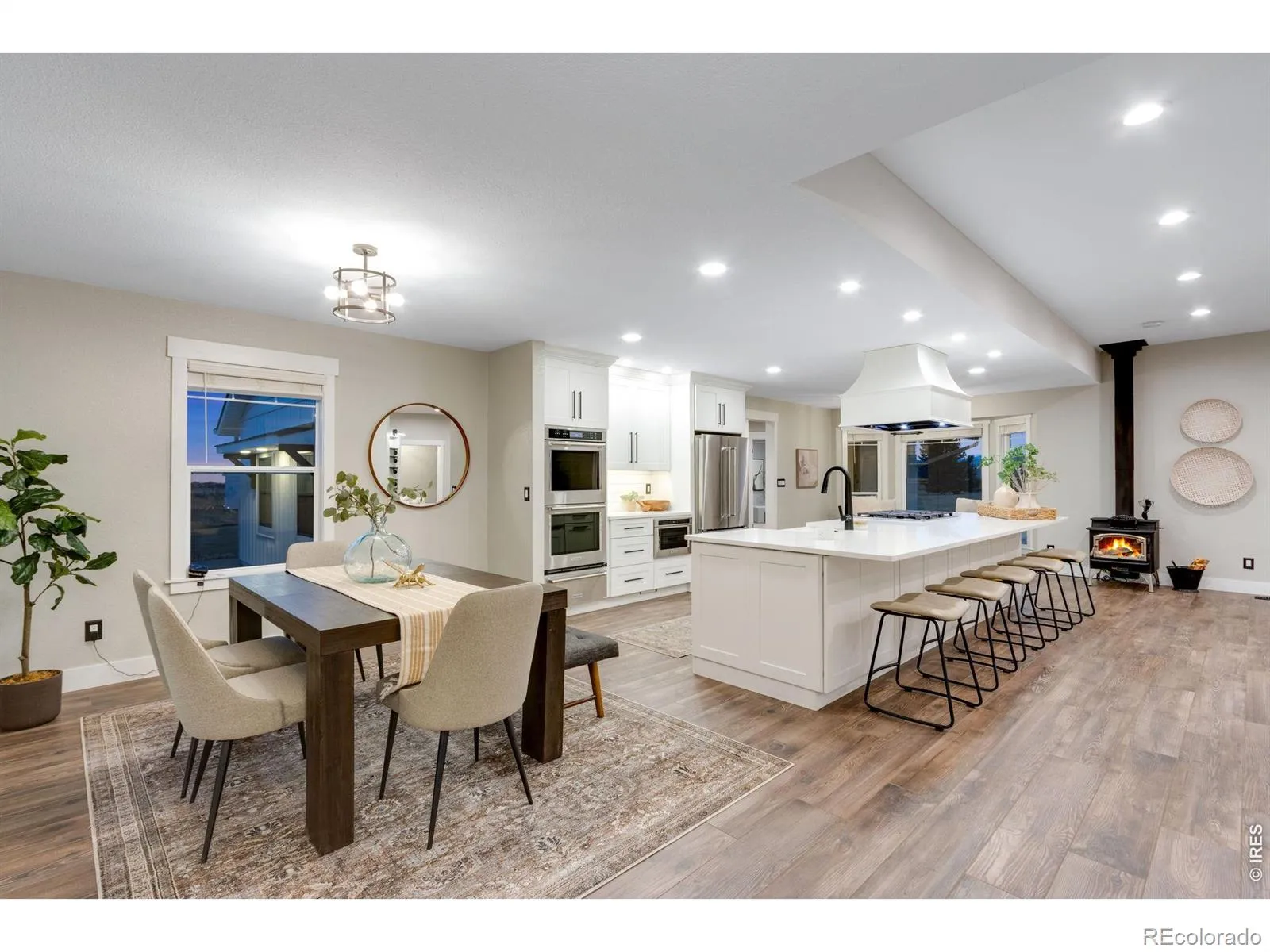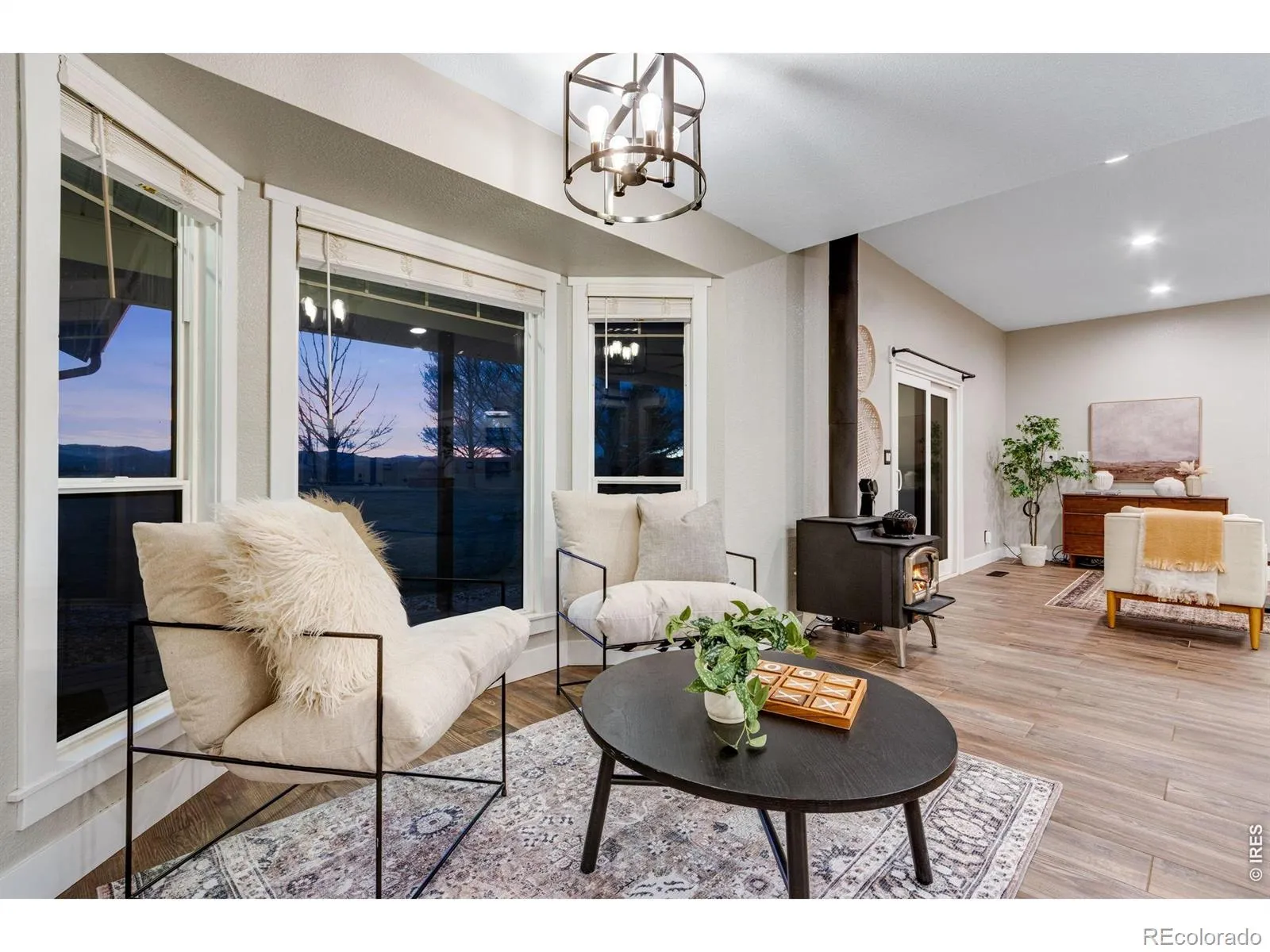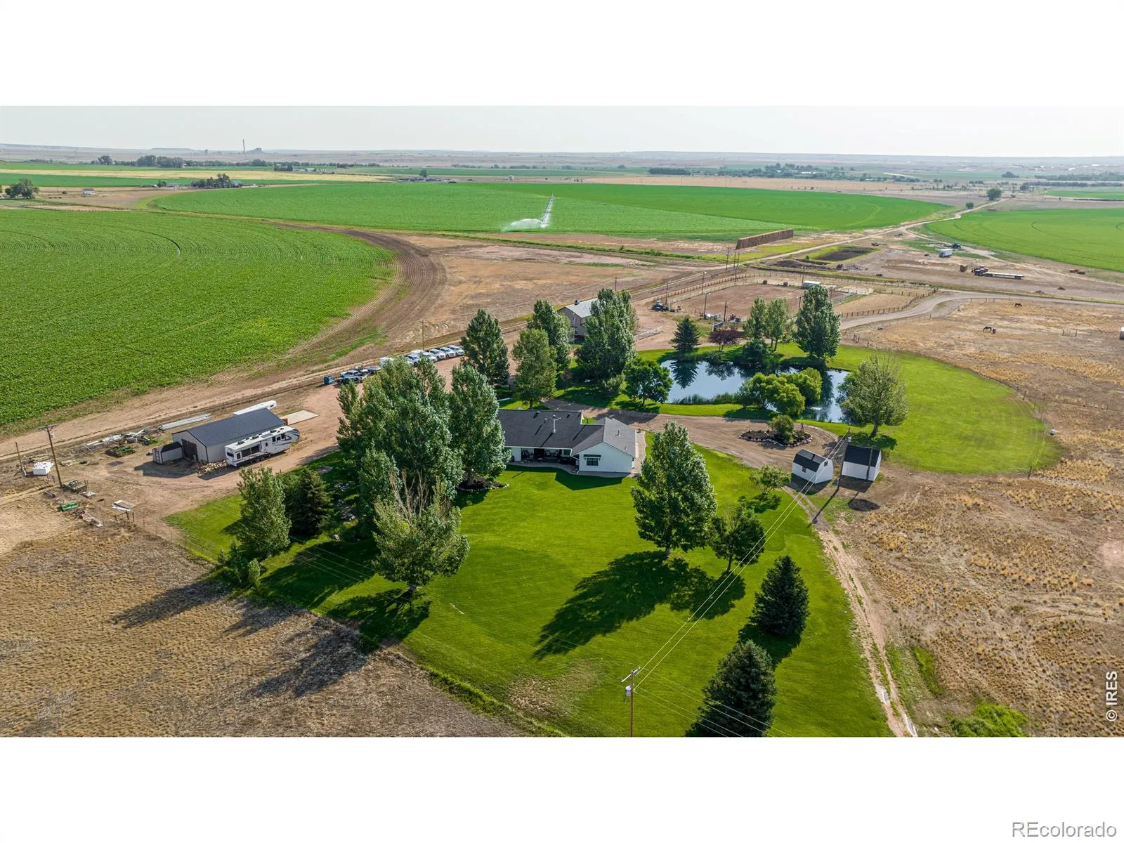 Exceptional, fully updated equestrian estate on 35.669 acres w/ NO HOA, NO METRO TAX & open zoning. Originally built in 1998 & extensively remodeled in 2023, offering privacy, functionality, & panoramic Rocky Mountain views. This rare property features a stocked pond w/ bass, dock, & sitting areas; 4 fenced pastures; 5 loafing sheds; round pen; 240′ x 137′ lite riding arena; pump shed; 3 storage sheds; & 8 exterior water hydrants, all accessed by a private driveway set back a .5 miles from the county road for privacy. Equestrian amenities are anchored by a 3,888 sq ft barn featuring 6 stalls each w/ private runs, tack room, wash bay, hay storage, a 2,232 sq ft loft, main-level concrete patio, & upper-level observation deck. A 1,545 sq ft detached drive-through RV/boat garage & shop features 220V, added electrical, air compressor, & included shelving, cabinets, & workbench. The park-like setting includes mature landscaping, sprinkler & drip systems, wood-burning fire-pit, horseshoe pits, expansive east-facing patios for sunrise views, & west-facing covered & uncovered patios w/ ceiling fan overlooking nightly Rocky Mountain sunsets. The primary residence showcases a split floor plan, front office, formal dining, white trim, new windows & doors, upgraded lighting, new paint & carpet. The chef’s kitchen features a large island, quartz countertops, SS appliances, 6-burner gas range, commercial hood, double ovens, warming drawer & a walk-in pantry. Living spaces include a family room w/ wood-burning fireplace, oversized bedrooms including a private guest en-suite, 2 beds w/ a Jack-and-Jill bath, & a luxurious primary bedroom w/ retreat featuring a 5-pc. bath, & two walk-in closets. Home also features a massive laundry room designed for everyday efficiency & includes a mini refrigerator & ice-maker. For a full list of features, floor plan, or to schedule a showing, please e-mail brokers