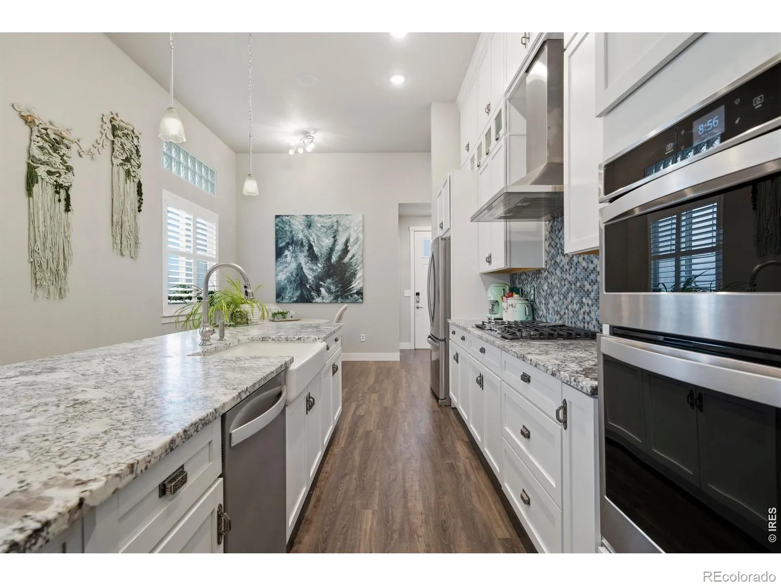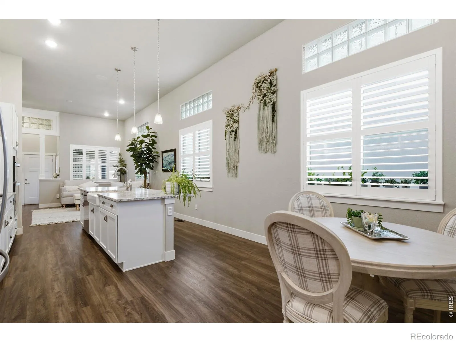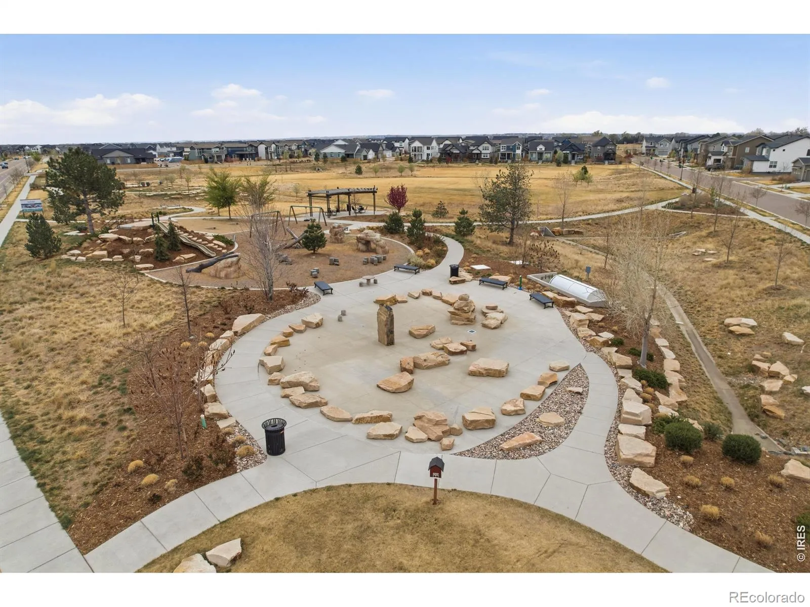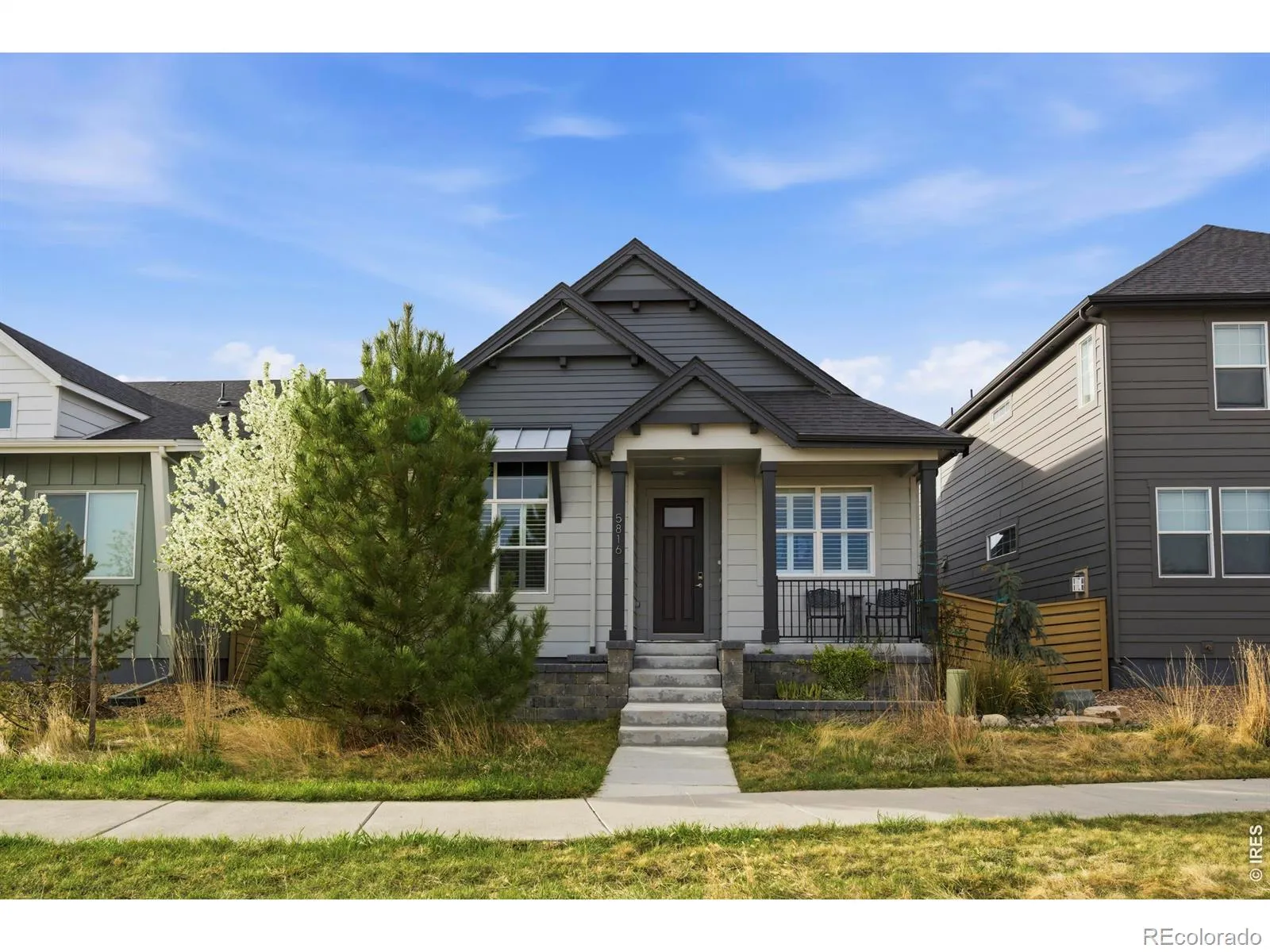 Set on a premium open-space lot in Trailside, this extensively upgraded 2020 ranch offers model-home quality throughout. Cottage-style charm outside pairs with an open, spacious interior designed for everyday living and entertaining. Inside, you’ll find soaring 12-foot ceilings, a private built-in office, a striking great room with gas fireplace, and a beautifully upgraded kitchen with granite countertops, premium stainless steel appliances, full-height cabinetry, and a large dine-in island. Premium plantation shutters throughout add a polished, upscale look, while built-in main-level speakers, back patio prewired for speakers, and a whole-home central vacuum system add everyday convenience and comfort. All kitchen and laundry appliances stay with the home. The main-level primary suite features an upgraded en suite bath with oversized shower and upgraded cabinetry. A second bedroom, full bath, and main-level laundry complete the main floor. The finished basement adds a large family room, kitchenette, third bedroom, and 3/4 bath, while the unfinished area offers future expansion potential. Outside, enjoy three patio and seating areas, including two covered spaces, along with permanent holiday lighting.