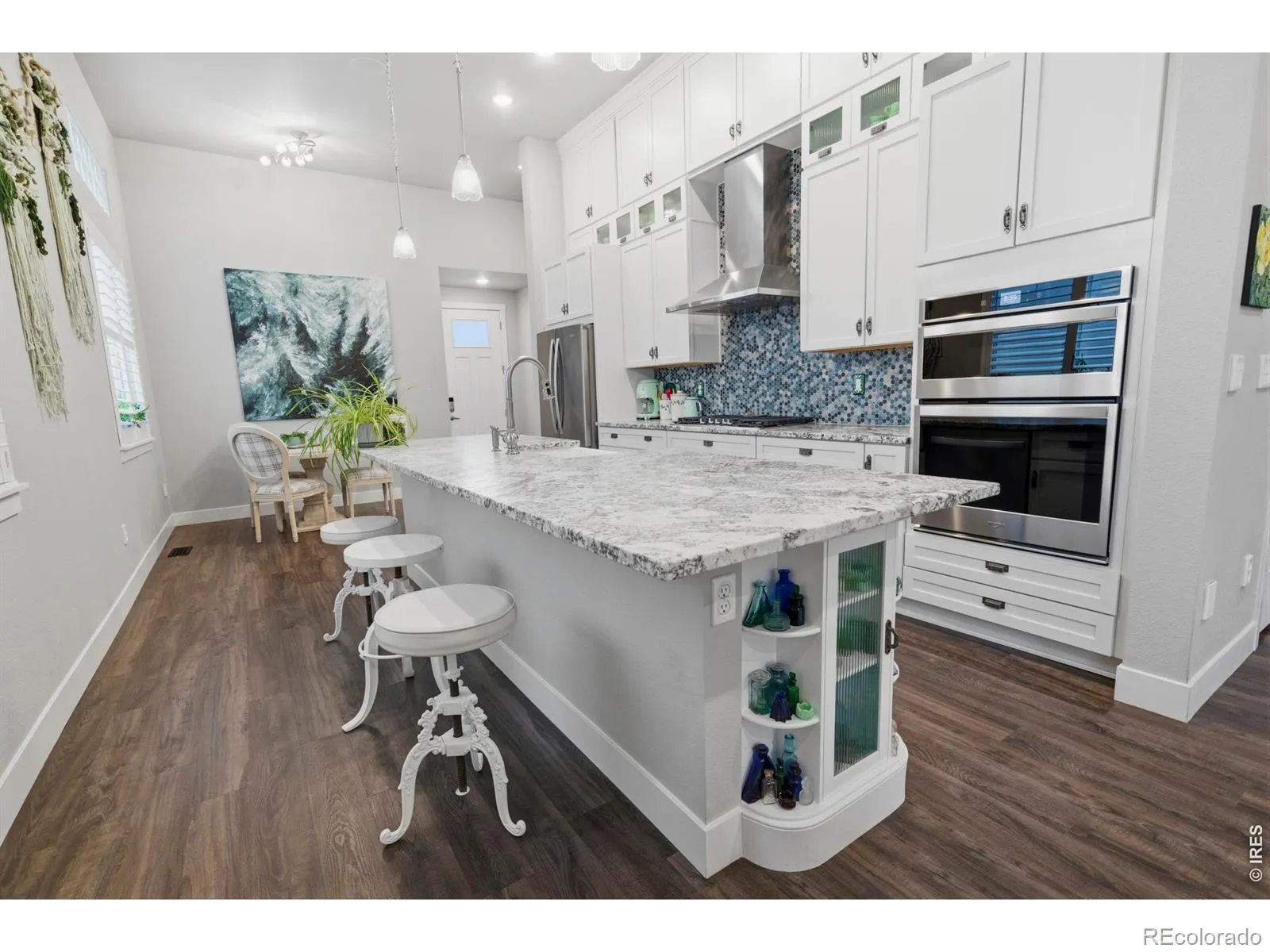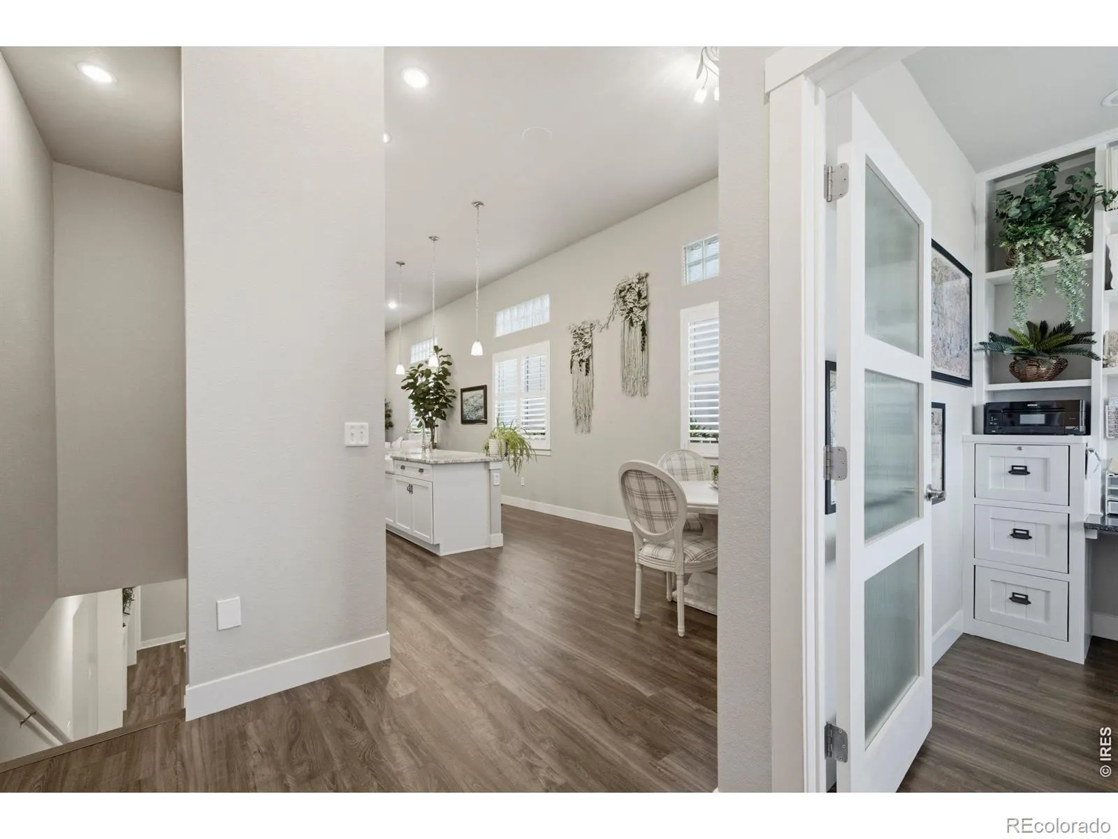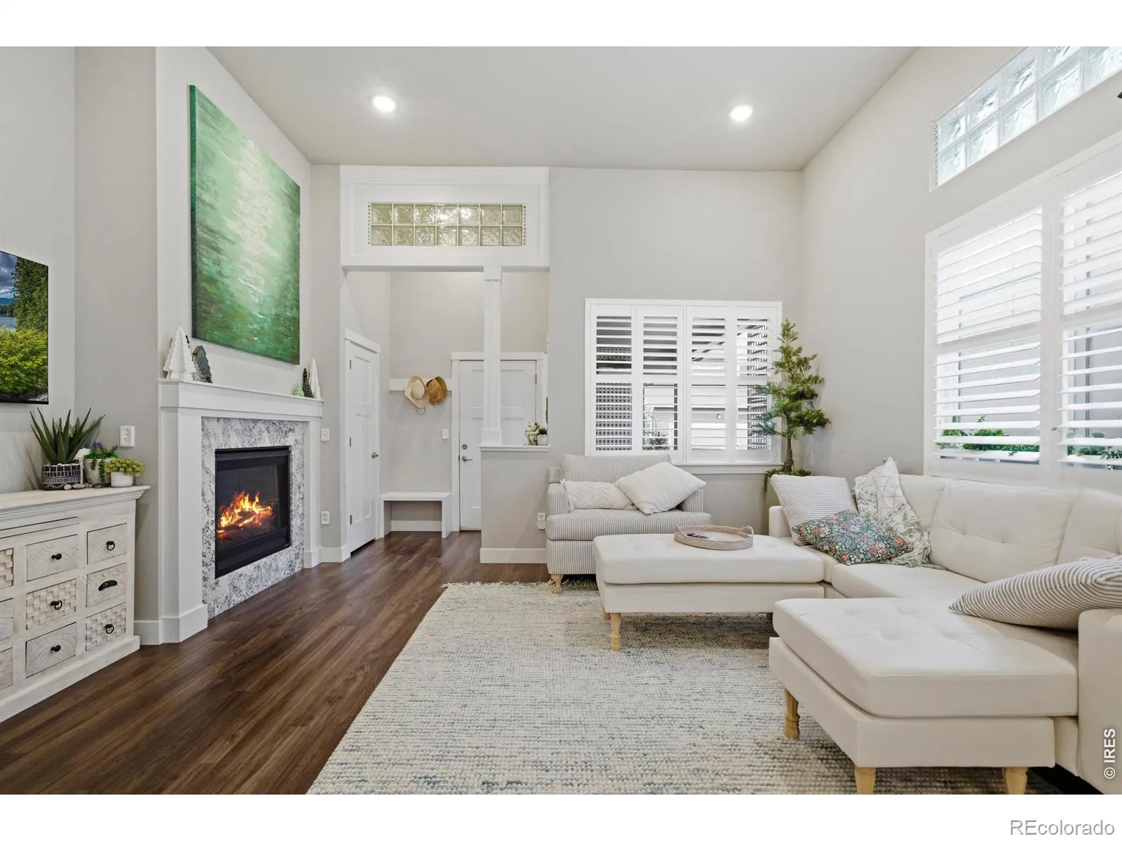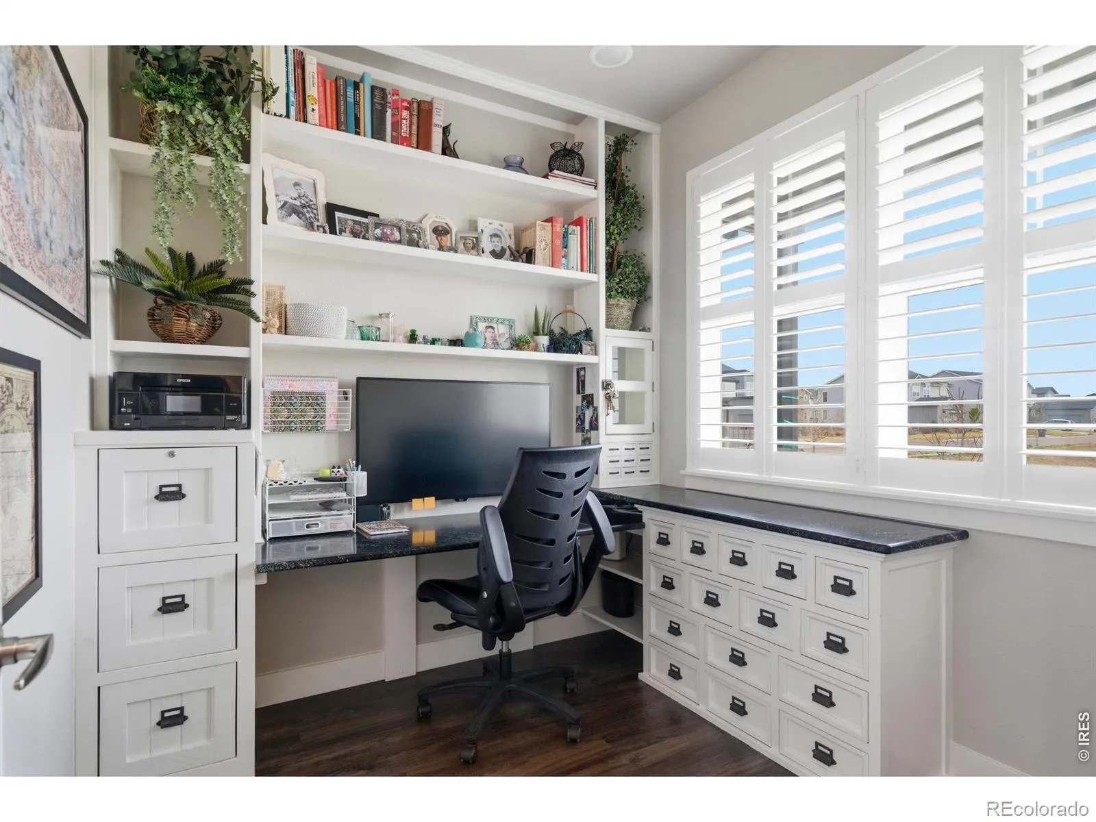 Set on a premium open-space lot in Trailside, this extensively upgraded 2020 ranch offers model-home quality throughout. Cottage-style charm outside pairs with an open, spacious interior designed for everyday living and entertaining. Inside, you’ll find soaring 12-foot ceilings, a private built-in office, a striking great room with gas fireplace, and a beautifully upgraded kitchen with granite countertops, premium stainless steel appliances, full-height cabinetry, and a large dine-in island. Premium plantation shutters throughout add a polished, upscale look, while built-in main-level speakers, back patio prewired for speakers, and a whole-home central vacuum system add everyday convenience and comfort. All kitchen and laundry appliances stay with the home. The main-level primary suite features an upgraded en suite bath with oversized shower and upgraded cabinetry. A second bedroom, full bath, and main-level laundry complete the main floor. The finished basement adds a large family room, kitchenette, third bedroom, and 3/4 bath, while the unfinished area offers future expansion potential. Outside, enjoy three patio and seating areas, including two covered spaces, along with permanent holiday lighting.