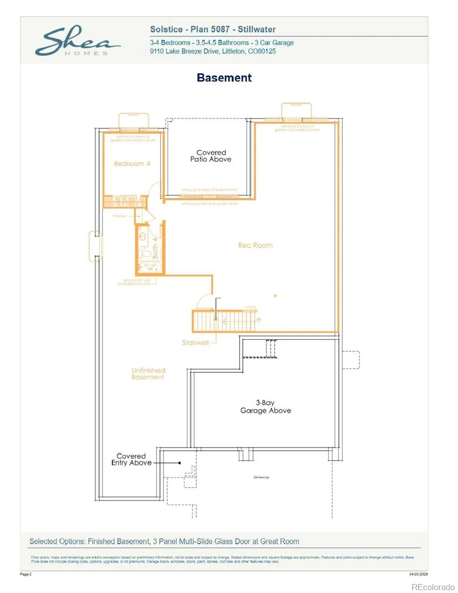 Beautiful one-story home in the desirable Solstice Community by Shea Homes. Solstice is surrounded by Chatfield State Park on 3 sides of the community and acreage parcels on the 4th side. This home has 4 bedrooms, 4.5 bathrooms, study, finished basement with wet bar, fireplace, covered patio, and 3-bay garage. Design finishes include Evoke luxury plank flooring in Canyon/Taylor, AZT/DT engineered stone counter tops in Altais White, horizontal iron railings, and Yorktowne Brockton maple painted cabinets in White Icing and Earl Grey. Please contact a community representative for details. The Mirabelle Metropolitan Districts provide various services to the property and in addition to the estimated taxes, a $40 per month operations fee is imposed.