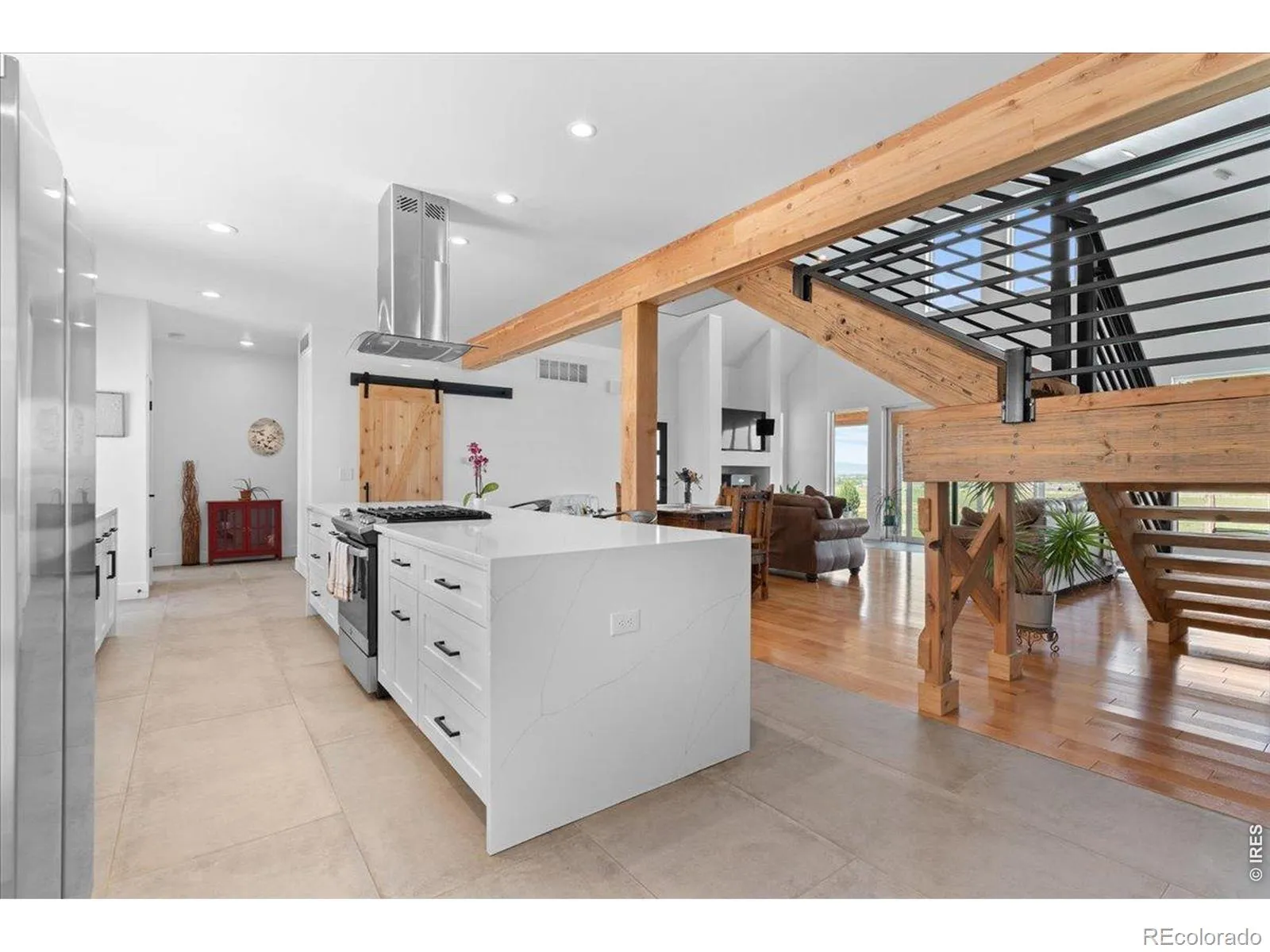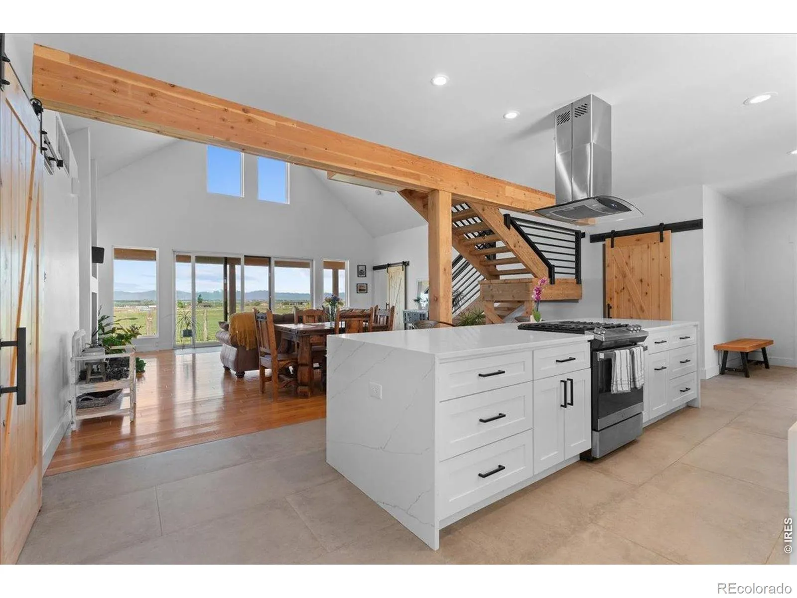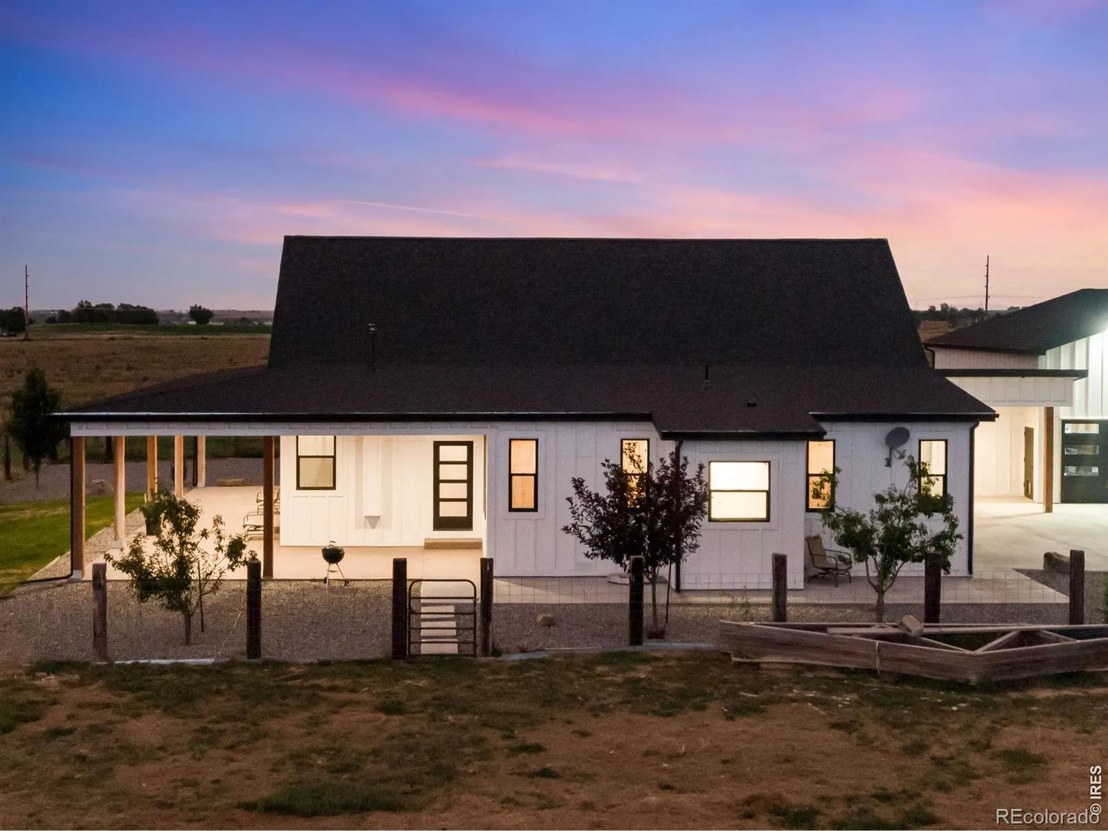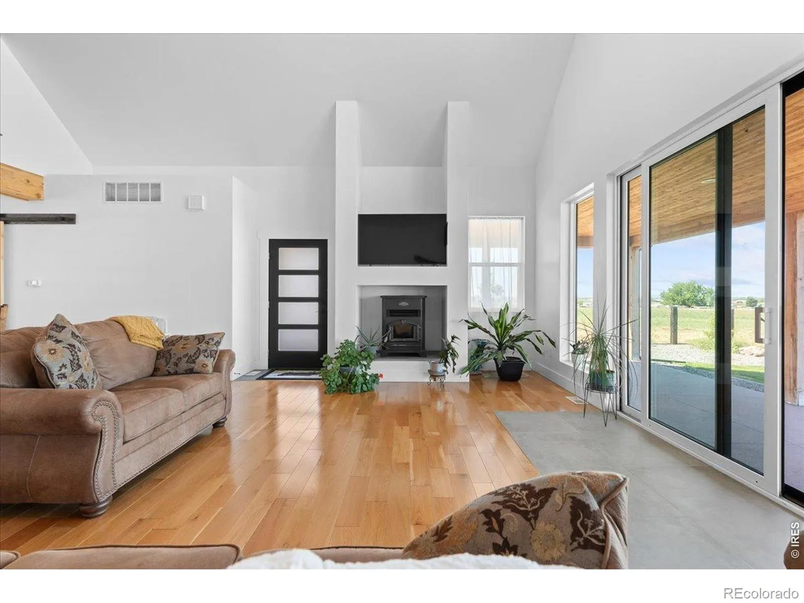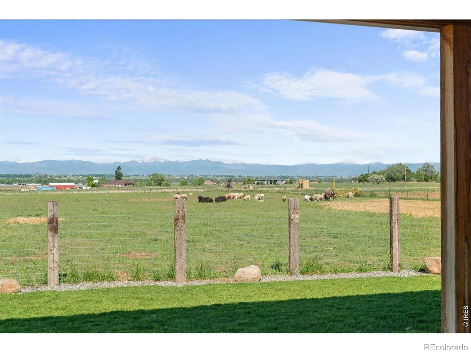 Current Buyer Flaked so now is your chance. No inspection items were noted by the buyers. Tucked away behind a private gate, on 6.15 serene acres zoned Agricultural/Residential, this custom home offers the rare blend of rural privacy and refined living-framed by spectacular Rocky Mountain views. The exterior welcomes you with custom railroad tie and hog wire fencing, two expansive covered front patios with warm tongue-and-groove pine ceilings, and a massive backyard covered patio with sand-coated concrete. A well pump and water hydrant sit conveniently on the north side, supported by a full sprinkler and drip system. Step inside to a spacious foyer with tile flooring, coat closet, and rich 3-panel Alder doors with brushed bronze accents. The home’s hypoallergenic design features solid hardwood floors and tile throughout, illuminated by double-pane energy-efficient windows. The open kitchen, ideal for both daily living and entertaining, boasts quartz countertops, a waterfall-edged center island, dual barn-doored pantries, soft-close drawers, stainless appliances-including a gas range with flat grill-and direct front patio access. The family room’s vaulted ceilings and King pellet stove set the stage for mountain-view relaxation. The primary suite offers backyard access, dual walk-in closets, and a spa-inspired bath with quartz, overhead and wand shower, and dual lifted vanities. Additional main-level highlights include two hardwood-floored bedrooms (one with stunning views), a Jack-and-Jill bath, a corner office, guest half bath, and spacious laundry with washer/dryer included. A grand iron-railed staircase leads to a vaulted loft, 3/4 bath, and private guest bedroom with French doors. Mechanical excellence includes a Navien tankless water heater, Rheem water softener/filtration, Goodman A/C, and a 1,000-gallon owned propane tank. The oversized 1,094-sq-ft garage features a standard double door and a 12′ RV door-ready for all your Colorado adventures.