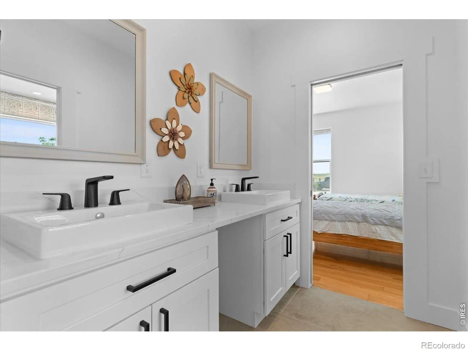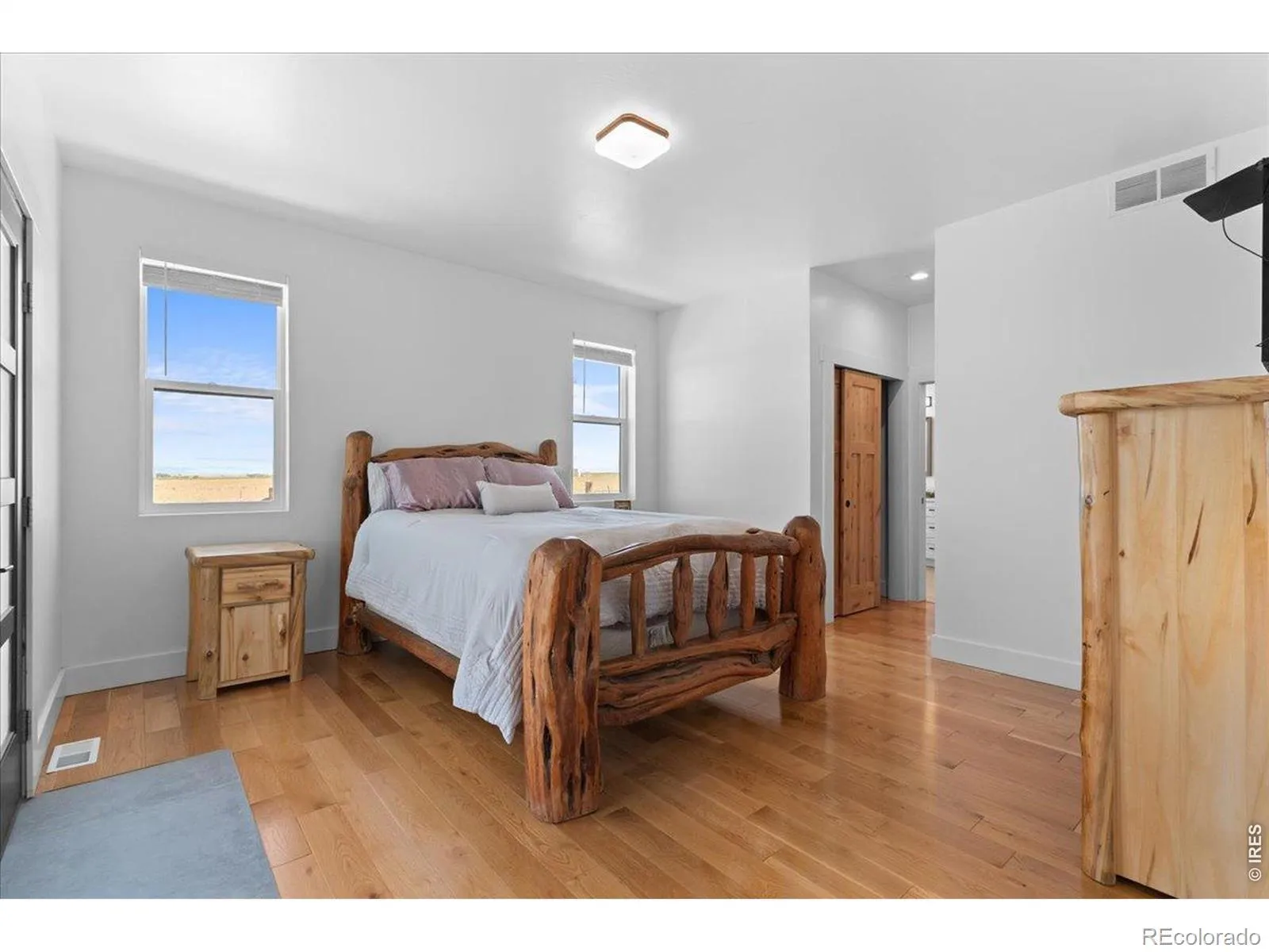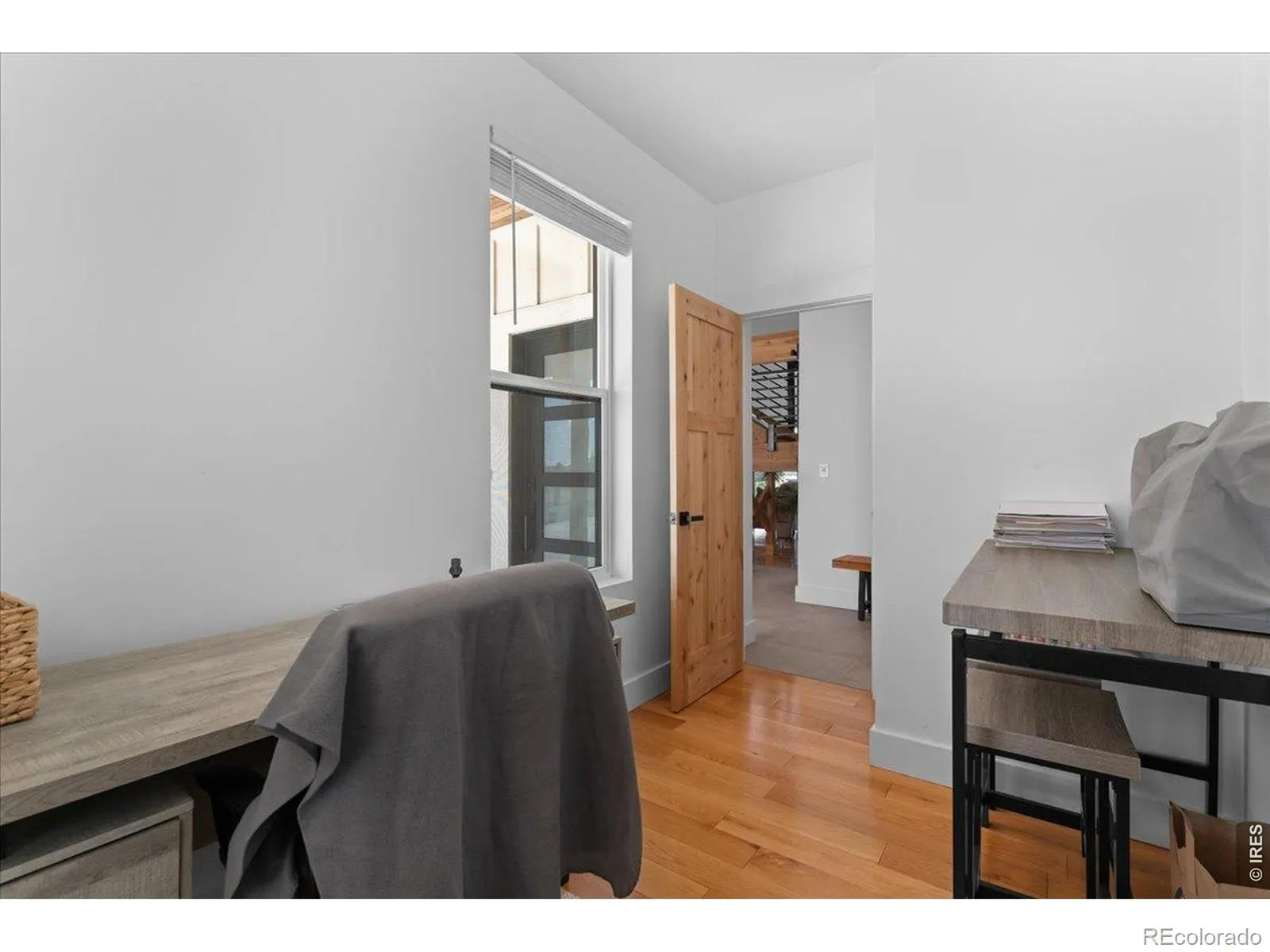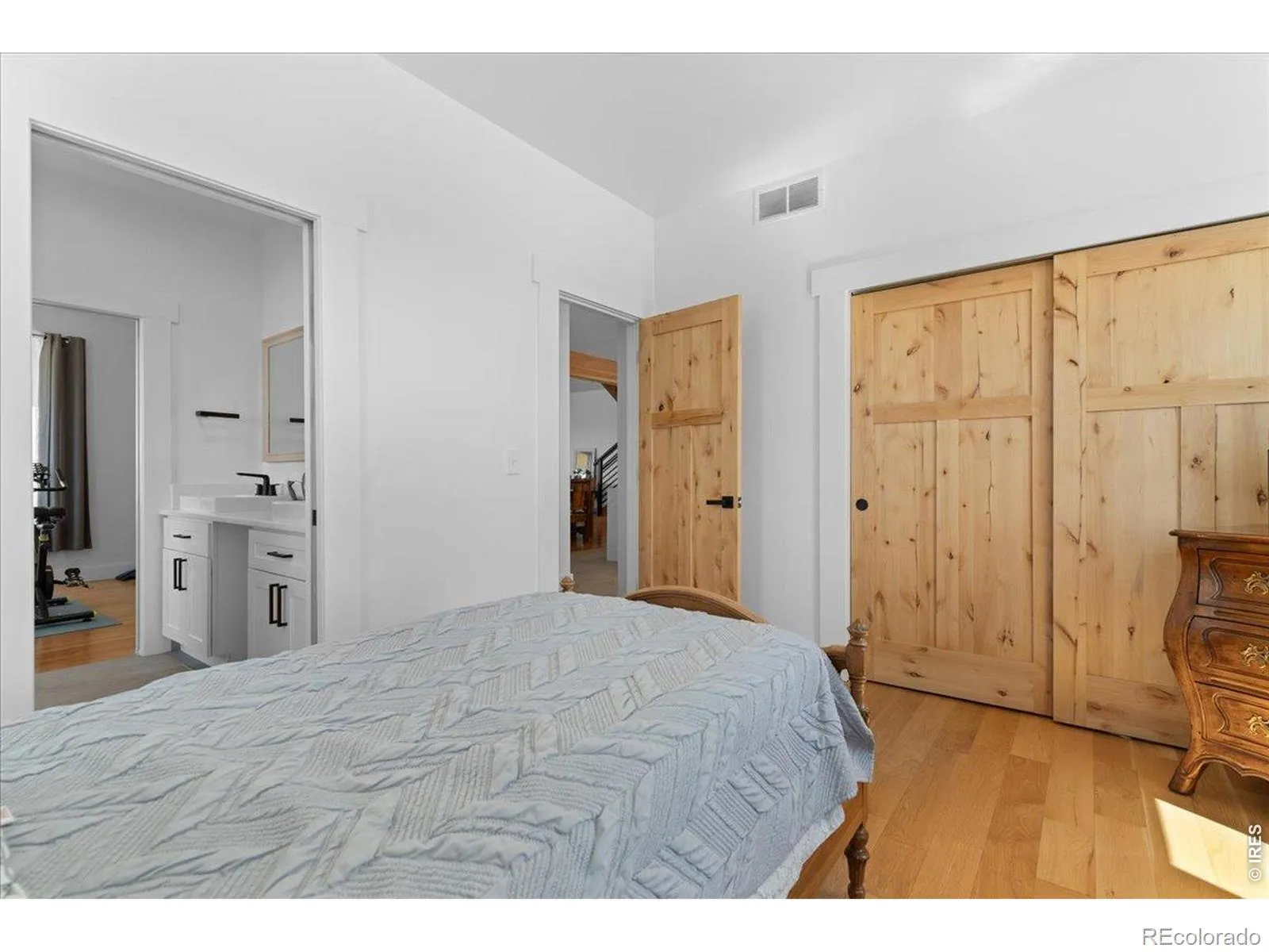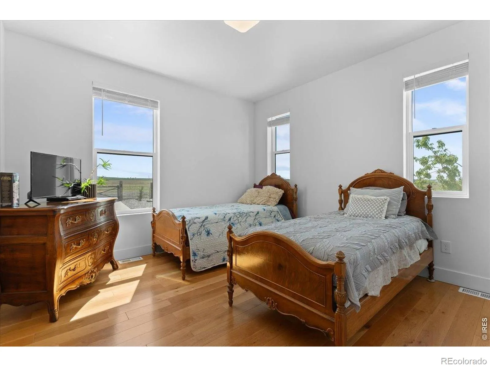 Current Buyer Flaked so now is your chance. No inspection items were noted by the buyers. Tucked away behind a private gate, on 6.15 serene acres zoned Agricultural/Residential, this custom home offers the rare blend of rural privacy and refined living-framed by spectacular Rocky Mountain views. The exterior welcomes you with custom railroad tie and hog wire fencing, two expansive covered front patios with warm tongue-and-groove pine ceilings, and a massive backyard covered patio with sand-coated concrete. A well pump and water hydrant sit conveniently on the north side, supported by a full sprinkler and drip system. Step inside to a spacious foyer with tile flooring, coat closet, and rich 3-panel Alder doors with brushed bronze accents. The home’s hypoallergenic design features solid hardwood floors and tile throughout, illuminated by double-pane energy-efficient windows. The open kitchen, ideal for both daily living and entertaining, boasts quartz countertops, a waterfall-edged center island, dual barn-doored pantries, soft-close drawers, stainless appliances-including a gas range with flat grill-and direct front patio access. The family room’s vaulted ceilings and King pellet stove set the stage for mountain-view relaxation. The primary suite offers backyard access, dual walk-in closets, and a spa-inspired bath with quartz, overhead and wand shower, and dual lifted vanities. Additional main-level highlights include two hardwood-floored bedrooms (one with stunning views), a Jack-and-Jill bath, a corner office, guest half bath, and spacious laundry with washer/dryer included. A grand iron-railed staircase leads to a vaulted loft, 3/4 bath, and private guest bedroom with French doors. Mechanical excellence includes a Navien tankless water heater, Rheem water softener/filtration, Goodman A/C, and a 1,000-gallon owned propane tank. The oversized 1,094-sq-ft garage features a standard double door and a 12′ RV door-ready for all your Colorado adventures.