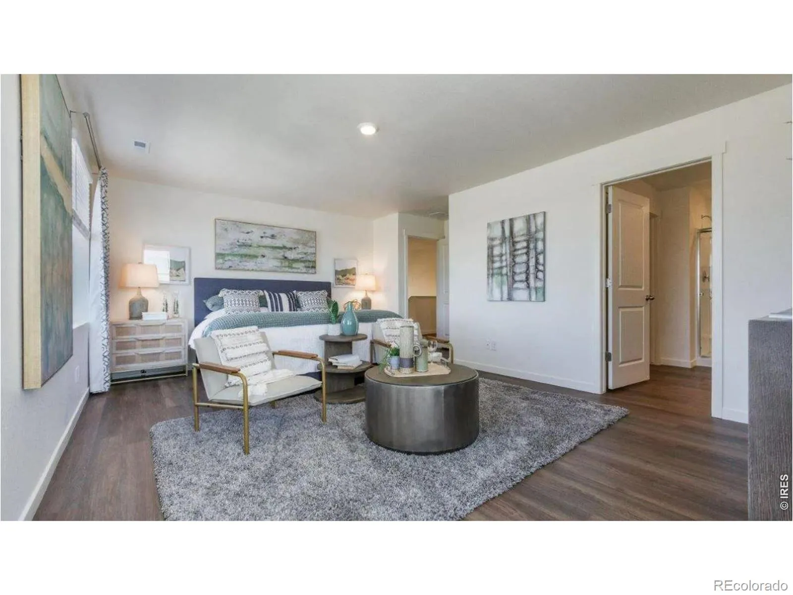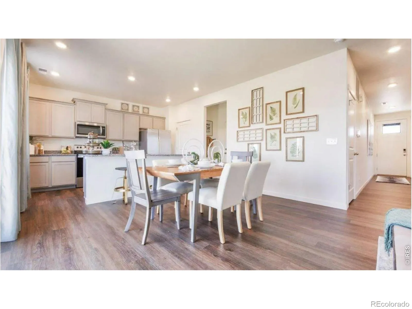 Welcome to the Bellamy floor plan, located in the Fossil Creek Ranch community in Windsor, Colorado. This two-story single-family home offers 4 bedrooms, 2.5 bathrooms, a 2-car garage, backs to open space and offers 2,124 square feet of thoughtfully designed living space. The main level features a flexible study or office space near the entry, leading into an open foyer with a guest bathroom, coat closet, and staircase to the second floor. The open-concept layout connects the kitchen, dining area, and great room for a functional and inviting living experience. The great room showcases 9-foot ceilings and vinyl dual-pane low E windows that bring in natural light, while the dining nook offers access to the backyard patio through a sliding glass door-ideal for entertaining. The kitchen is designed for both style and efficiency, featuring premium cabinetry with crown molding, a spacious walk-in pantry, stainless-steel appliances, and a center island with an integrated sink and dishwasher that doubles as additional seating or serving space. Upstairs, a centrally located laundry room adds convenience, along with three secondary bedrooms, a full bathroom, and a linen closet. The primary suite is located at the front of the home and includes generous space, a private bathroom with dual vanity sinks, a separate toilet area, and a walk-in closet with extra storage. ***Photos are representative and not of actual property***