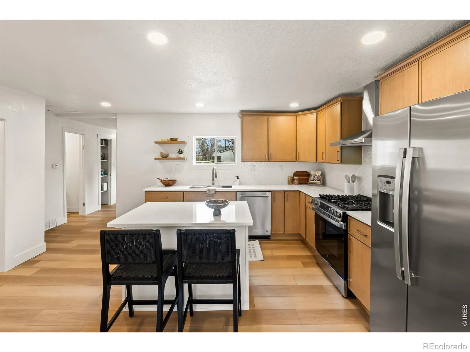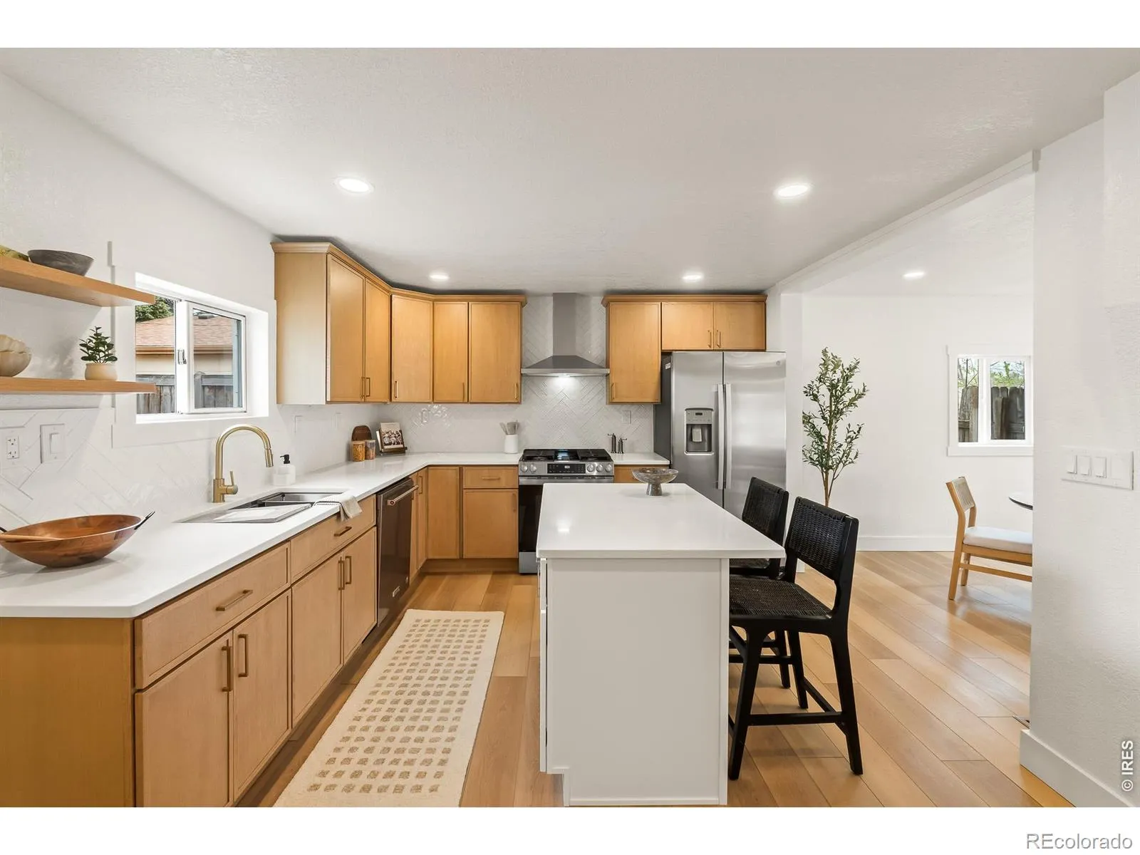 Turn-key Craftsman in the heart of downtown Windsor on a large lot offering potential to add a shop or accessory dwelling unit (ADU). Alley access, abundant parking, and strong short-term rental potential. This fully renovated, all main-floor living home has been updated top to bottom with thoughtful design and quality finishes. Improvements include new board and batten siding, new Class 4 impact-resistant roof, new gutters, updated electrical, new interior and exterior paint, new light fixtures and recessed lighting, new luxury vinyl plank flooring throughout, new trim and updated windows. The beautifully updated kitchen includes Carrera quartz countertops, white oak soft-close cabinetry, SS appliances with gas range, and a large island. The adjoining dining area features a custom bar with beverage refrigerator, while a walk-in pantry and laundry room provide excellent functionality and storage. Both bathrooms have been fully updated with stunning tile work and modern finishes, completing the home’s polished renovation. Outside, the property offers low-maintenance living with a xeriscaped front yard and a fenced backyard with turf, ideal for easy upkeep and outdoor entertainment plus a well! Located just minutes from Windsor Park, Windsor Lake, downtown restaurants, Pecuiliar Brewery, coffee shops, and local shopping, this move-in ready home combines modern updates, investment potential, and an unbeatable Windsor location.
