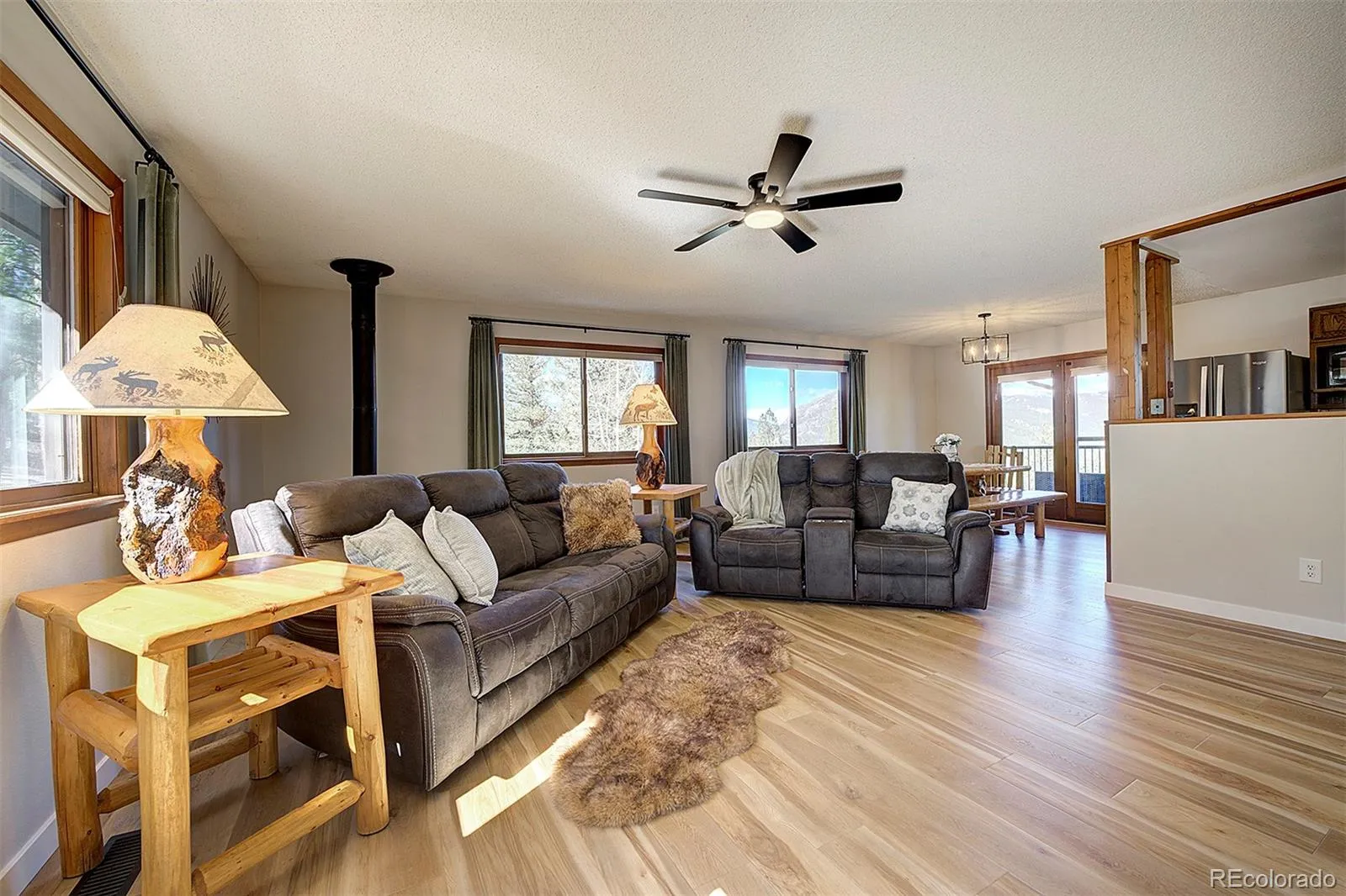 Your mountain home awaits you in beautiful Bailey, Colorado – this lovely 3 BR 2 BA home sits on a level 1.3 acre lot with beautiful views of Mount Logan, gorgeous sunsets and sunrises and the tranquility only the mountains can bring. Updates to the home include a new roof top covered trex deck with iron railings off the kitchen and dining room – perfect for dining or entertaining while overlooking the heavily treed lot and mountain vistas. Newly painted interior and exterior along with new smart garage door brings a modern look to this mountain home. All carpet has been replaced with stunning vinyl flooring as well as a newly finished lower level master suite with its own private deck to enjoy the serenity of the views and peacefulness of your surroundings. Currently the Sellers are using what could be a fourth bedroom as an office although the septic is for a 3 BR 6 person septic. Get cozy with the newly installed wood burning log stove nestled in the living room while you enjoy famous Colorado winters. There is an attached shed as well as another shed/chicken coop with electricity for extra storage or hobby farming. Internet is Highline Fiber – Options from 100 mpbs to 1G Fiber Internet available.