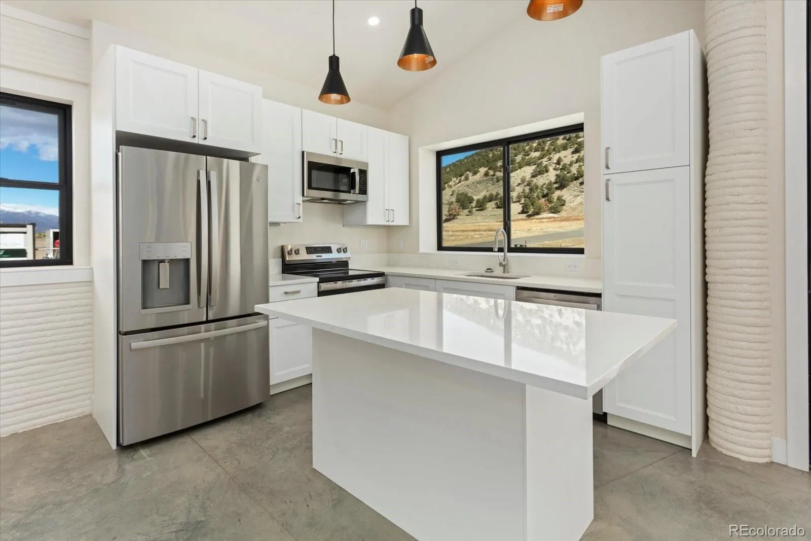 Both sides of newly constructed duplex. This is the first 3D Printed home in Salida, CO! Located in one of the original platted subdivisions on the east side of town, Cleora is near walking trails, public Arkansas River access, and lined with views of the surrounding mountain ranges. There is one common wall between the two units. One side is three bedrooms and three full baths. The primary has an attached, private bathroom. The living area and kitchen are open and spacious with windows letting in great light. All of the appliances are full electric including the heat pumps in each room. There is a wood burning stove in the living room as a focal point and back up heat source. The other side is a single level, two bedrooms with two full baths. The living area and kitchen are also very spacious and functional. 3D Printed homes are known for increased efficiency, modern design, low VOC, and extended life. The interiors are calming and stylish while the exteriors have better fire rating and wind resistance than your typical stick-built home. Both units have a detached, one car garage with separate driveways. There are individual septic tanks for each home, and all utilities are metered separately. This would be a great investment to live in one side and rent the other. If you are ready for a showing to see what the printed home is all about, give us a call!