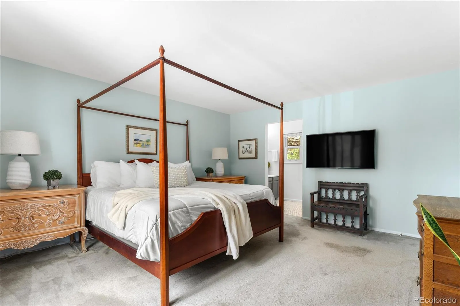 Welcome to this wonderful location in the Cherry Park Neighborhood. Located one block from the park and close to the pool, tennis courts, and elementary school. The nearby greenbelt is perfectly situated to connect you to your natural surroundings. There are so many wonderful amenities that help make this home the perfect place to live. Double entry doors welcome you in to the main level with a spacious living room, dining room, kitchen and breakfast nook. The kitchen is very light and inviting with white cabinets, Corian countertops, under cabinet lighting and a spacious breakfast nook. There is also a large garden window over the sink which invites you to look out to the expansive and private back yard. The living room and dining room windows are complimented with white wood shutters for a luxury appearance and privacy. The open family room on the lower level has a brick gas log fireplace, and bar area as well as double French doors leading to a very inviting outdoor patio. The Luxurious Primary Suite boasts a large walk-in closet, and a newly remodeled ensuite. The lower level bedroom is currently being used as a home office. An evaporative cooling unit offers efficient cooling for warmer weather. An alarm system and security doors add to the homes safety and security. All schools are part of the award winning Cherry Creek School District. Don’t miss out on this opportunity to get into the Cherry Park Neighborhood.