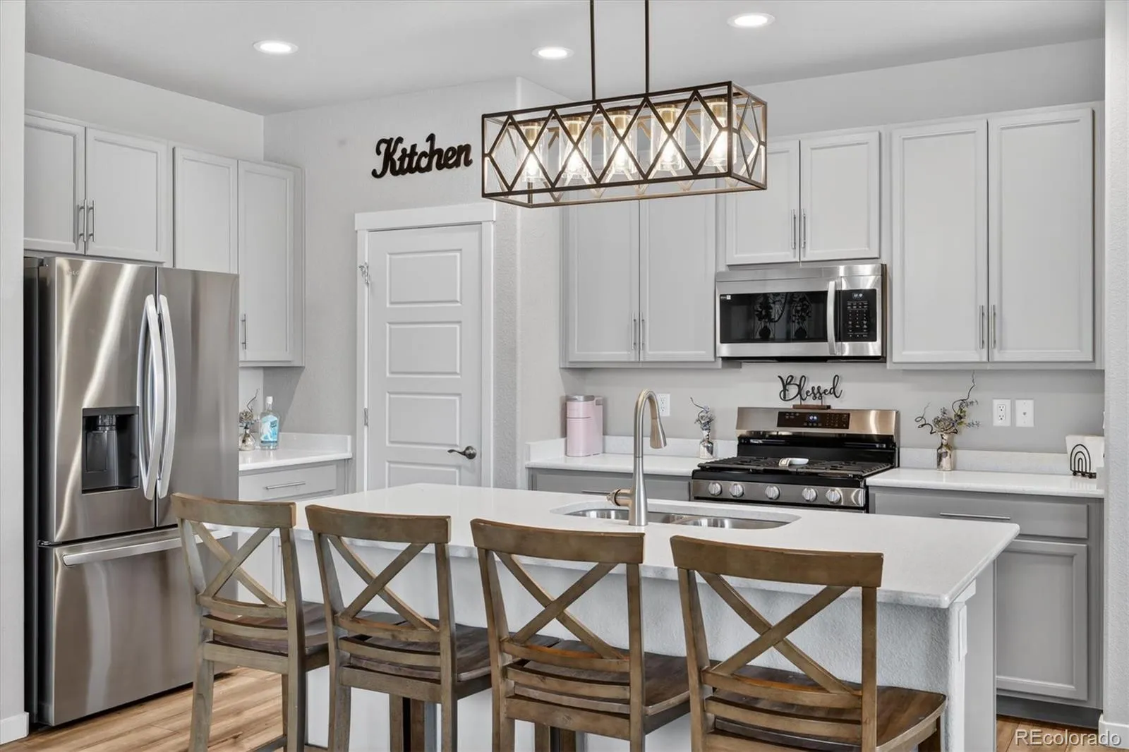 Step inside and immediately feel at home in the bright, inviting interior filled with natural light and warm colors. The open and functional layout features a cozy family room, a separate dining area perfect for gatherings, and an updated kitchen that will impress any home chef. Enjoy quartz countertops, stainless steel appliances, a gas range, and updated lighting that add both style and functionality.