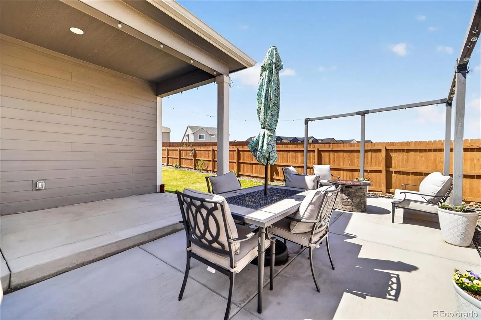 Step outside to a beautifully landscaped backyard designed for relaxing and entertaining. Enjoy Colorado evenings on the covered patio or extended concrete patio with pergola accents and charming string lights. A convenient sidewalk connects the garage to a Tuff Shed, making backyard access easy and functional.