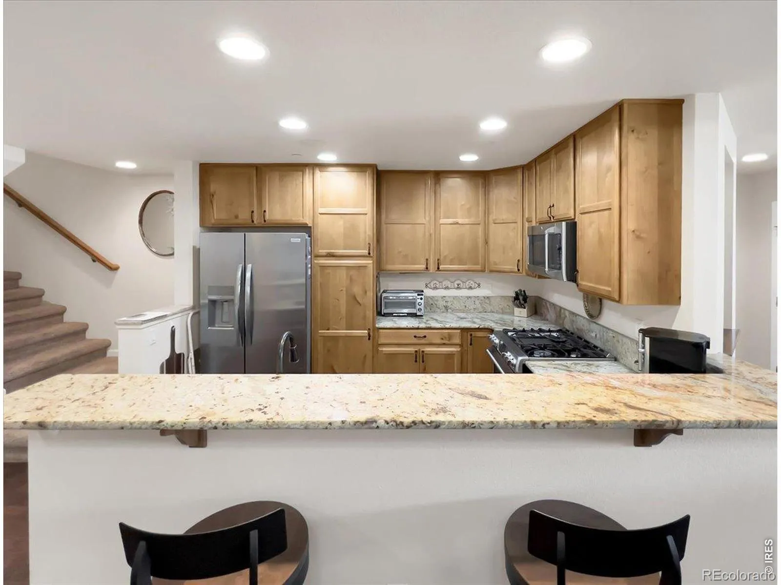 Centrally located with easy access to shopping, recreation , and I-25; maintenance free living in this marvelous townhome with designer finishes, including GE cafe series SS appliances, granite counters throughout, alder cabinets, 2-car tandem garage with epoxied floor. Spend quality time on the 2nd floor balcony or in the beautifully finished basement suite with spacious family room, 3/4 bath and surround sound wiring.