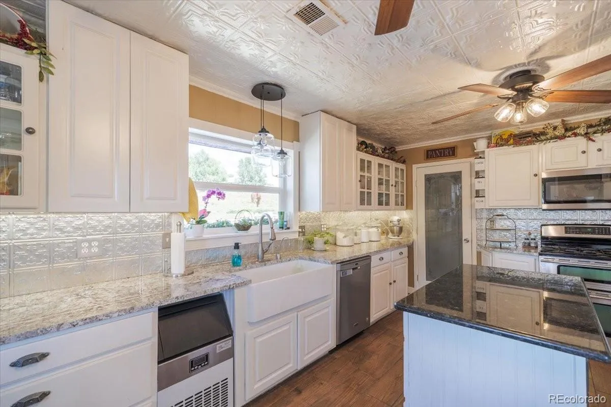 WOW! Historical, Vintage, Country Charm….. and the list goes on. There are so many words that can describe this home. Here is your perfect and rare opportunity to own some Kiowa Colorado history. The seller has put their heart and soul in to this home and it’s unique decor. This home boasts tons of country charm that I just fell in love with. This home offers 3 full baths, 3 bedrooms, a private master suite and a spacious office. The kitchen has been newly updated with granite countertops and a large pantry. The upstairs bathroom has been completely renovated with a walk-in shower. Beautiful hardwood floors throughout. This home has been well maintained to include newer windows, fresh paint and hot water on demand heating system. This home has been designed to entertain family and friends due to the large backyard with a pool, the front yard water feature, a side yard for all the grilling, the front covered porch, large dining room and a fun kitchen. Also enjoy the family pet dog run, and garden area… Oh and bring your chickens. Home remodel took place in 1973. This home is a must see! Set your private showing today and see if it’s a fit for you and the whole family.