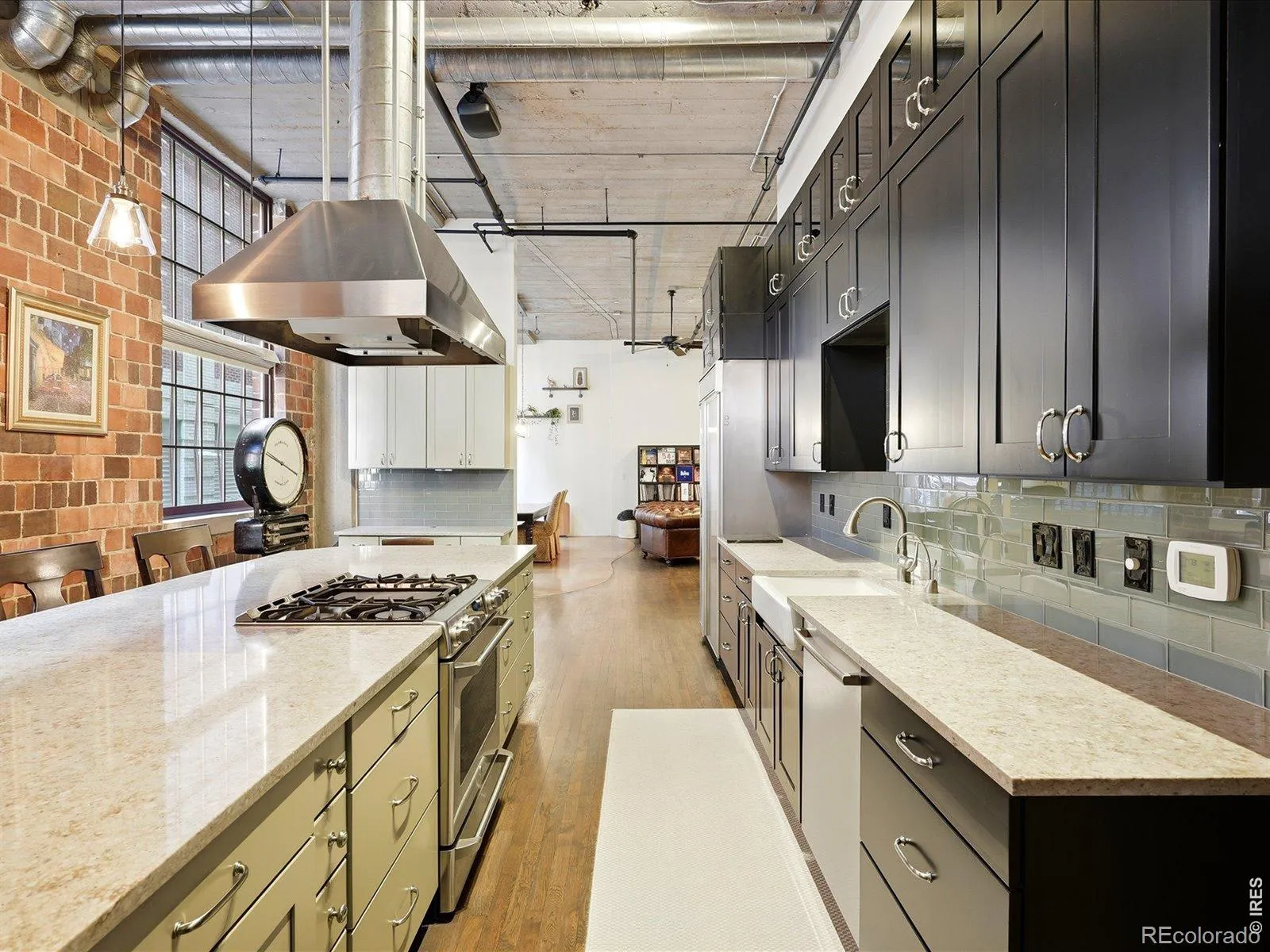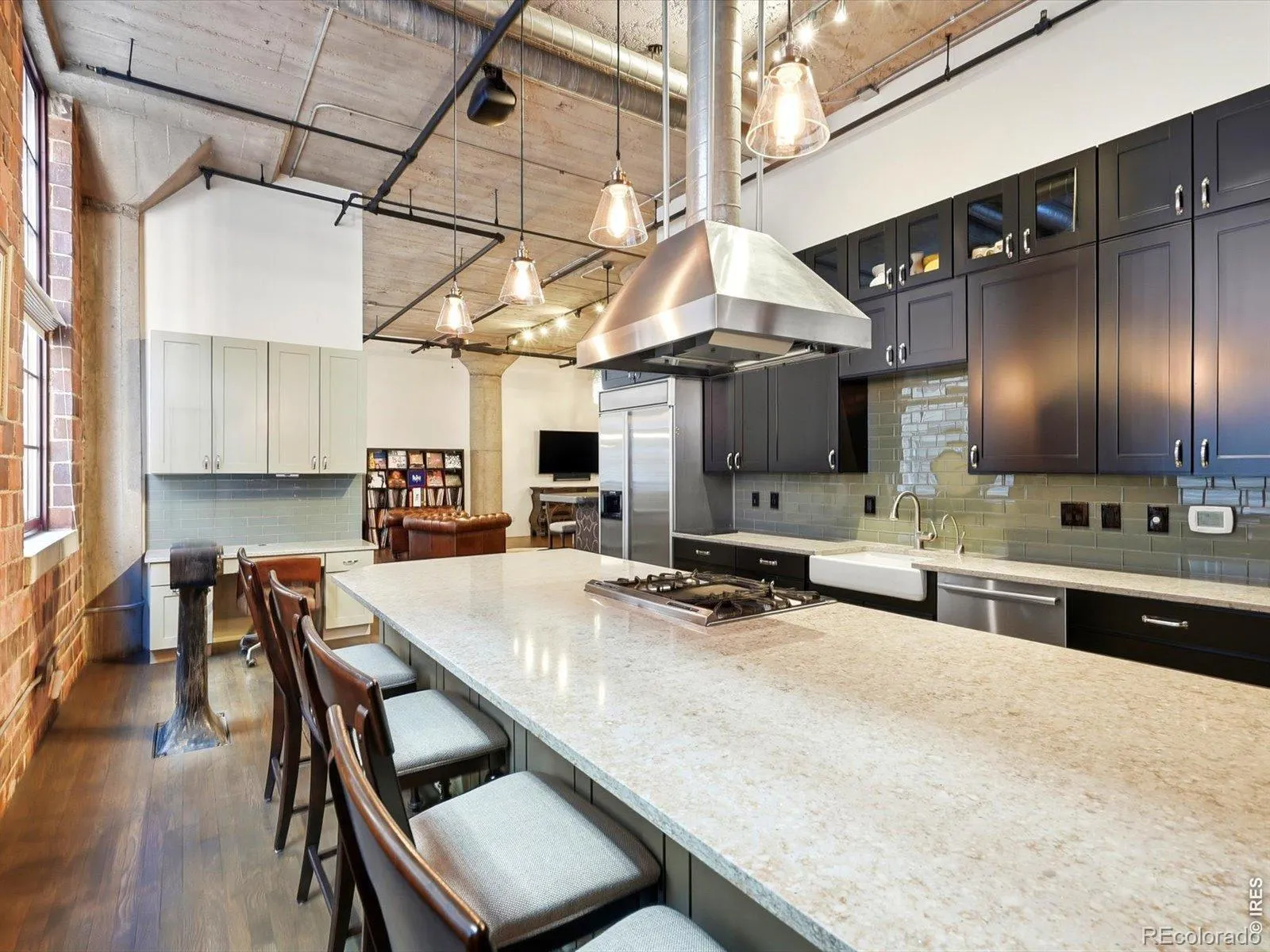 Life downtown doesn’t get much better than this. With a location just down the street from Coors Field, multiple dining options, and coffee shops, you can live the urban lifestyle and yet still return to a spacious home with significant living space, an open floorplan, and luxury finishes. This home has rare 13.5 foot ceilings and large square footage for the Rocky Mountain Warehouse lofts. This building originally served as a merchandise mart for businesses like Pillsbury Flour and Morton Salt, and the original dry goods scale is in the kitchen of this unit, perfectly preserved today! Immediately upon entering the unit your eyes are drawn to the massive windows, natural light, and high ceilings. Open concept living, dining, and kitchen are great for livability, and the bar seating and serving area in the living room adds to the entertainment space. The kitchen is equipped with significant cabinetry, countertop space, and high end appliances like a built in refrigerator, gas range, Miele coffee maker and more. The primary bedroom wing includes a sizable bedroom, bathroom, walk in closet and laundry. The second bedroom adjoins a hall bathroom and features a built in Murphy bed, creating versatility for guests or an office space. A rooftop patio boasts views of the skyline, Union Station, and the foothills. A rare 2 car underground parking comes with the unit, with added secured storage space, and equipped with electrical for EV charging options if desired. Don’t miss this highly desirable condo in LoDo! Seller is a licensed real estate broker in the State of Colorado.