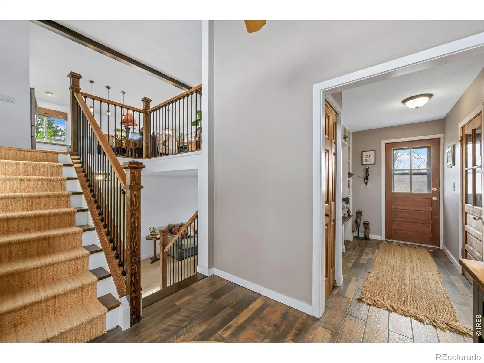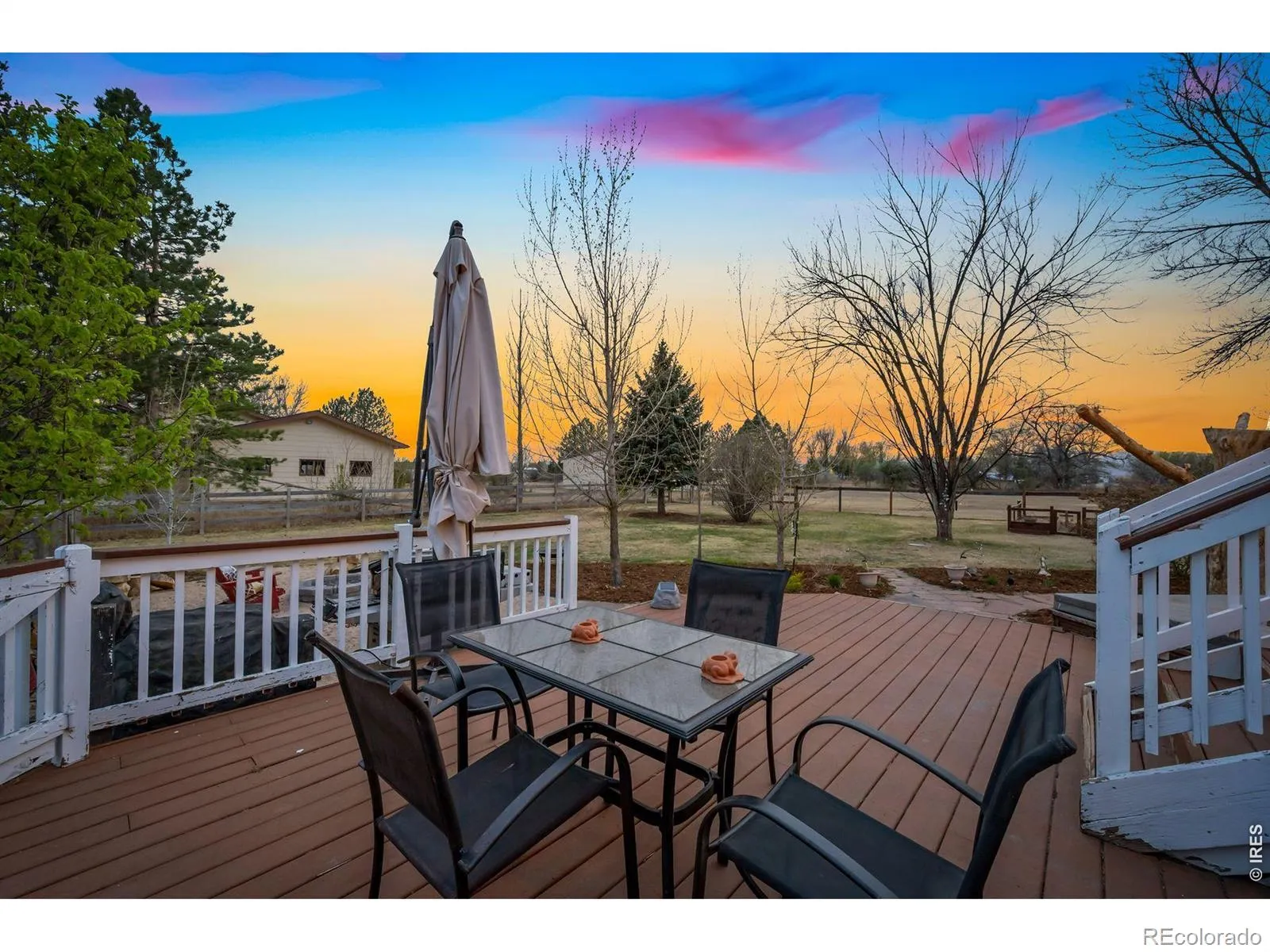Welcome to this beautifully updated bi-level home on 1.62 acres, offering space, flexibility, and modern upgrades-all with no metro district. Ideally located just 6 miles from TPC Colorado, 4 miles to downtown Berthoud, 7 miles to downtown Longmont, and 10 miles to downtown Loveland, this home provides the perfect balance of privacy and convenience. Inside, you’ll find a freshly painted interior, including updated kitchen cabinets and island, complemented by a new butcher block kitchen island that adds warmth and functionality. The home features an updated primary bathroom and a spacious primary suite with a full walk-in closet that leads directly to a private walk-out deck-perfect for enjoying quiet mornings or Colorado sunsets. The versatile bi-level layout offers multiple living areas, including a spacious lower-level living room/recreation space that includes a wood burning fireplace with abundant natural light-ideal for entertaining, working from home, or relaxing. Additional updates include a new entry door, enhancing both curb appeal and efficiency. A standout feature of the property is the 784 square foot bunk house, complete with its own full bathroom, dedicated living space, closet, and sliding doors leading outside-ideal for guests, multi-generational living, or potential rental use. Step outside to enjoy your expansive acreage, complete with a new exterior putting green, perfect for golf enthusiasts or outdoor entertaining. With plenty of room for gardening, the exterior space features raised garden beds with water for irrigation supplied by Ish Reservoir, space for recreation, or future customization, this property delivers the Colorado lifestyle buyers are searching for. With its acreage, updates, no metro district, and prime location near golf, dining, and amenities, this is a rare opportunity in Northern Colorado.The HOA does allow specific amounts of animals including horses, chickens and mules.