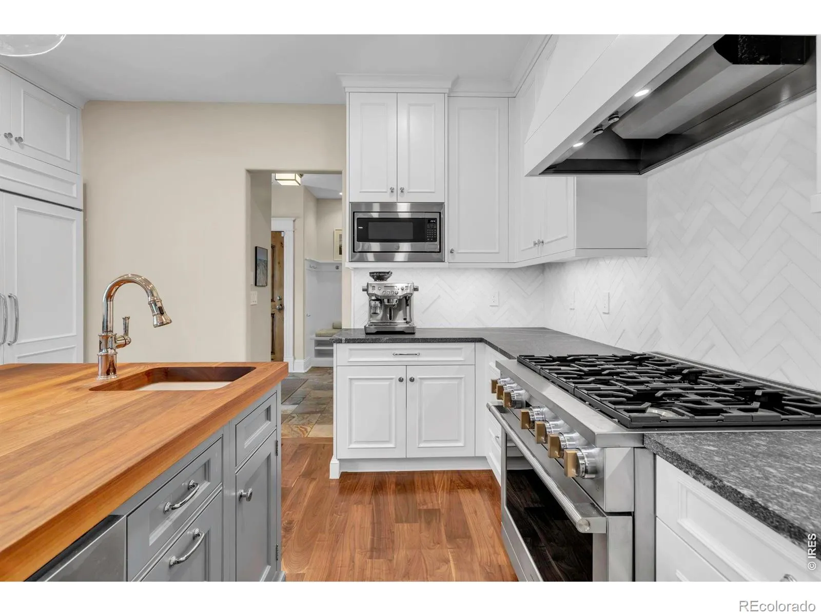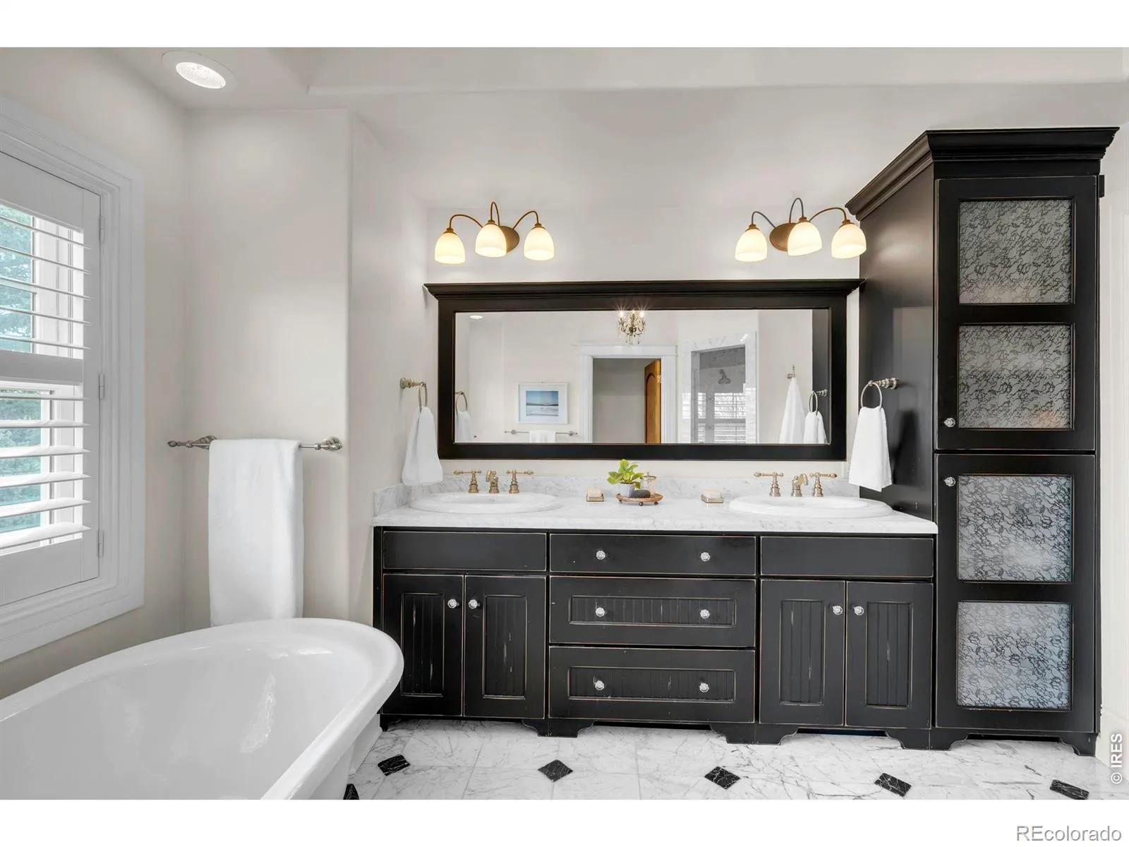 Spectacular custom home in a premier location, sweeping views of Mt. Sanitas and the Flatirons. Set on a rare 13,000 sq. ft. corner lot, this exceptional residence blends timeless elegance, thoughtful updates, and indoor-outdoor living in one of the city’s most coveted neighborhoods. Spanning nearly 5,504 sq ft, the home has five bedrooms and six bathrooms. A covered front porch with river rock detailing welcomes you into light-filled interiors with walnut hardwood floors, rich millwork, plantation shutters, and wood-beamed ceilings. The remodeled kitchen features custom cabinetry, granite countertops, a butcher block island, two dishwashers, built in gas oven in island, two disposals and a beverage fridge. An eat-in dining area overlooks the backyard and connects to outdoor dining-perfect for entertaining. The expansive main living area showcases coffered ceilings, built-in shelving and seating, and a marble fireplace. The main level includes an executive paneled study, sunroom, two powder rooms, a walk-in pantry, and mudroom. Upstairs, four spacious bedrooms connect to a central seating nook. The primary suite features a private balcony with Flatiron views, a walk-in closet, and a spa-like bath with clawfoot tub, marble shower, double vanity, and water closet. Additional bedrooms are generously sized and filled with natural light. The lower level expands the home’s versatility with a reimagined guest suite, wet bar, recreation area, home gym, and infrared sauna. A custom home theater, with built-in speakers and acoustic wall treatments, delivers an immersive viewing experience. Outdoor living is equally compelling, with landscaped grounds, stone patios and a fire-pit, ideal for gatherings year-round. The home also has brand new roof and an oversized garage with newly finished epoxy floor. Ideally situated on a quiet street, just two blocks from Mt. Sanitas trail access and close to schools, this home offers a rare combination of natural beauty and convenience.