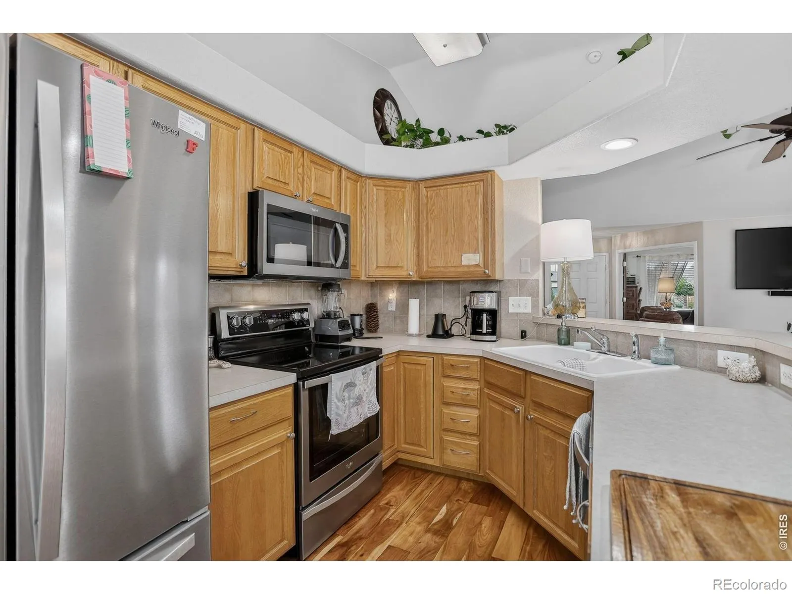 This beautifully maintained home in Homestead Heights is move-in ready and designed to impress. Rich acacia wood floors flow throughout the main living space, creating a warm and inviting feel from the moment you enter. Just off the entry, a private office with double doors is ideal for today’s work-from-home lifestyle. The kitchen features newer stainless steel appliances-all included-blending style and everyday functionality. The spacious primary suite offers a relaxing retreat with a walk-in closet. The finished basement expands your living space with a dedicated gym area and a large theater room, perfect for movie nights. A custom barn door opens to two additional bedrooms, a full bathroom, and a versatile storage room that can easily serve as a second office or flex space. Step outside to enjoy mature landscaping that creates a peaceful setting to unwind. The backyard also includes a storage shed, fenced garden bed, and RV/boat storage behind the fence. Enjoy neighborhood amenities including a pool, tennis courts, and parks-all conveniently located near schools, shopping, medical facilities, and great dining.