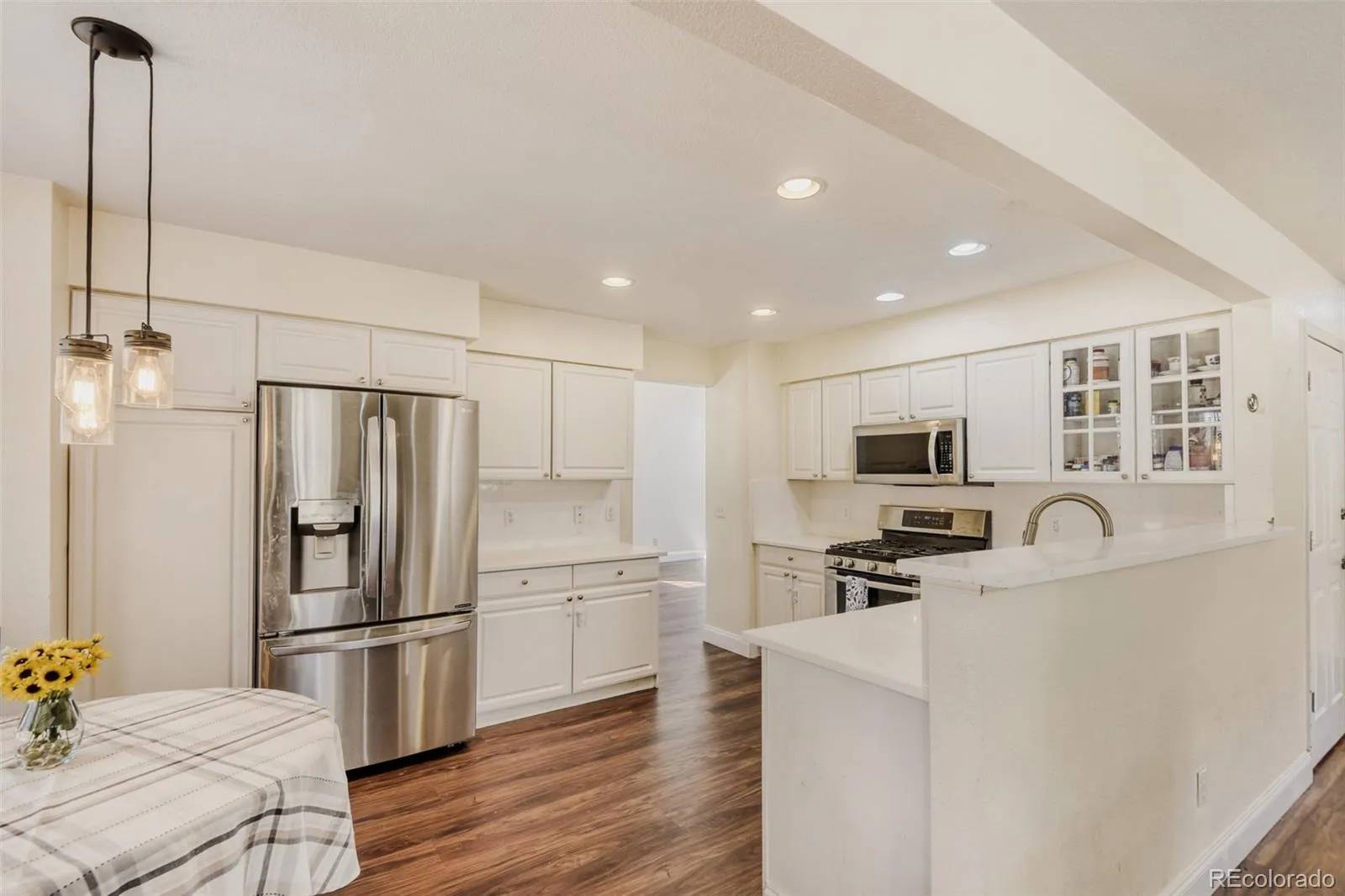 JUST LISTED in Lone Tree’s beautiful Carriage Club neighborhood! OPEN HOUSE Sunday 12-2pm! Tucked on a quiet cul-de-sac, this inviting home offers 3 bedrooms, 3 bathrooms, and over 1,900 finished above-grade square feet. A recent appraisal supports a value of $770,000. As you enter, you’re immediately drawn to the light and bright living and dining rooms with vaulted ceilings, expansive luxury vinyl plank flooring throughout nearly the entire main floor, and a striking staircase featuring a richly finished handrail with wrought iron balusters. The open-concept family room features a cozy fireplace and flows seamlessly into the kitchen. The kitchen is well-appointed with white painted cabinetry, quartz countertops, a gas range, microwave, under-mount sink, and a casual dining area overlooking the backyard. Upstairs, you’ll find brand-new carpet throughout, along with all three bedrooms, including a spacious primary suite with vaulted ceilings, stylish barn doors, abundant natural light, a generous walk-in closet, and a five-piece bath featuring quartz counters, under-mount sinks, tile flooring, a soaking tub, and a shower with a designer tile surround and frameless enclosure. The secondary upstairs bathroom features a tastefully updated vanity, designer mirror, tiled wall accents, and a tub with a designer tile surround. All bathrooms throughout the home reflect thoughtful updates completed over the years, blending functionality with timeless finishes. Step outside to a large paver patio with a pergola overlooking a private, generously sized backyard with mature trees and plenty of room to relax or play. Ideally located just two blocks from Centennial Ridge Park and playground, and minutes from Bluffs Regional Park with miles of scenic trails and mountain views. Convenient access to the Charles Schwab campus, Sky Ridge Medical Center, Park Meadows Mall, and major routes including I-25 and C-470. For a virtual tour, visit www.10047Andrush.com.