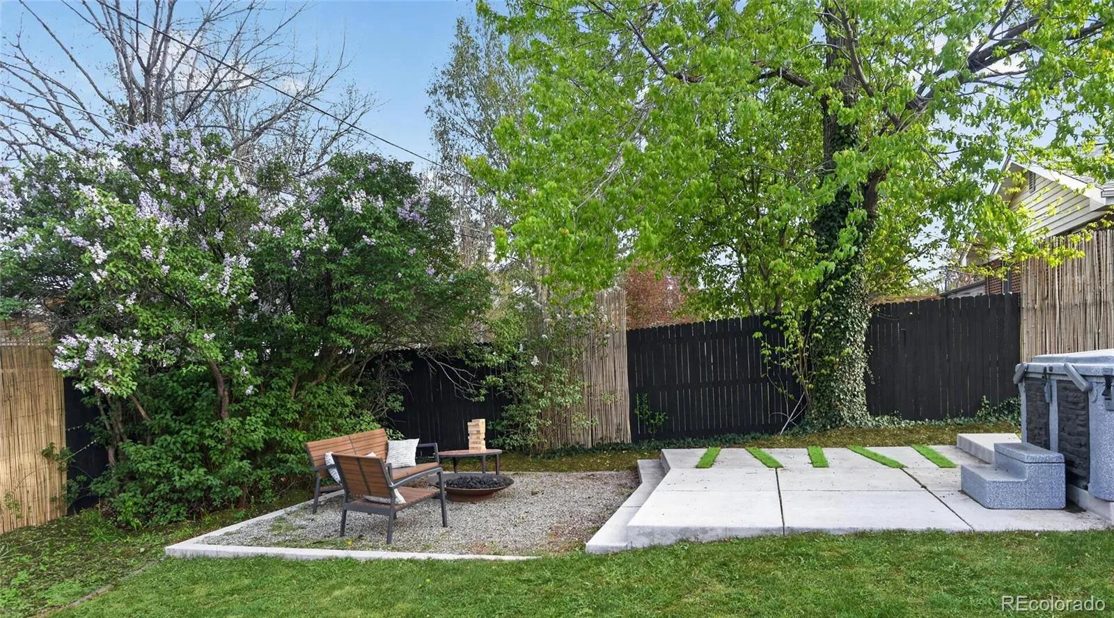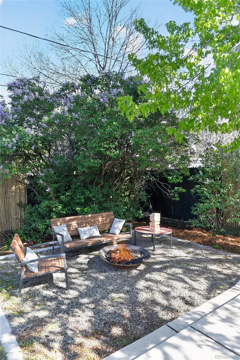 The backyard is a true highlight, offering a covered patio, grassy area, garden beds, hot tub, and a fully fenced yard with established lilacs, creating a private setting for both relaxing and entertaining. The finished basement expands the home’s livability with a large bedroom featuring a walk-in closet, a spacious den or media room, a dedicated laundry room with utility sink, and an oversized storage area for all your Colorado gear. The new carpet adds a fresh feel to the space. Throughout the home you’ll find upgraded lighting and modern closet doors.