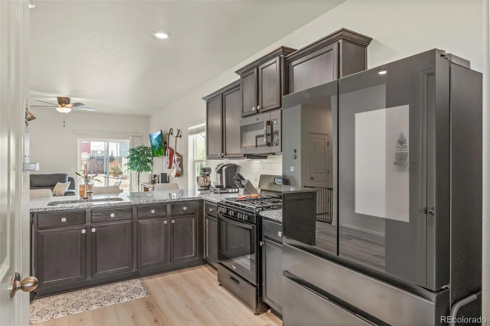 Pull into the driveway at 319 S Walnut and you’ll notice the sellers didn’t cut corners — they loved this home and it shows. Brand new luxury vinyl plank flooring flows through an open-concept layout where the kitchen spills into the living room and opens out to a backyard that’s been curated, not just landscaped. The kitchen features granite counters, a crisp subway tile backsplash, and a full appliance suite including a brand new Samsung smart fridge, microwave, and gas range — all staying with the home. The primary suite is a retreat in itself, with a 5-piece ensuite bath featuring a deep soaker tub, separate shower, and a walk-in closet that actually has room to breathe. Two additional bedrooms, a full bath, a dedicated dining area, and a laundry room round out the main living space. Now step outside — because this backyard is the one. A sprawling stamped concrete patio with string lights, lush grass on full sprinklers, raised garden beds, a storage shed, a gas fire pit, and mature rose bushes and lilacs that will stop you in your tracks come spring. Here’s the kicker: the sellers are leaving nearly everything behind. The smoker/grill combo, the stand-up smoker, both fire pits (front porch AND back patio), the kegerator in the dining room, all mounted TVs, Ring doorbell + security, the EV charger in the garage, and a full lineup of battery-system yard tools — mower, snow blower, leaf blower. Radon mitigation already installed. All you need to bring is your toothbrush.