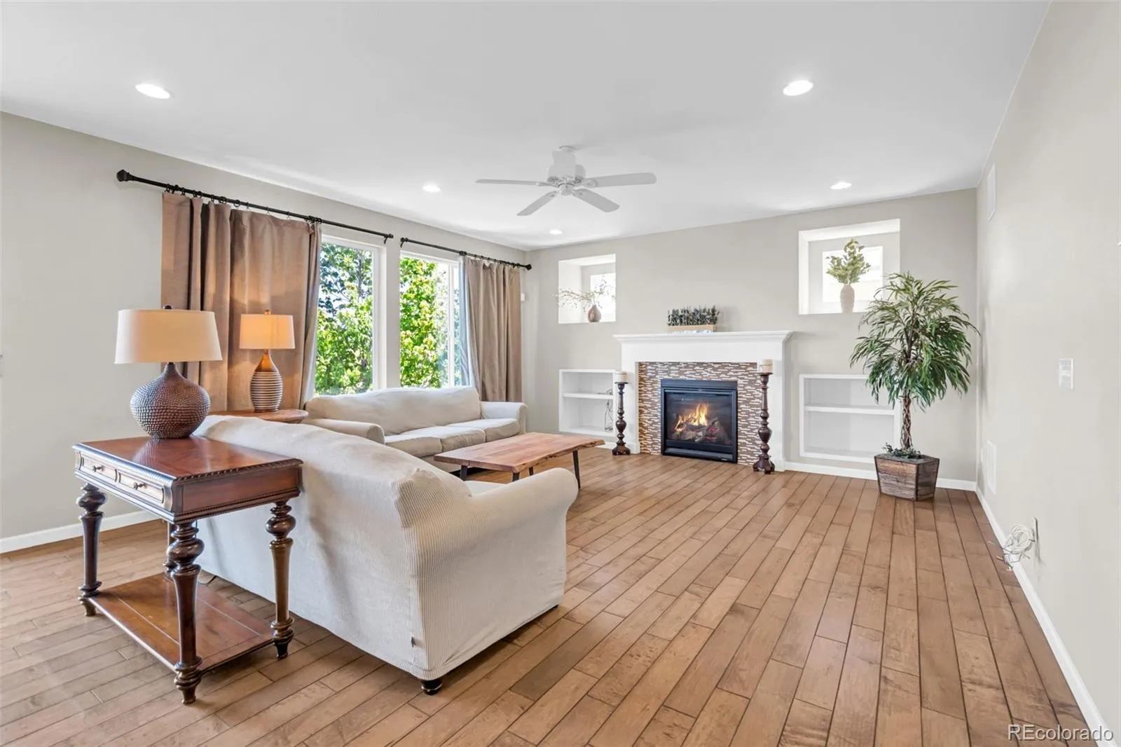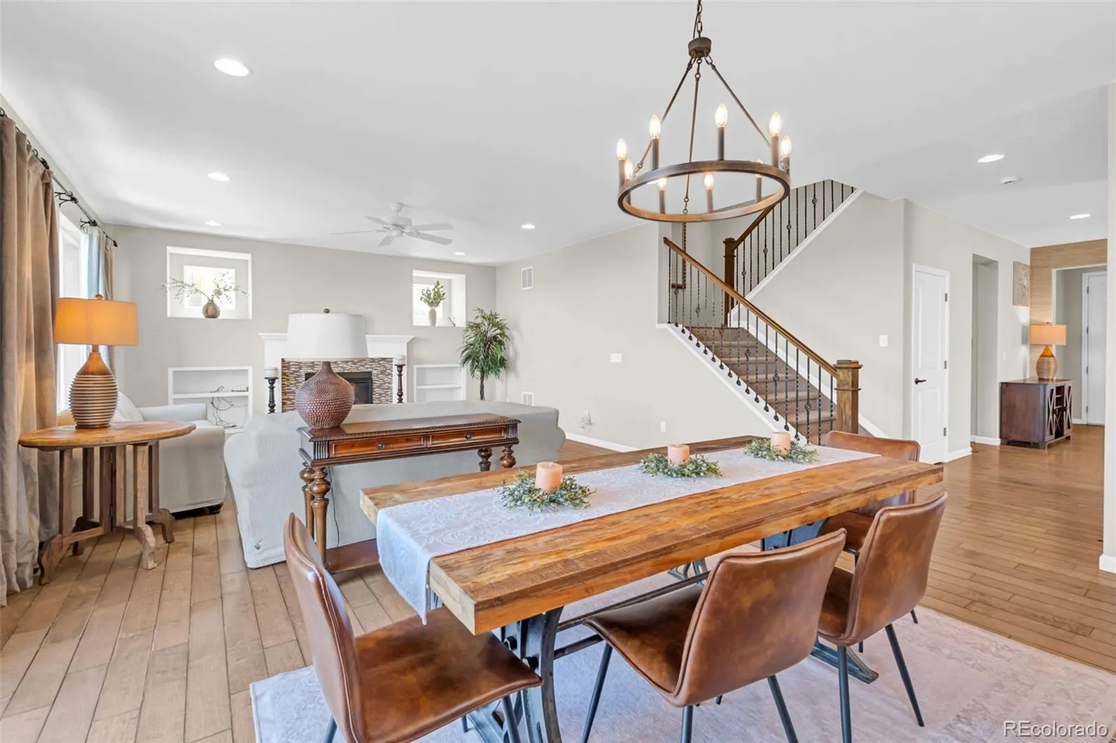 This former model home perfectly blends elevated design, thoughtful layout, and an unbeatable setting. Situated on a premium lot with professionally designed landscaping & a huge backyard that backs to open space. Walk inside and fall in love with the open floor plan and thoughtful upgrades. A dedicated home office offers the perfect space for remote work or flex space for a playroom or school room! The chef’s kitchen features an expansive layout with higher-end finishes, a large island, & seamlessly flows into the living & dining areas creating an ideal entertaining space. The butler’s pantry provides additional counter space and a prep sink along with a beverage fridge for extra storage when hosting holidays and parties! A walk-in pantry provides additional storage. The spacious living room is filled with natural light & has a cozy gas fireplace with built in shelving. The primary suite is a true retreat; complete with a luxurious en-suite 5-piece bathroom, glass shower, soaking tub, and a massive walk-in closet. 3 additional bedrooms make this home truly desireable – with all 4 bedrooms on one level! The unfinished basement offers endless potential to expand your living space, whether you envision a home theater, gym, or additional entertaining area. A spacious tandem 3-car garage provides ample room for vehicles, storage, and outdoor gear. The garage also has an EV charger! Located within walking distance to the neighborhood elementary school and park, this home is part of the vibrant Terrain community, known for its exceptional amenities including two pools, a dog park, and miles of scenic trails. Enjoy close proximity to downtown Castle Rock, with its shops, dining, and entertainment, along with easy access to I-25 for commuting.