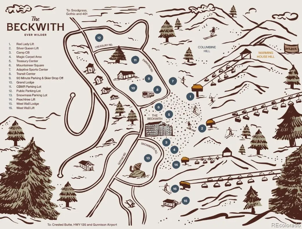 Beckwith Residence 339 offers a rare blend of intimacy and grandeur within The Beckwith’s exclusive ski-in, ski-out collection of just 49 to-be-built residences. This Irwin floor plan spans 926 square feet and features one bedroom, one bathroom, a powder room, and two private balconies. This residence is located just steps from the elevator for easy access. Positioned to capture afternoon light, this residence features beautiful balconies overlooking the resort’s pool, hot tub, and courtyard, with southwest-facing windows offering dynamic views of the surrounding mountain peaks. Inside, earthy neutrals, warm wood tones, and layered natural textures create a sense of ease and sophistication. A sleek electric fireplace anchors the living space, complemented by wide-plank wood flooring and expansive windows that fill the home with natural light. The gourmet kitchen features stone countertops, high-end appliances, a generous pantry, and a custom millwork entry bench with cubbies— blending beauty and functionality for everyday mountain life. The primary suite is a peaceful retreat with a private balcony, custom wardrobe, and a spa-inspired en-suite bath with radiant finishes. A well-appointed powder room, in-unit laundry with stacked washer and dryer, and a secure owner’s storage locker add everyday ease and thoughtful detail. With its open-air balconies, inspired interiors, and ideal poolside location, Residence 339 is your elevated home base in Crested Butte— designed for all-season adventure and soulful alpine living. The Beckwith is the only ski-in, ski-out resort in the heart of Crested Butte’s base area, with world-class amenities including a four-star, community -inspired hotel, seamless ski valet, luxurious spa, adventure concierge, and private mountain & social community, Club Beck. A multi-phased reimaging of Elevation Hotel & Spa will transform almost every space at the resort, with residences anticipated for completion in the Winter 26-27 ski season.