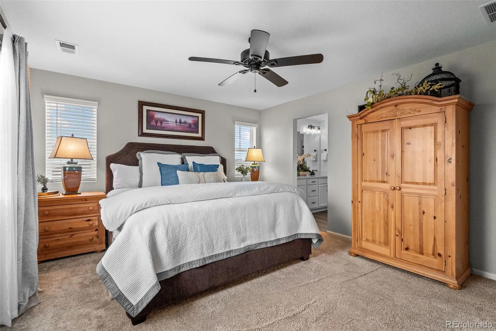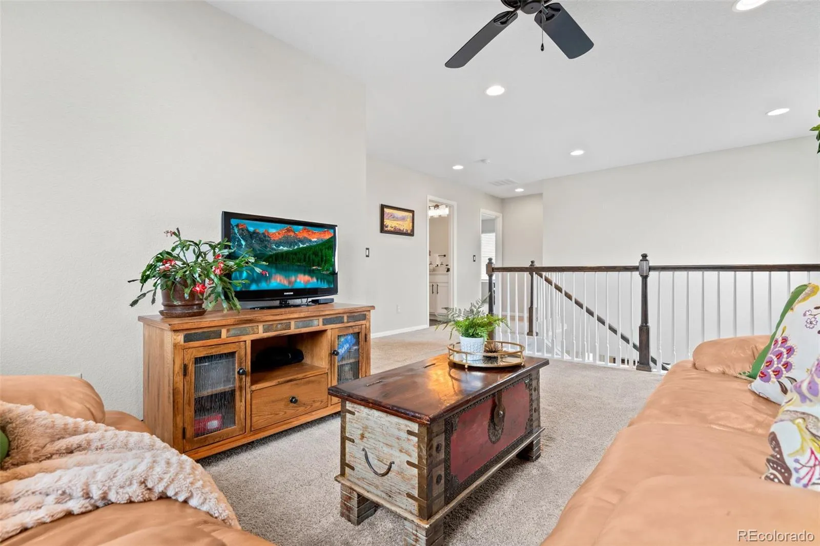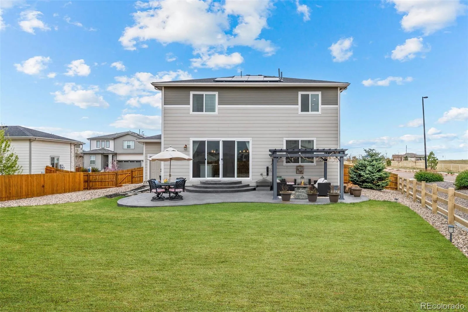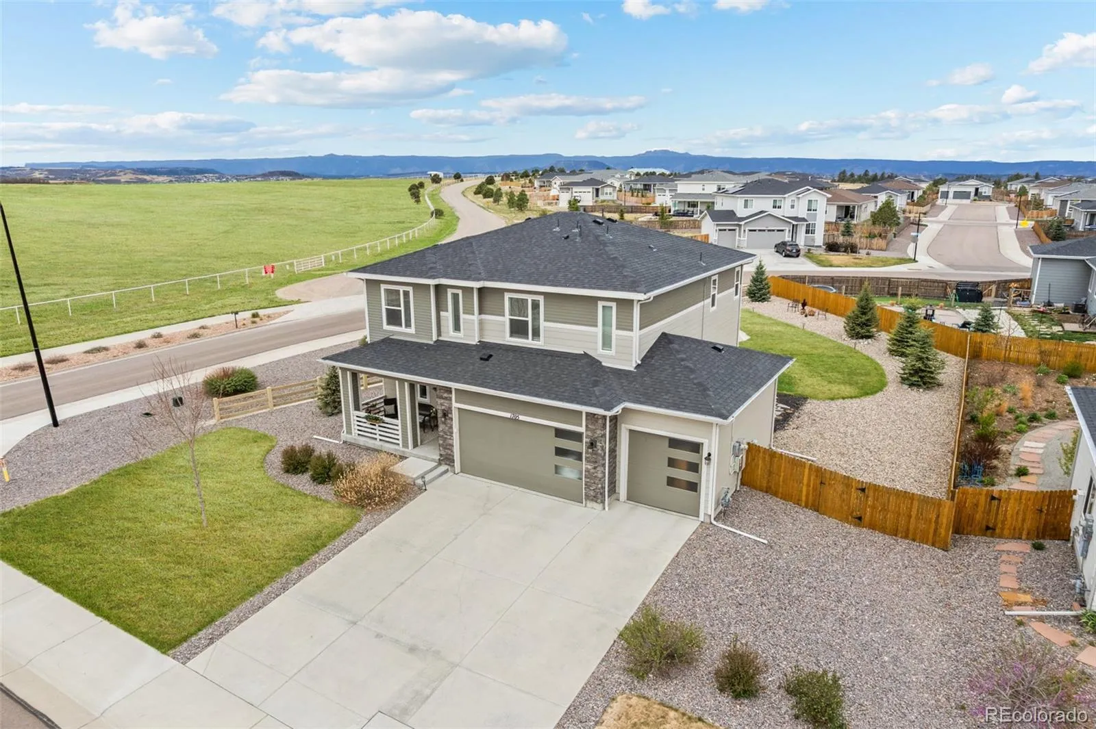 sense of privacy and tranquility while still keeping you close to everything the town has to offer. Just beyond the backyard, you will find horses often grazing in view from the stamped concrete patio and custom pergola. This outdoor space is perfectly designed for relaxing or entertaining while soaking in the sweeping mountain views. Situated on one of the largest and most desirable lots in the community, the home features a flexible and functional layout to suit a variety of lifestyles. Upstairs you will find three bedrooms including a spacious primary suite with a private bathroom, along with an additional full bathroom. The loft provides an ideal space for a home office or can be converted into a fourth bedroom if desired. The main level offers a welcoming front sitting room with a direct view of Pikes Peak, perfect for a quiet retreat or additional workspace. The open concept living room, dining area, and kitchen are filled with natural light and finished with clean, modern touches. A gas fireplace anchors the living space, creating a warm and inviting atmosphere. Energy efficient solar panels help keep monthly electric costs low, adding long term value and sustainability. From your front door, enjoy access to miles of scenic trails that showcase the natural beauty of Castle Rock. This location combines peaceful surroundings with convenient proximity to local restaurants, shops, and the vibrant downtown area known for its year round events. With the upcoming Crystal Valley interchange and exciting new development including a Costco, the area continues to grow while maintaining its charm. This is a rare opportunity to own a home that offers stunning views, thoughtful design, and an unbeatable Castle Rock lifestyle.