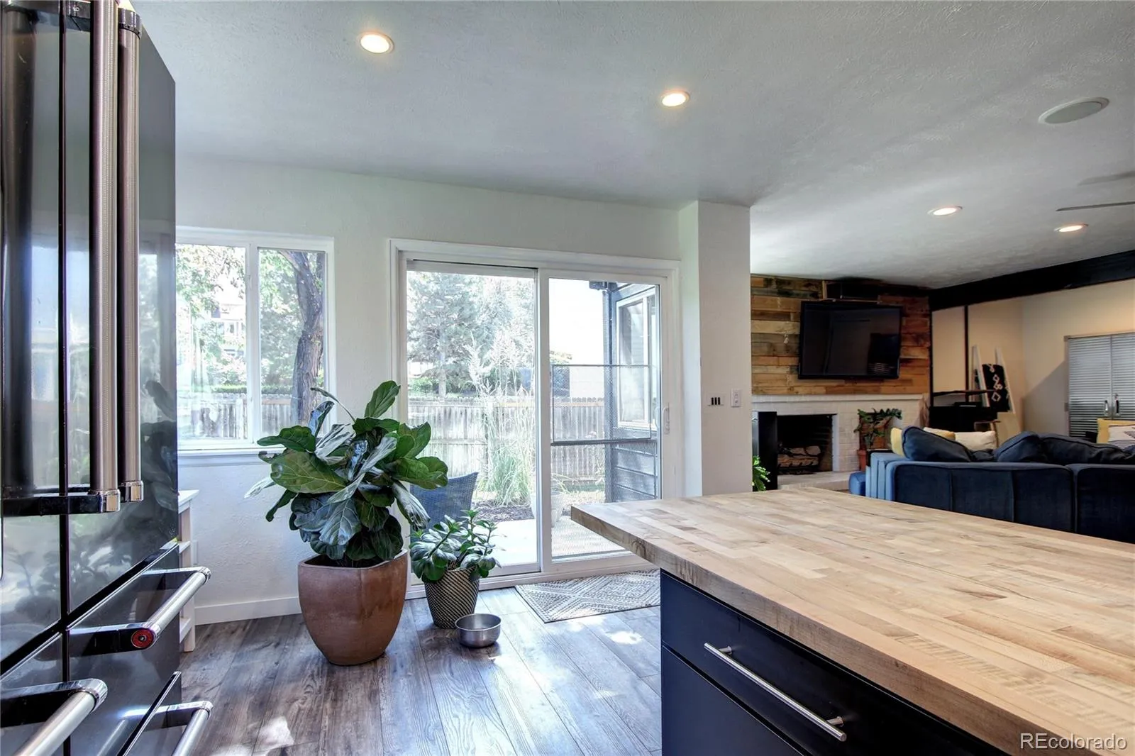At the heart of the home is the fully remodeled kitchen, featuring modern finishes, abundant workspace, and seamless flow into the living and dining areas. The main living room with a gas fireplace opens to the backyard, creating a perfect indoor-outdoor connection.