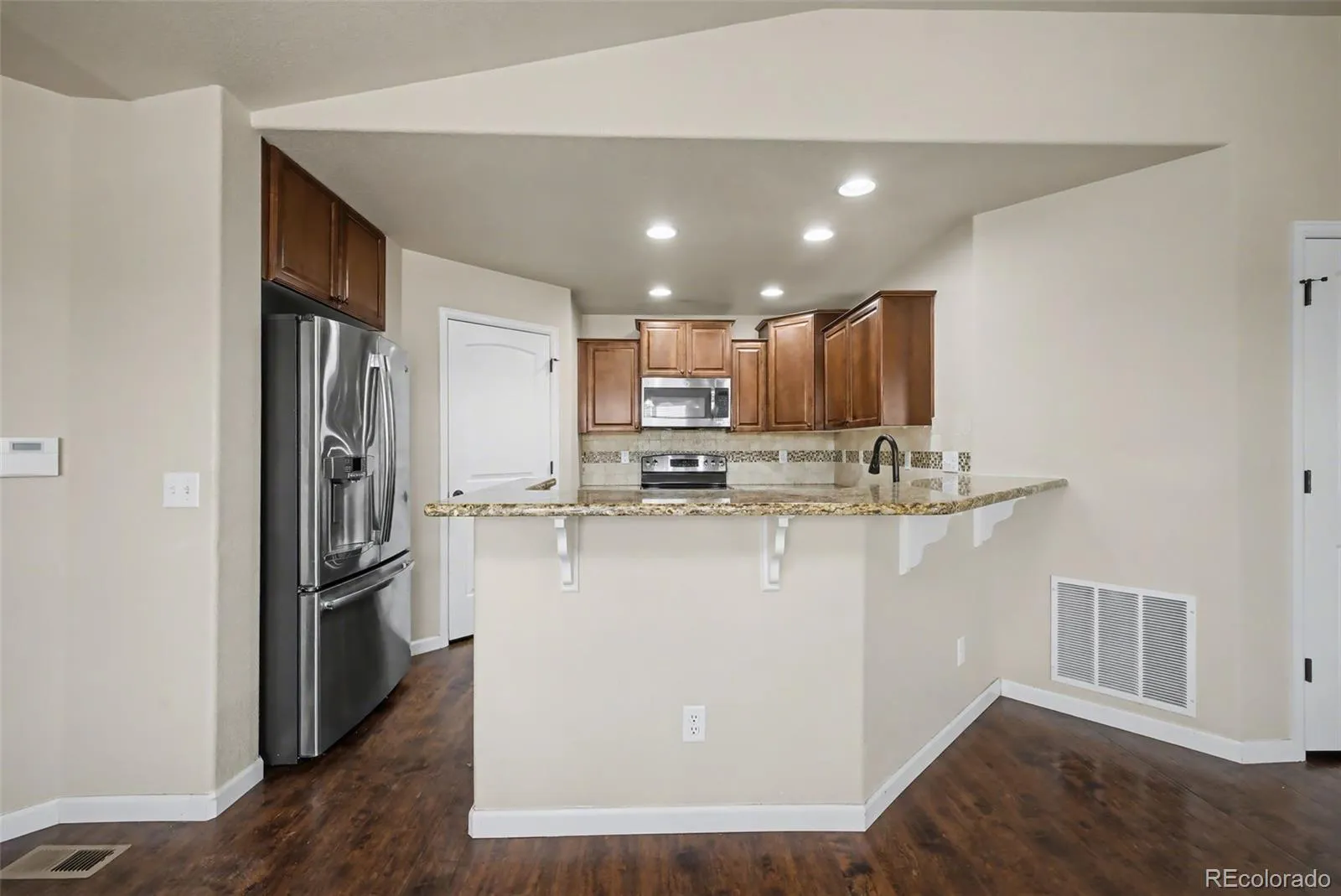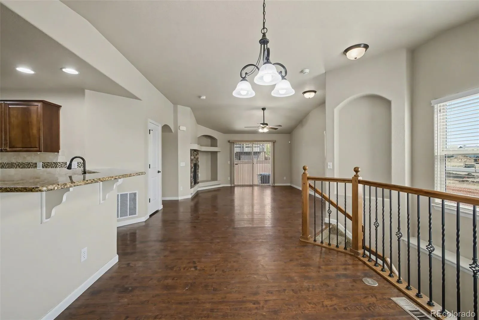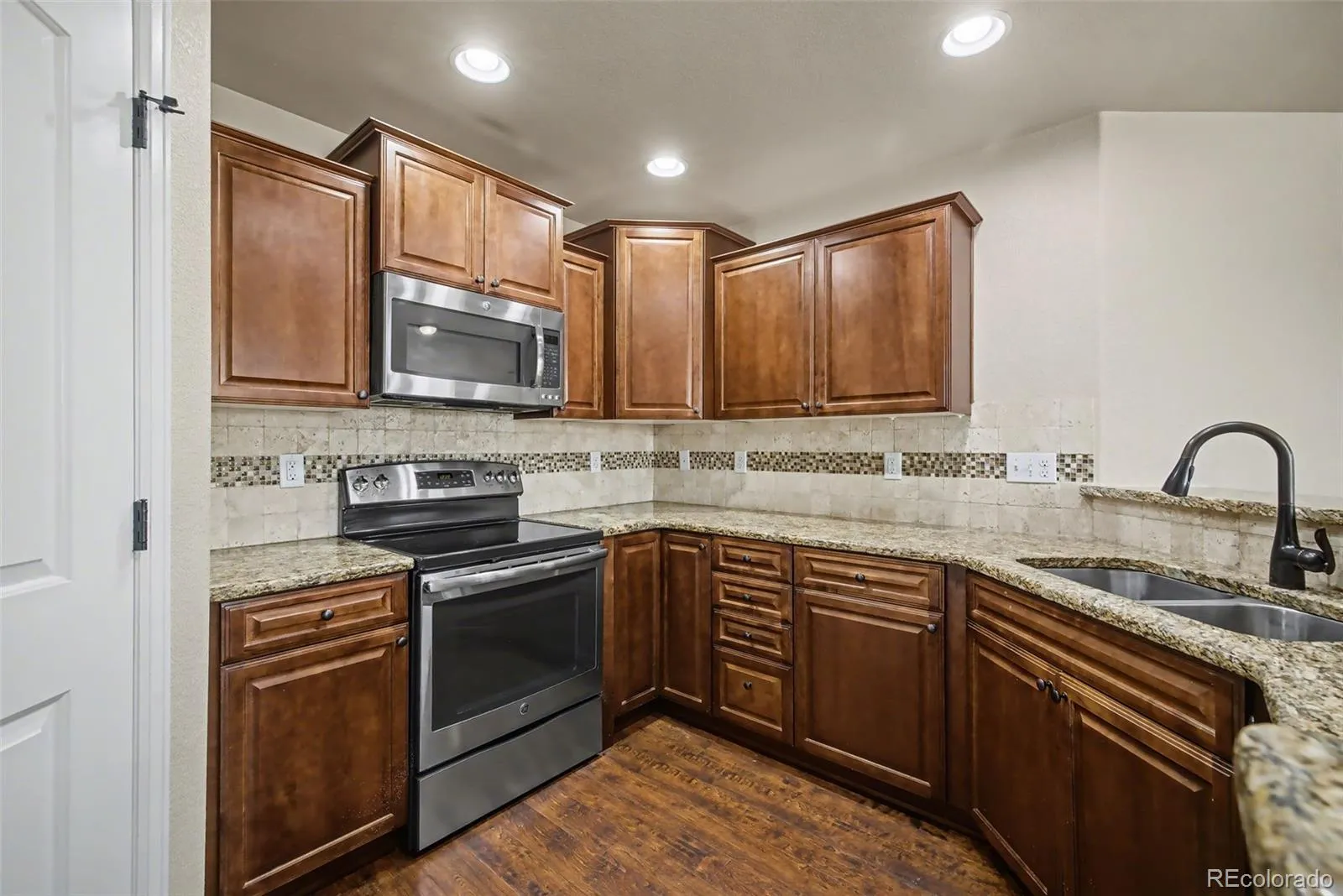 Your oasis awaits! Welcome to this beautiful 4 bedroom, 2.5 bathroom townhome that offers main level living, a 2-car attached garage (with epoxy-sealed flooring!), and an abundance of amenities! Upon entering the home, you will notice the natural lighting flowing into the home through its large windows, showcasing the home’s open concept layout and beautiful laminate wood flooring. The living room features a fireplace to cozy up by as well as sliding glass doors which provide access to the fenced-in backyard and patio from which homeowner(s) can enjoy Colorado’s great outdoors from the comforts of home! The kitchen showcases a stunning backsplash and countertops and also provides ample cupboard space as well as a large walk-in pantry! The kitchen comes fully equipped with a microwave, refrigerator, range, and dishwasher, so it is all ready for you to bring your culinary and/or baking dreams come to life! The home’s primary bedroom showcases an ensuite 5-piece bathroom with a double vanity as well as a walk-in closet! An additional bedroom and bathroom and a laundry closet (with a washer and dryer) complete the main level. Downstairs you will find a finished, full-sized basement with a large family room ideal, two additional bedrooms, a full bathroom, storage room, and utility room. This end-unit home is conveniently located near major roads such as CO-21S and Woodmen for access to nearby amenities and commutes!