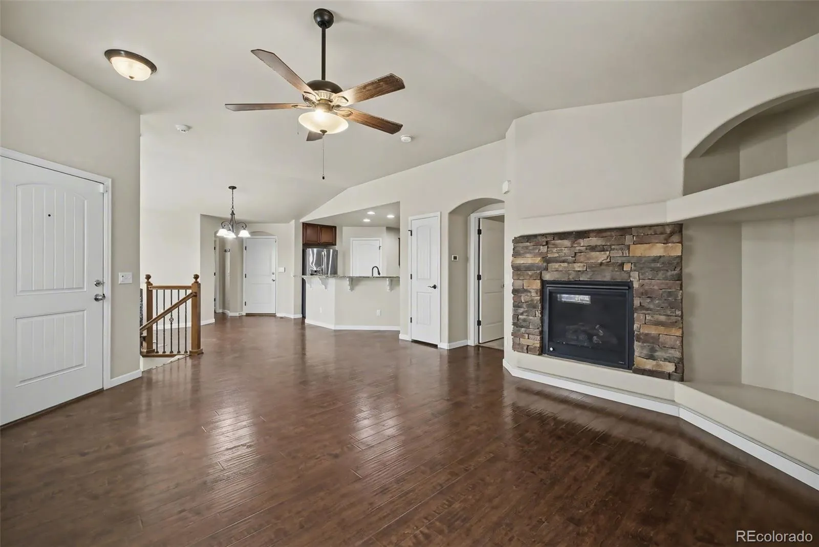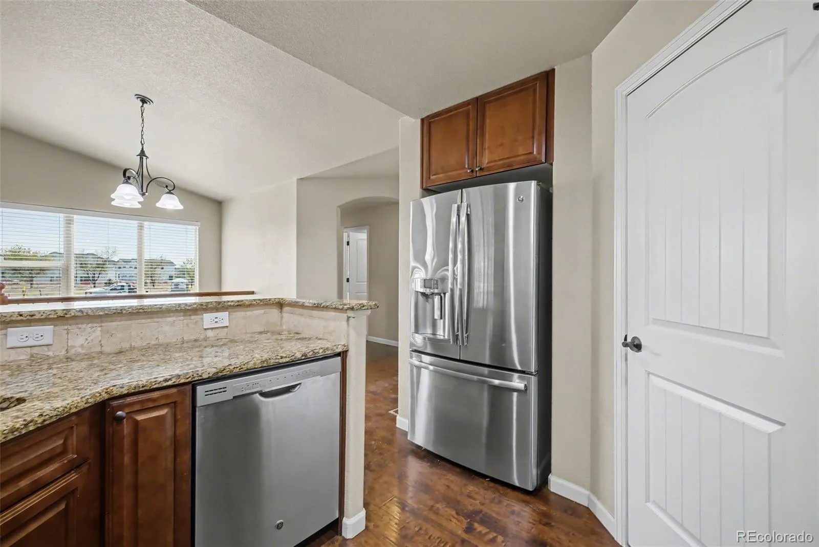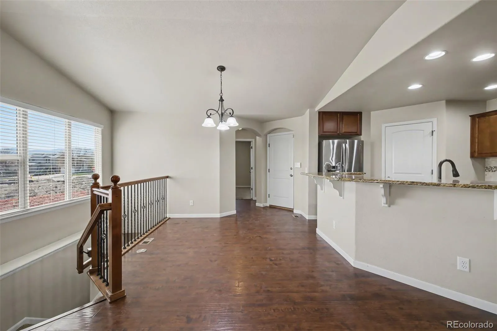 Your oasis awaits! Welcome to this beautiful 4 bedroom, 2.5 bathroom townhome that offers main level living, a 2-car attached garage (with epoxy-sealed flooring!), and an abundance of amenities! Upon entering the home, you will notice the natural lighting flowing into the home through its large windows, showcasing the home’s open concept layout and beautiful laminate wood flooring. The living room features a fireplace to cozy up by as well as sliding glass doors which provide access to the fenced-in backyard and patio from which homeowner(s) can enjoy Colorado’s great outdoors from the comforts of home! The kitchen showcases a stunning backsplash and countertops and also provides ample cupboard space as well as a large walk-in pantry! The kitchen comes fully equipped with a microwave, refrigerator, range, and dishwasher, so it is all ready for you to bring your culinary and/or baking dreams come to life! The home’s primary bedroom showcases an ensuite 5-piece bathroom with a double vanity as well as a walk-in closet! An additional bedroom and bathroom and a laundry closet (with a washer and dryer) complete the main level. Downstairs you will find a finished, full-sized basement with a large family room ideal, two additional bedrooms, a full bathroom, storage room, and utility room. This end-unit home is conveniently located near major roads such as CO-21S and Woodmen for access to nearby amenities and commutes!