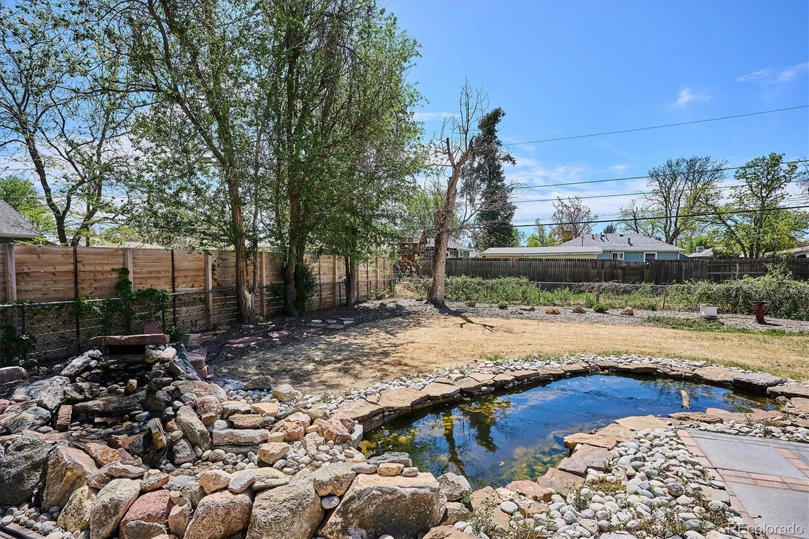 Part of the garage has been transformed into a cozy family or multi-purpose room with a unique cork floor—perfect for movie nights, hobbies, or a home office—while the remaining area provides generous storage. Outside, a nearly quarter-acre lot unfolds into the expansive fenced backyard as a private retreat, complete with a sprinkler system, an extensive water feature, and a utility shed. Covered and open patios create the perfect setting for entertaining or unwinding in the Colorado outdoors. There’s also room for RV parking, with potential to add a garage or carport. Blending modern upgrades with inviting charm this Wheat Ridge gem is a place to settle in and call home.