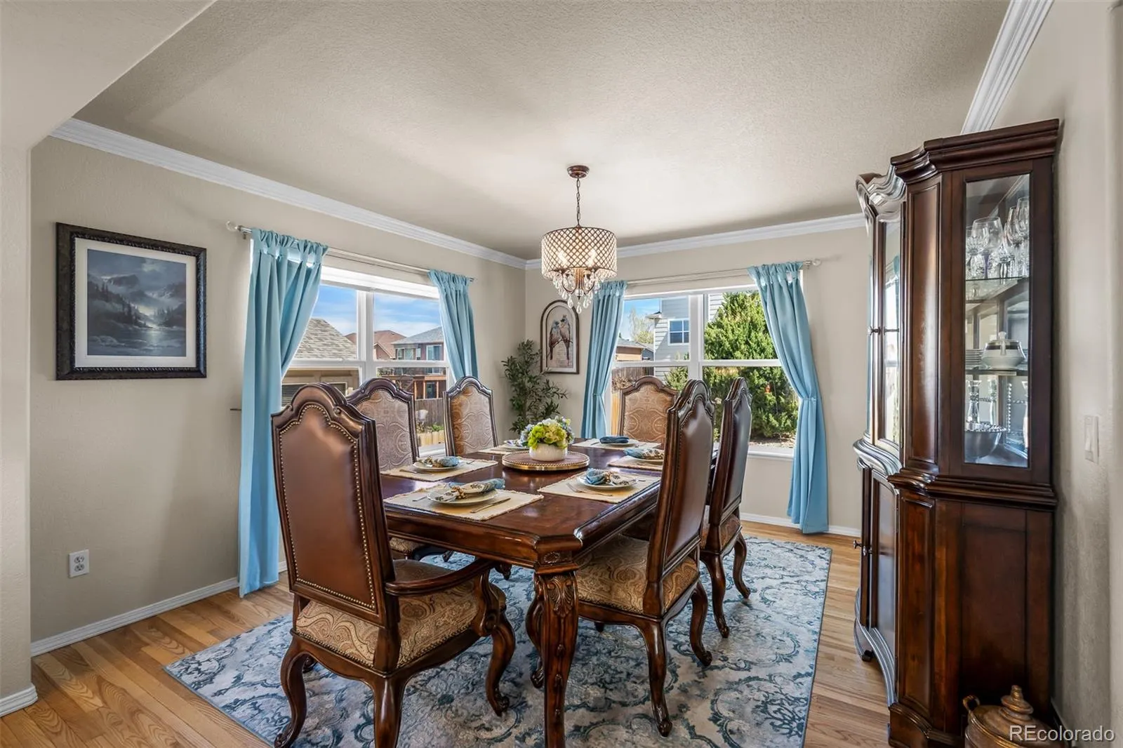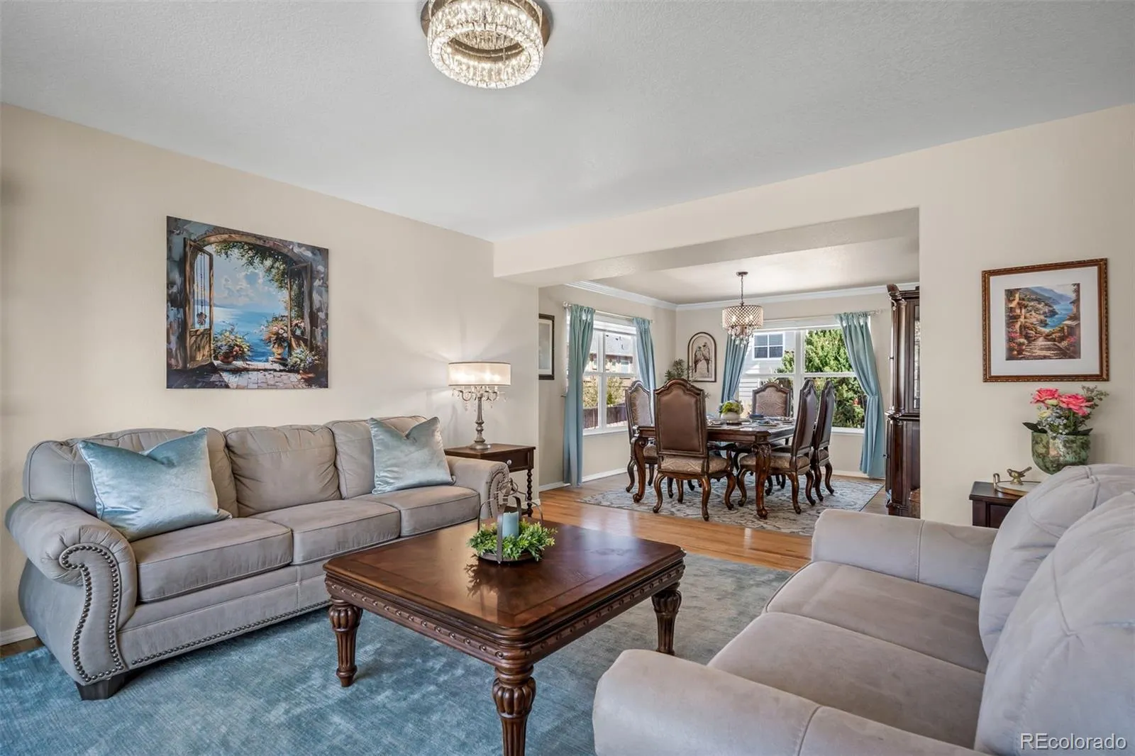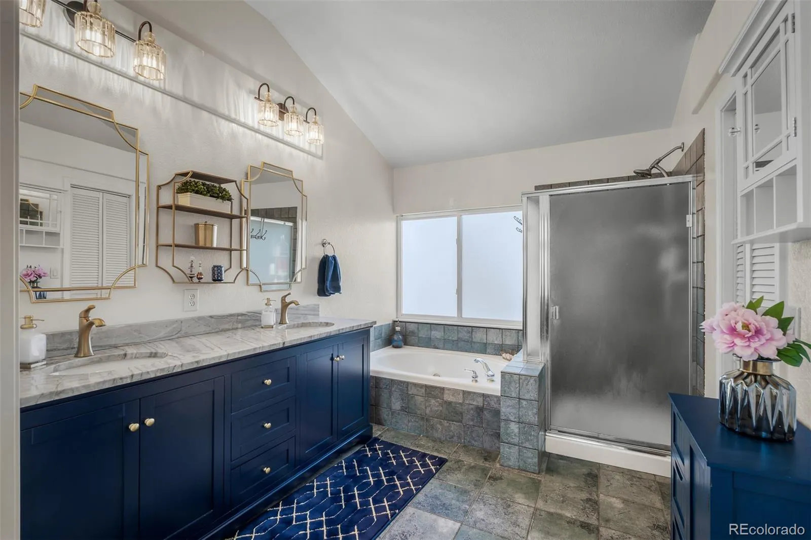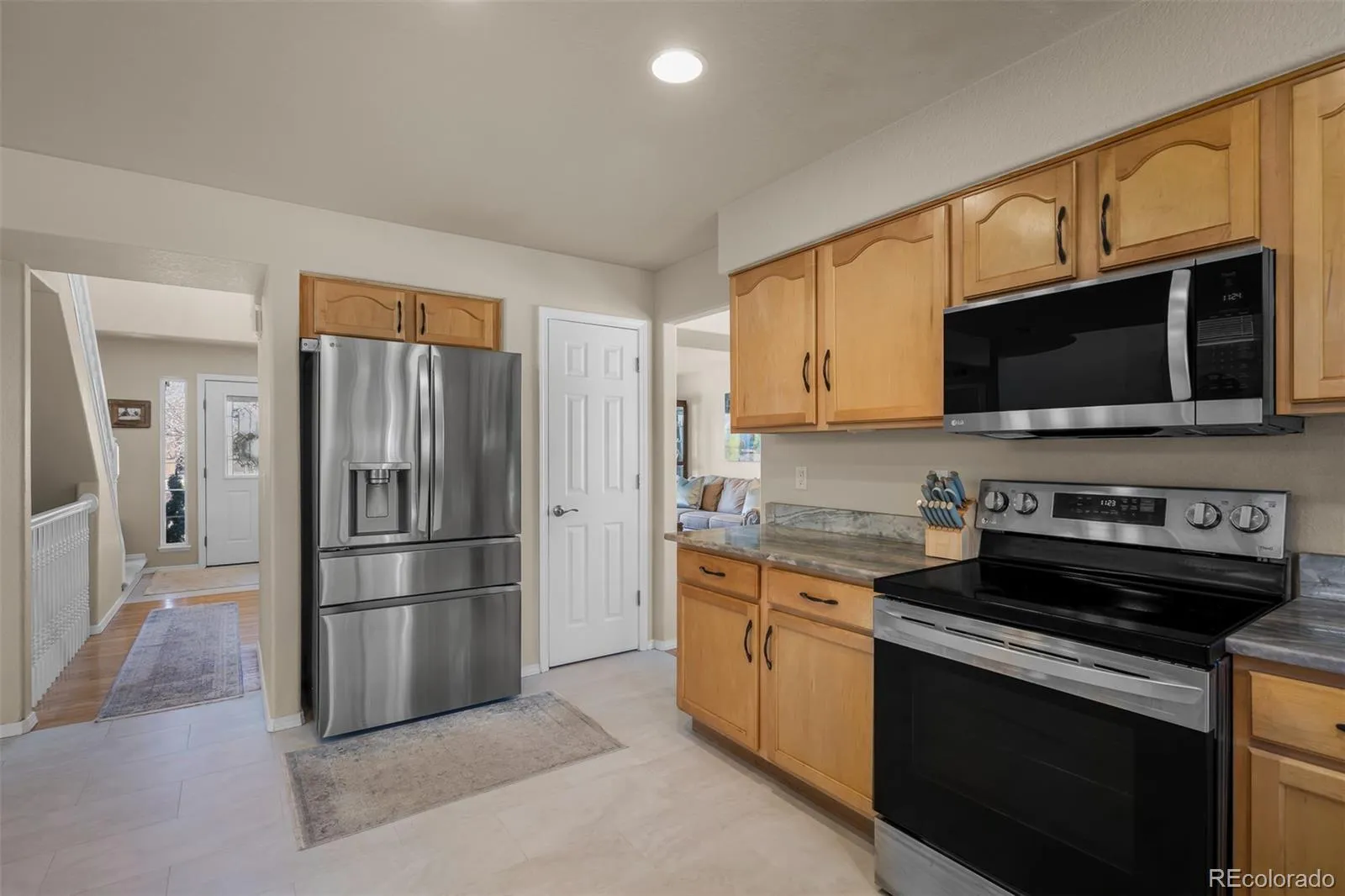 Step into this well-maintained south-facing stucco home in Indigo Ranch at Ridgeview, where mountain views welcome you from the front porch. A thoughtfully updated, spacious two-story offers a functional layout with inviting, well-connected living spaces throughout. The main level features hardwood floors, high ceilings, and updated finishes that create a clean, cohesive feel. The kitchen includes maple cabinetry, quartzite countertops, stainless steel appliances, and a pantry that flows seamlessly into the spacious great room, creating a layout that feels expansive and very functional. A wall of windows and 20-foot ceilings bring in abundant natural light, enhancing the sense of space, while built-ins and a gas fireplace with a custom mantle add comfortable everyday living. Convenient main-level powder room and laundry room. Upstairs, the vaulted primary suite includes hardwood flooring, a five-piece bath with soaking tub, dual vanities, and a walk-in closet. Two additional bedrooms and a loft-style balcony overlook into the great room, serving as a unique architectural feature and focal point. The finished basement offers 9-foot ceilings, a large recreation area, and a fourth bedroom with a walk-in closet and full bath, making it an ideal guest suite or private living space. The rear yard is private and fully fenced with mature landscaping and a large concrete patio, perfect for relaxing, enjoying summer BBQs, and hosting gatherings. Additional features include an oversized 3-car garage, central air, plantation shutters, updated lighting, a new roof installed in 2024, a radon mitigation system, some fresh interior paint, exterior repainted, and a newer kitchen floor. Located near parks, trails, schools, and shopping along the Powers Corridor with convenient access to Peterson and Schriever Space Force Bases. This home checks all the boxes with space, updates, and location—schedule your showing and see why this one stands out the moment you walk in!