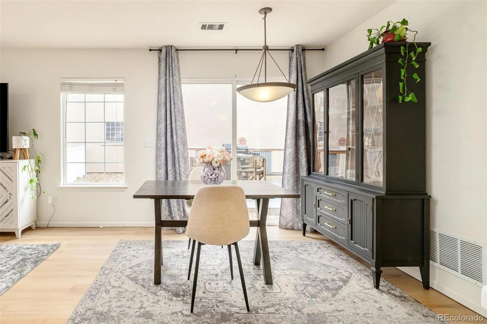Framed by charming architectural details — including a classic tiled rooftop and picturesque white picket fencing — this home blends timelessness with everyday ease. Inside, an open-concept floor plan unfolds with new luxury vinyl flooring. The kitchen is both functional and inviting, featuring warm oak cabinetry, durable countertops, a stainless steel refrigerator, and a newly installed dishwasher. A large pantry and direct access to the laundry area — complete with a stackable washer and dryer — add to the home’s practical appeal. Upstairs, a versatile loft provides flexible space for a home office, rec area, and more. The generous primary suite serves as a private haven, complete with an ensuite bath, deep soaking tub and a spacious walk-in closet. Sliding glass doors extend the living space outdoors, connecting effortlessly to the expansive deck. A beautifully landscaped, HOA-maintained front yard and thoughtfully Xeriscaped side yard enhance both convenience and sustainability, while a spacious TREX deck creates a private outdoor retreat. Residents enjoy access to community amenities including a pool and clubhouse — elevating both lifestyle and convenience in this turnkey offering.