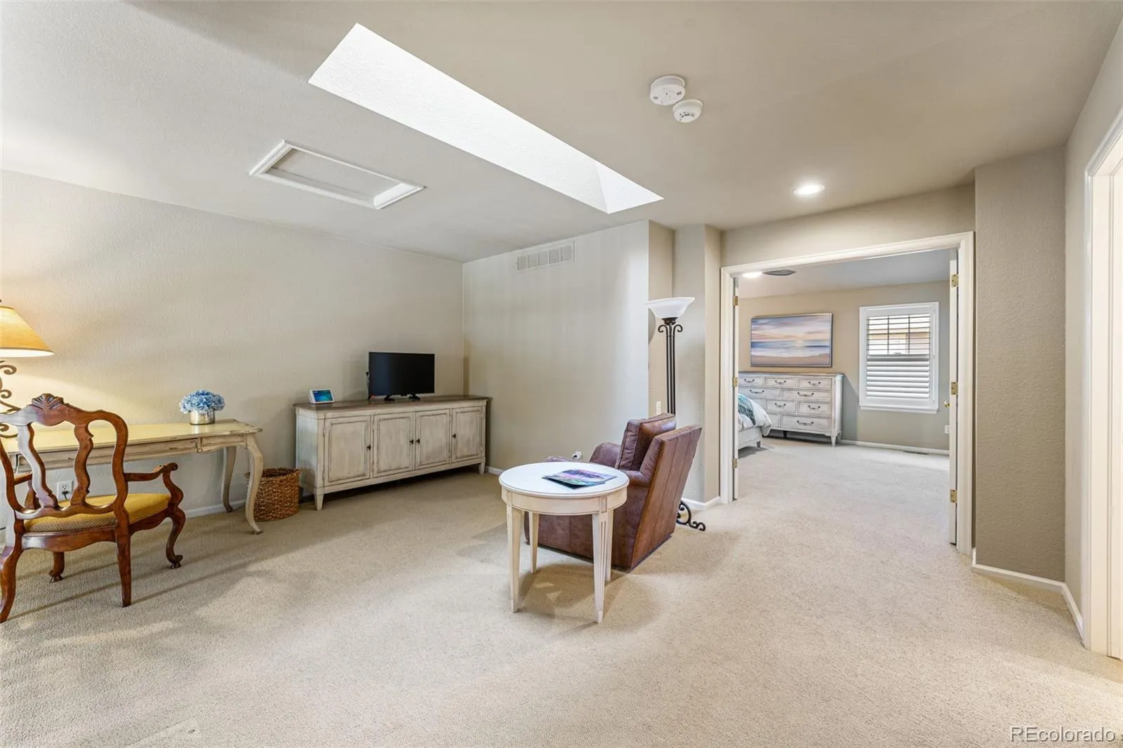 Easy living in this beautiful, updated townhome in the vibrant Lowry neighborhood! Luxury vinyl plank flooring graces the main level and highlights the open floor plan. The spacious living room features a gas fireplace to stay cozy on cold evenings. Imagine cooking delicious meals in the cheerful kitchen with white cabinetry, stylish backsplash and quartz countertops with stainless steel appliances completing the look. Up the stairs to the beautiful primary suite with a double door entry. Every day you’ll enjoy a spa-like experience in the luxurious remodeled primary bath featuring a beautiful soaking tub, custom walk-in shower, soothing colors and finishes and the warmth of heated floors. The secondary bedroom is large with a walk-in closet. The big loft area is perfect for an office or study, or a great retreat to read, play games or watch a movie. Newer Anderson windows fill the home with natural light, accented with custom window treatments and plantation shutters. The smartly finished basement offers a bedroom and a neat and clean full bath. There is plenty of room for workout equipment and a large closet. Great storage everywhere including the 2-car garage with a large extra storage area, not available in all models. New roof, gutters and skylights installed in Sept. 2025 The HVAC system was replaced in the past 7 years. A pristine neighborhood and in an excellent location in Lowry. A few blocks to Clark’s Market, several restaurants and shops including North Country, the Lowry Beer Garden, the Officer’s Club and more. Several parks, 24-hour fitness and the Montclair Rec Center for your fitness needs. An ideal location if you work at the Anschutz Medical Campus, the Health District near downtown or office in DTC. 15 minutes to museums, Botanic Gardens, and upscale Cherry Creek featuring luxury retail, restaurants and galleries. Come experience the perfect Denver lifestyle.