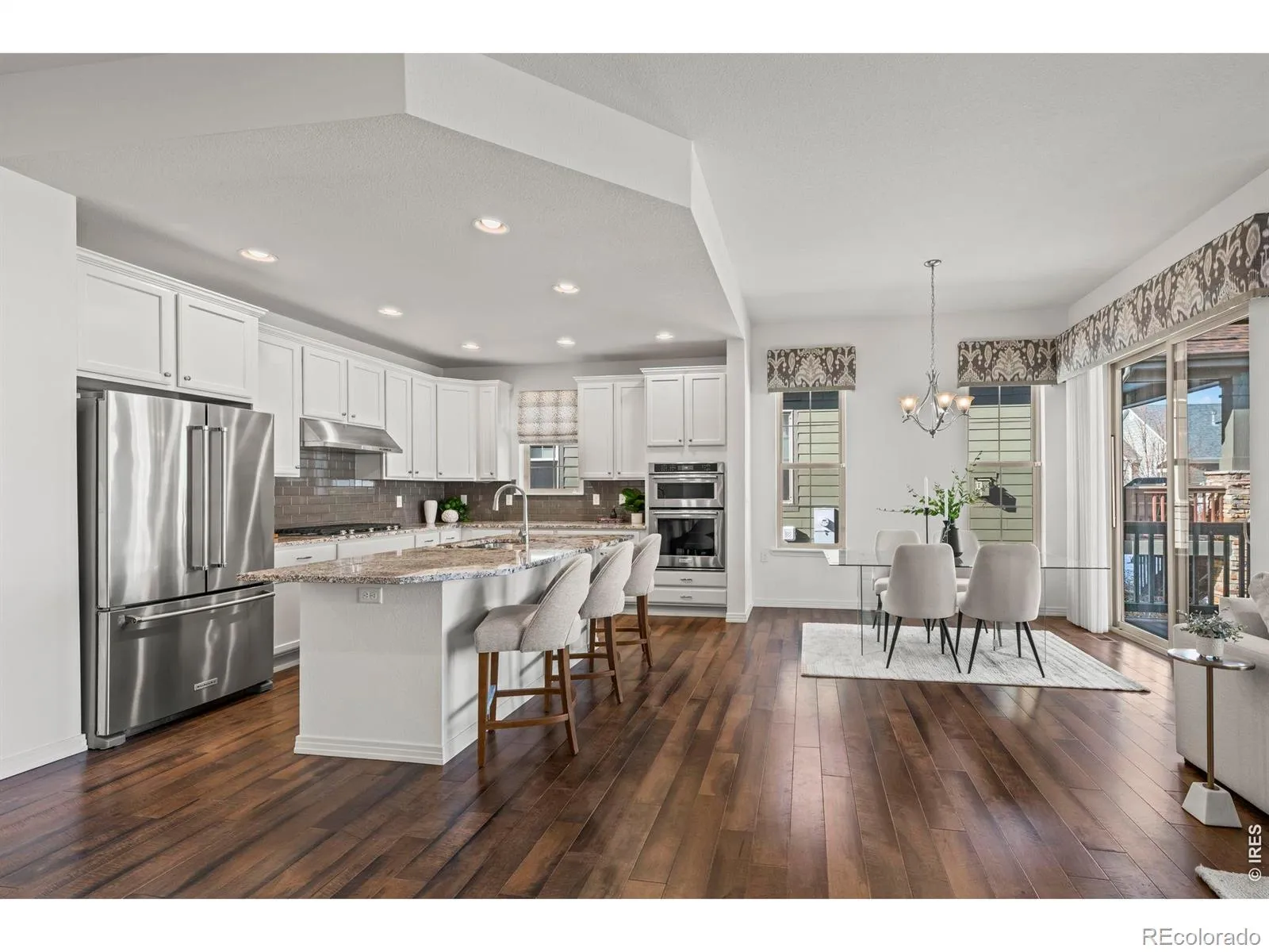 Lock-and-leave, low-maintenance living in Longmont’s coveted Tramonto neighborhood. HOA covers all exterior maintenance, snow removal, grounds, trash, and hazard/roof insurance for true ease of ownership. This meticulously maintained ranch-style home features the largest Solstice floor plan with an open layout, 10′ ceilings, fresh interior paint, and quality upgrades throughout. The chef’s kitchen includes a gas range, stainless appliances, and oversized island. Spacious primary suite with zero-entry shower, dual vanity, bidet, and walk-in closet. Bonus feature is a main-floor secondary conforming bedroom with adjacent full bath, ideal for guests or a private home office. The finished lower level offers a large family room, wet bar with beverage center, custom cabinetry, two generously sized bedrooms with walk-in closets, and a third full bath. Enjoy the large covered private patio for outdoor living. Additional highlights include high-end shutters, custom window treatments, epoxy-coated garage floor, tankless water heater, and high-efficiency HVAC. Ideally located with easy access to Longmont, Niwot, and Boulder