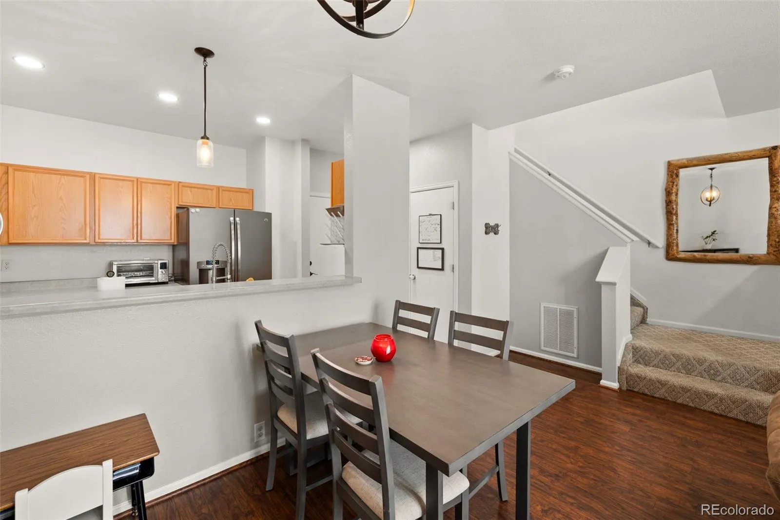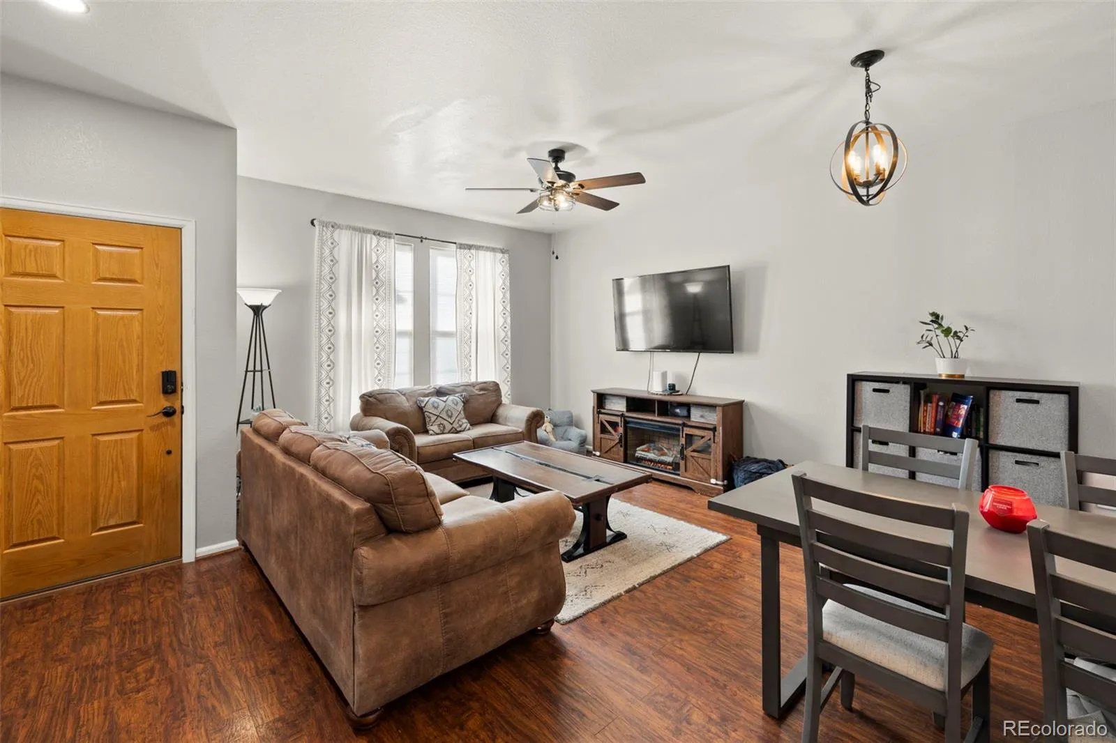 Step into comfort with this well maintained 2-bed, 2.5-bath townhome in a desirable Colorado Springs community, ideally positioned near Powers Corridor, local amenities, and Peterson & Schriever Air Force Bases. The open main level presents a seamless flow between living, dining, and kitchen spaces — perfect for everyday living and entertaining. Natural light enhances the clean finishes, while the open kitchen offers practical functionality with stainless steel appliances. Upstairs, the primary suite awaits with an attached full bath, double vanity, and generous walk-in closet w/ custom built-ins. A second spacious bedroom and full bath provide flexibility for guests, home office space, or a personal retreat. A convenient second-floor laundry area & second full bath adds everyday ease. An oversized two-car attached garage provides private access and abundant storage. Enjoy mountain views from the front porch and a low-maintenance exterior. Other upgrades to note are central A/C, whole home water filtration system & new water heater.
