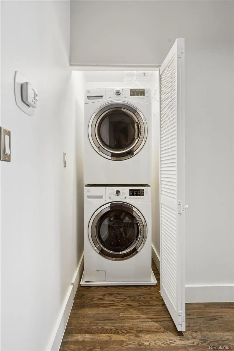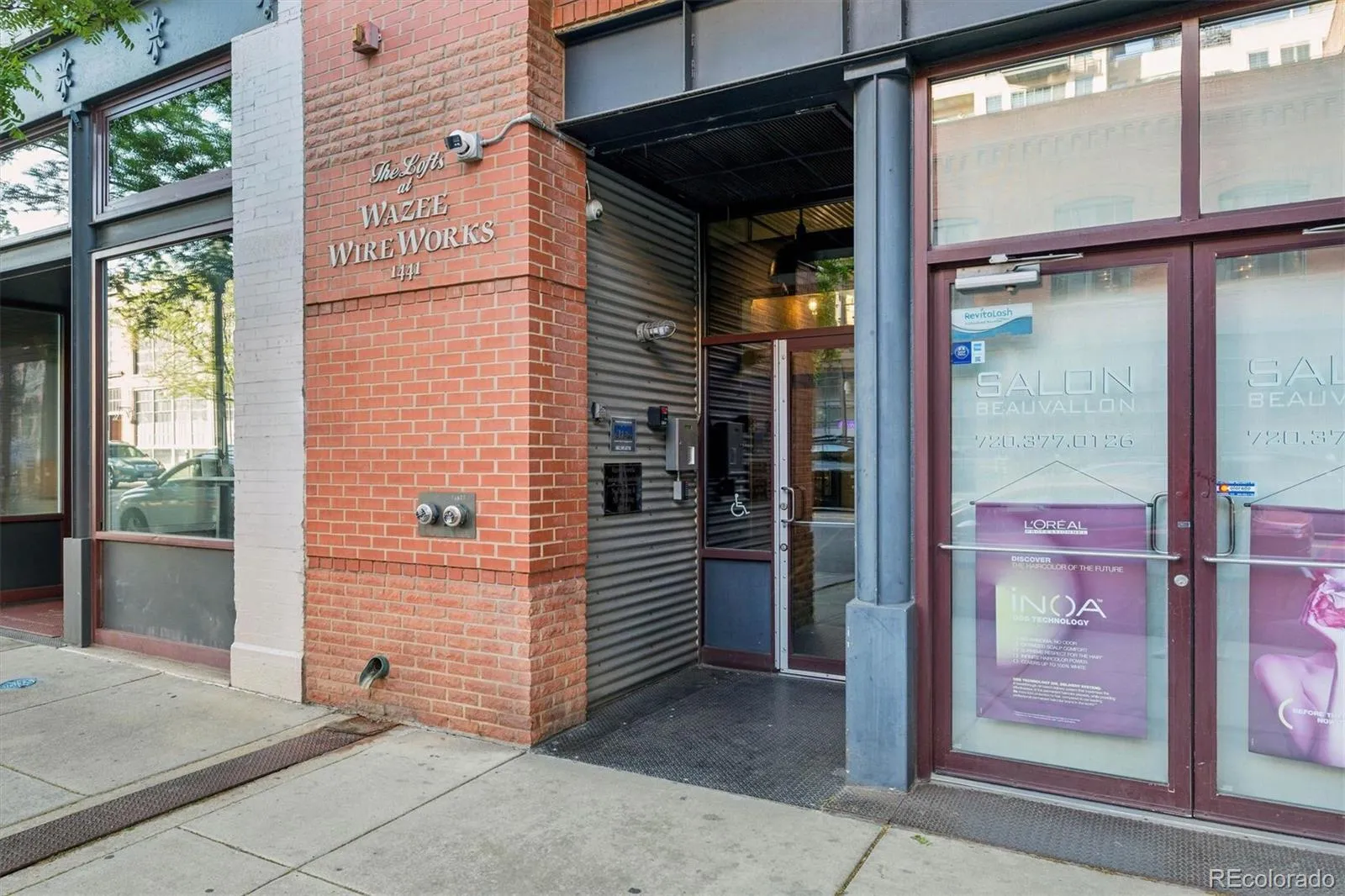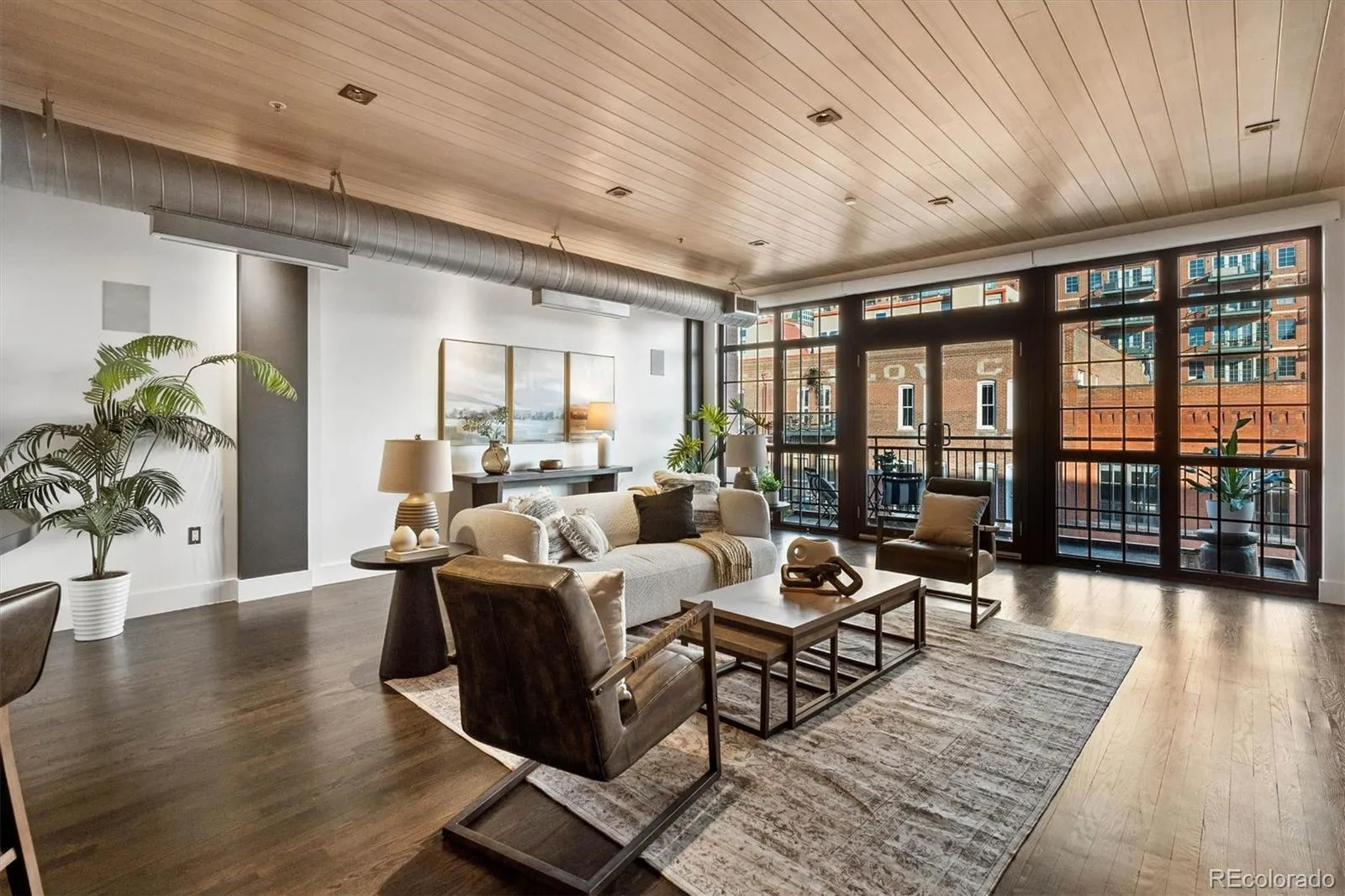 A true LoDo loft in the iconic Wazee Wire Works — where historic character meets clean, move-in ready living. Ten-foot ceilings, exposed brick, and hardwoods set the tone, while built-in speakers for surround sound elevate the space. A full wall of floor-to-ceiling windows and sliding doors bring in natural light and open to an oversized 17′ x 5′ balcony (set to be refinished), extending the living space outdoors.