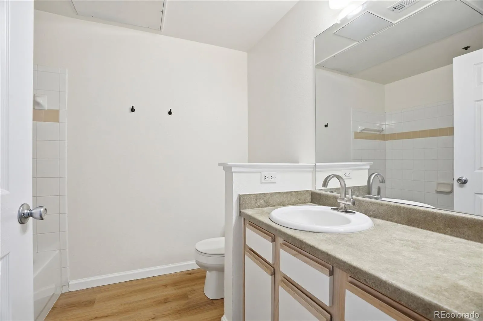 Bright, move-in ready main-floor condo in Fallingwater with fresh paint and thoroughly cleaned interiors. This well-maintained unit offers two large bedrooms each with a private bathroom—ideal for roommates or guests—plus a functional kitchen with all appliances included and a full-size washer and dryer in the dedicated laundry area. Comfortable hot-water heat provides efficient, even warmth. Enjoy a reserved parking space and a location that does not face the parking lot for added privacy. The community features a clubhouse and pool, and HOA dues are lower than comparable complexes. Conveniently located near the foothills and C-470 for easy mountain access and commuting. Ready to show and move into today!