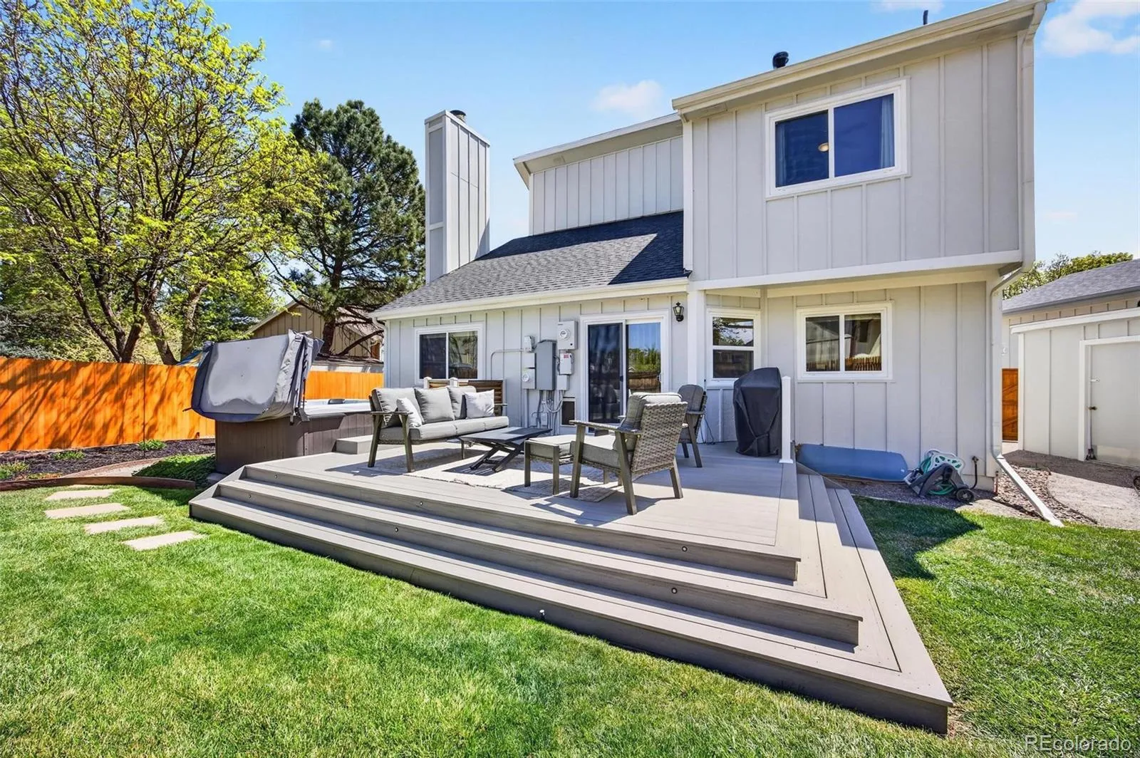 Step outside to discover a brand-new, expansive deck, ideal for entertaining. This private oasis features a luxurious hot tub, perfect for relaxation and social gatherings. Additionally, you’ll appreciate the convenience of RV or third vehicle parking behind a secure gate on the side of the house.