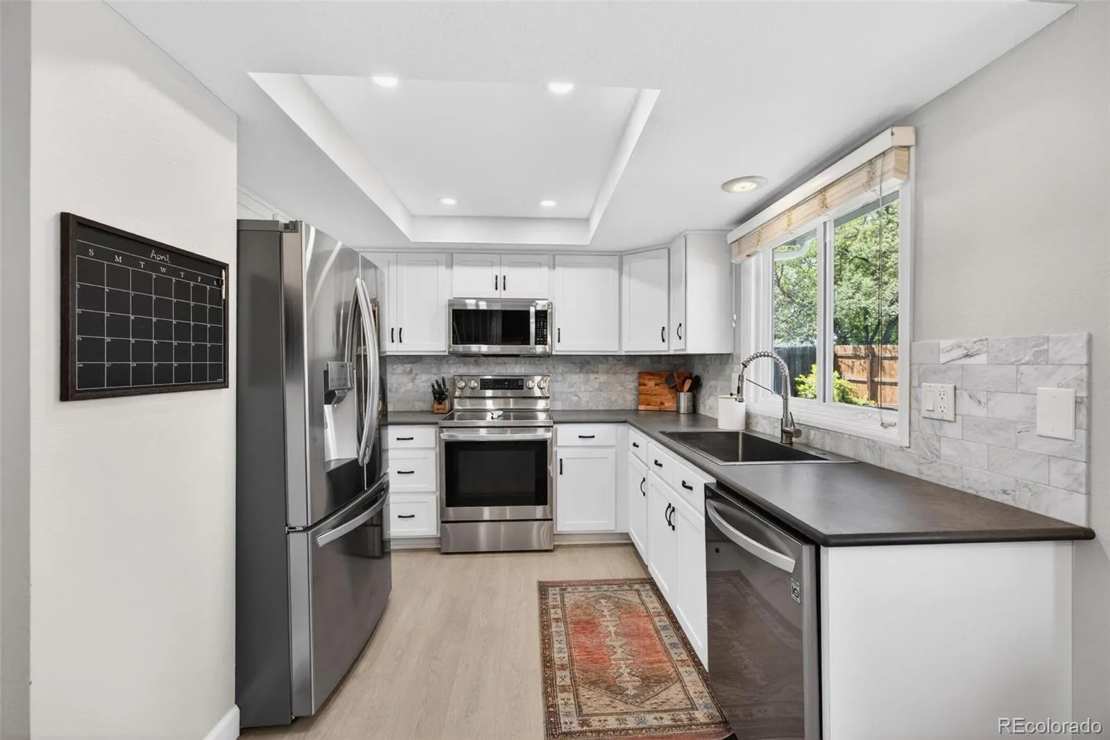 The main level showcases elegant luxury vinyl plank flooring, combining durability with style throughout. Recent upgrades, including a new garage door and fence gates, enhance both security and convenience. Stay connected and in control with a smart WiFi-enabled electric range and a Samsung washer/dryer, along with a sprinkler system you can easily manage from your phone.