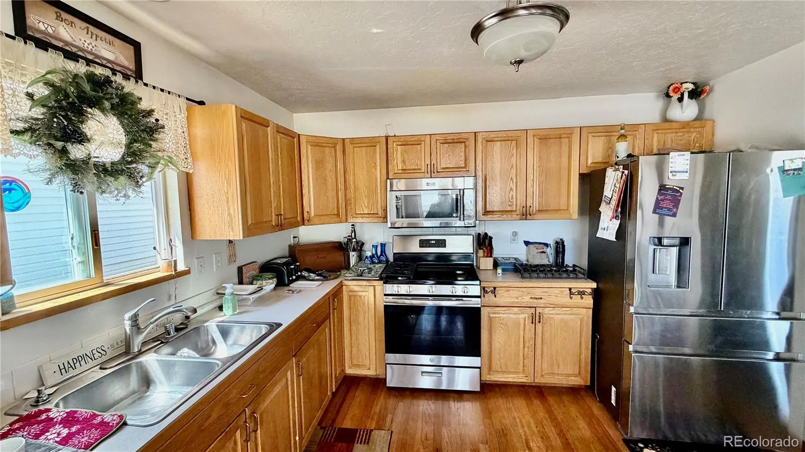 The main level includes a convenient laundry room and a generously sized kitchen equipped with a gas range, ample cabinetry, and great potential for customization. The open layout flows naturally into the living and dining areas, creating a functional space for everyday living and entertaining.