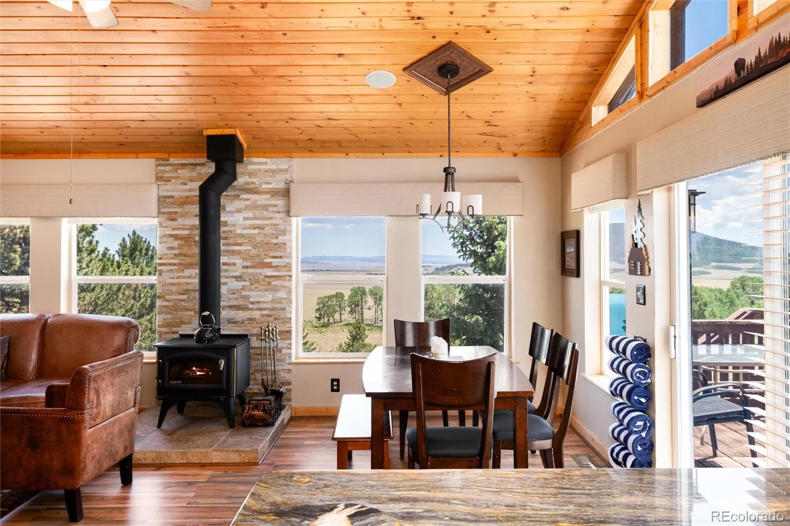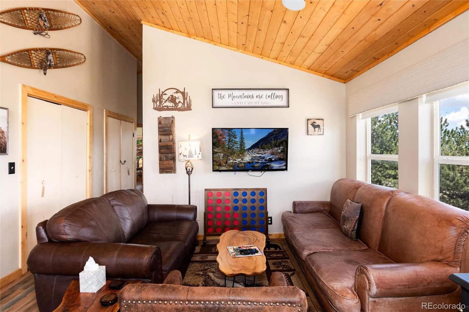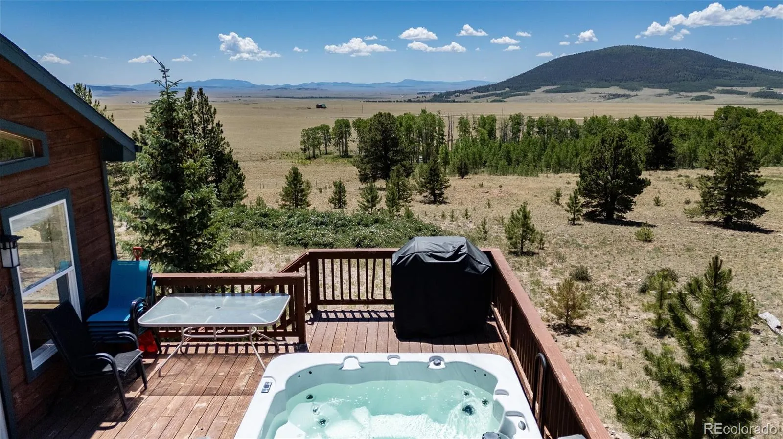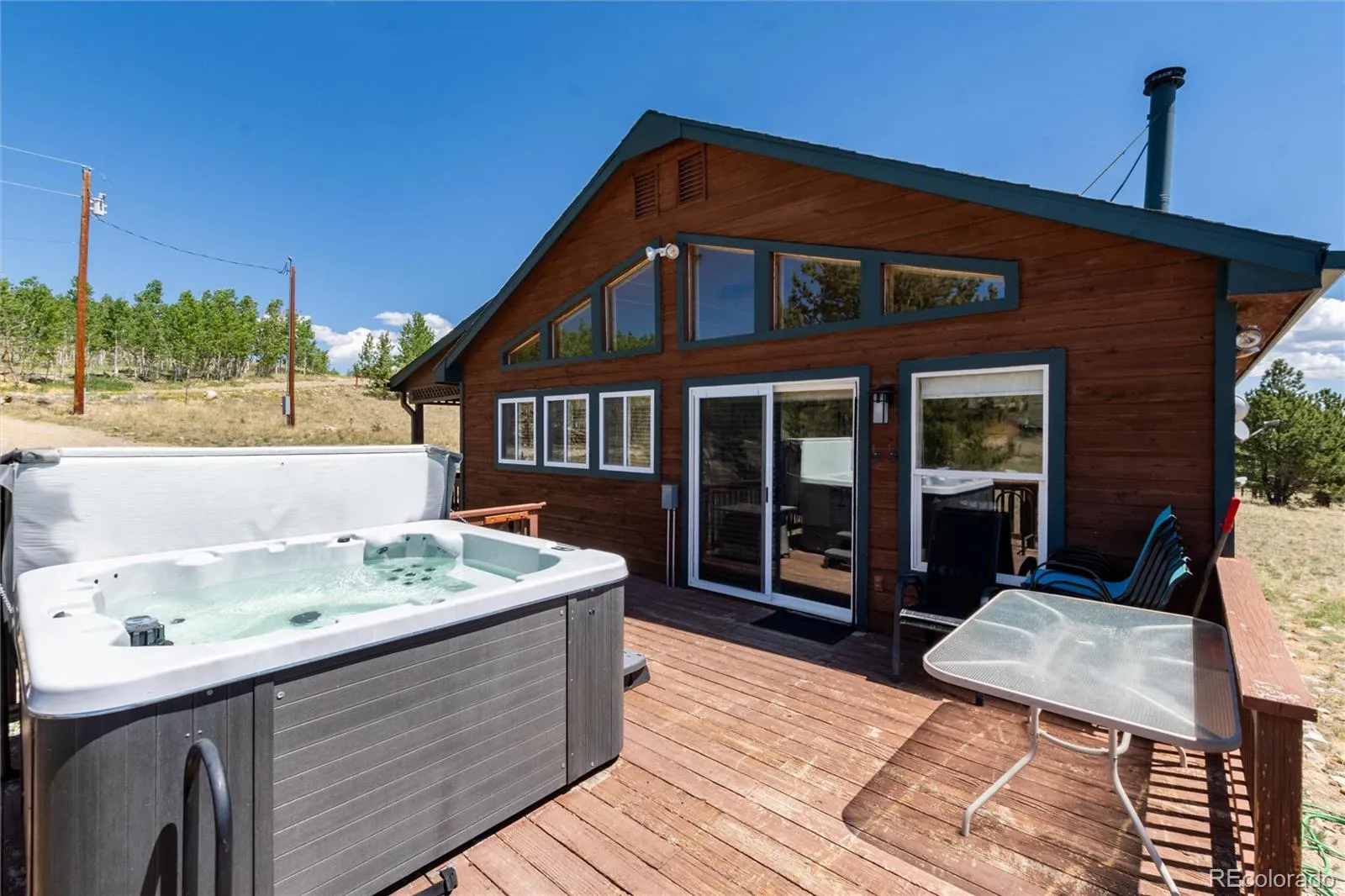 Great home in a sought-after neighborhood! This Warm Springs property offers easy year-round access on a sunny 1.25-acre lot with sweeping views in every direction. Move-in ready and fully furnished, this ranch-style home comfortably accommodates a large group with three spacious bedrooms and an open floor plan. Vaulted tongue-and-groove ceilings extend throughout the entire home, creating a warm mountain feel. The kitchen features granite countertops, stainless steel appliances, and comes fully stocked. The living room showcases stunning mountain and valley views, complemented by a cozy wood-burning fireplace. A covered front porch welcomes you inside, along with a convenient entry nook for boots and coats. Out back, enjoy a large private deck with panoramic views that stretch for miles. Relax under the stars in the hot tub or host outdoor meals with space for a dining table and grill. The circular driveway offers plenty of parking for vehicles and trailers. Located in the gated Warm Springs community, owners enjoy access to stocked fishing ponds, HOA-maintained water, miles of hiking trails, and well-maintained roads—all just a short drive to Fairplay. Whether you’re looking for a full-time residence, mountain getaway, or short-term rental investment, this property checks all the boxes.