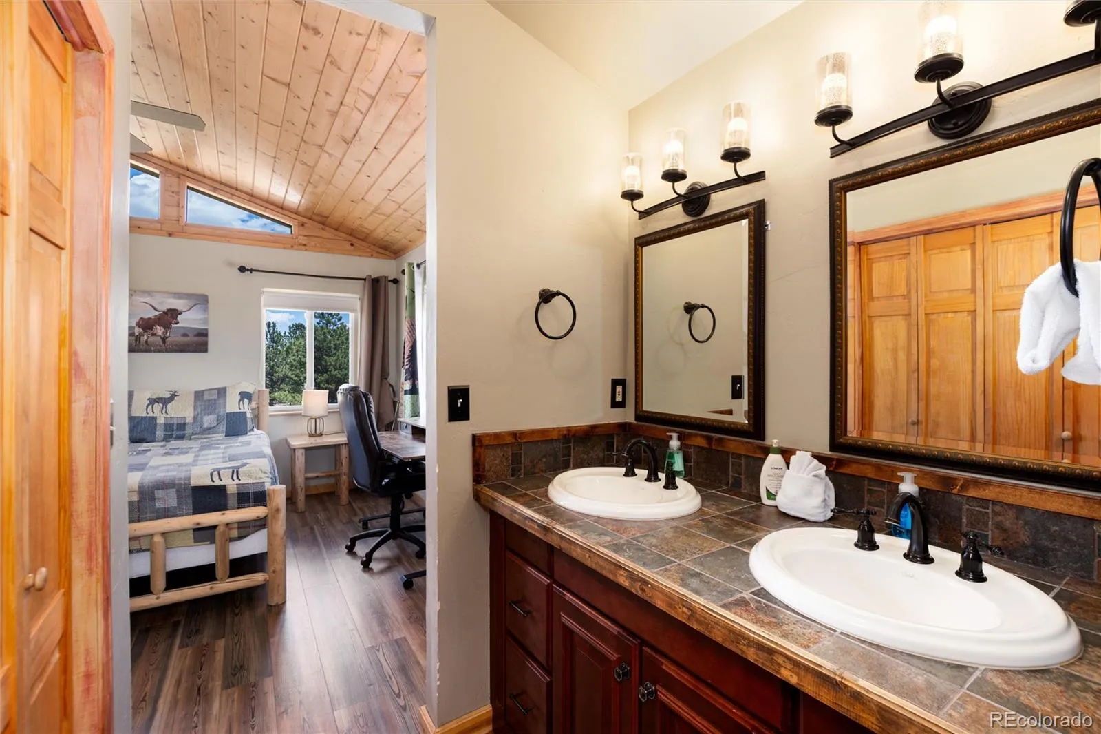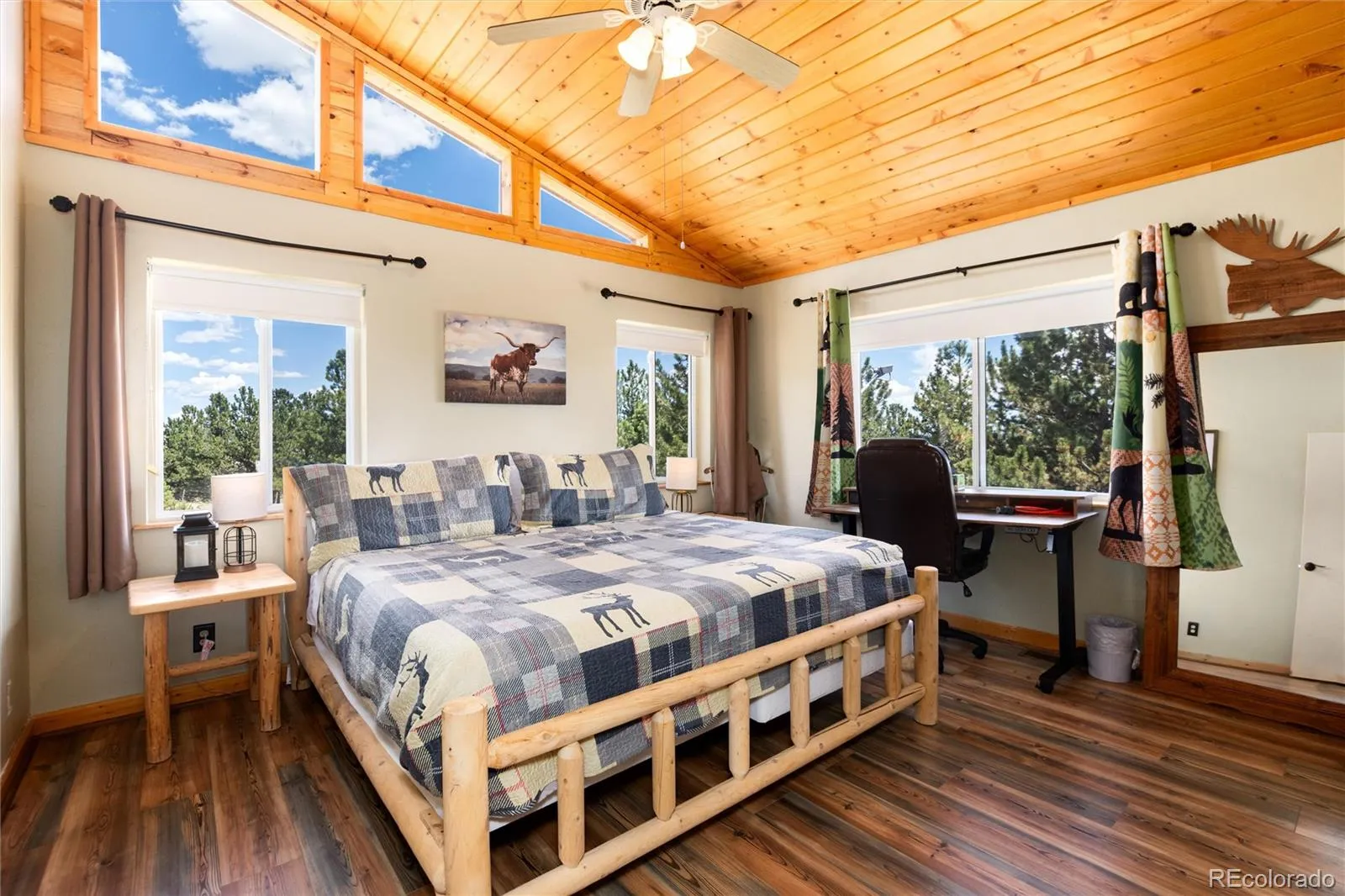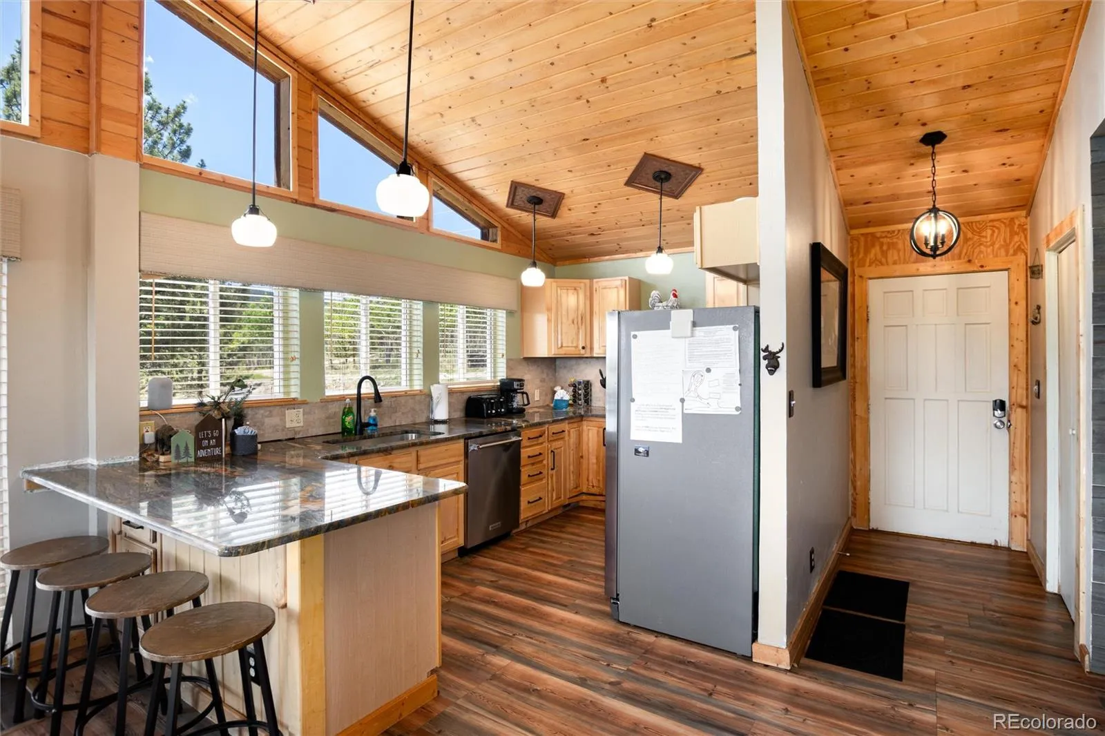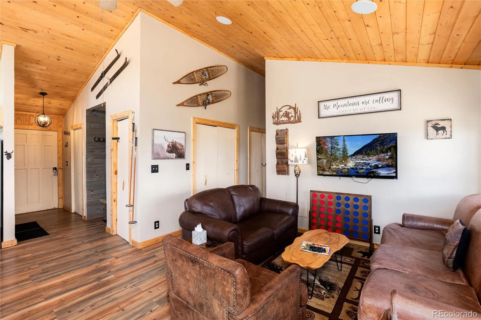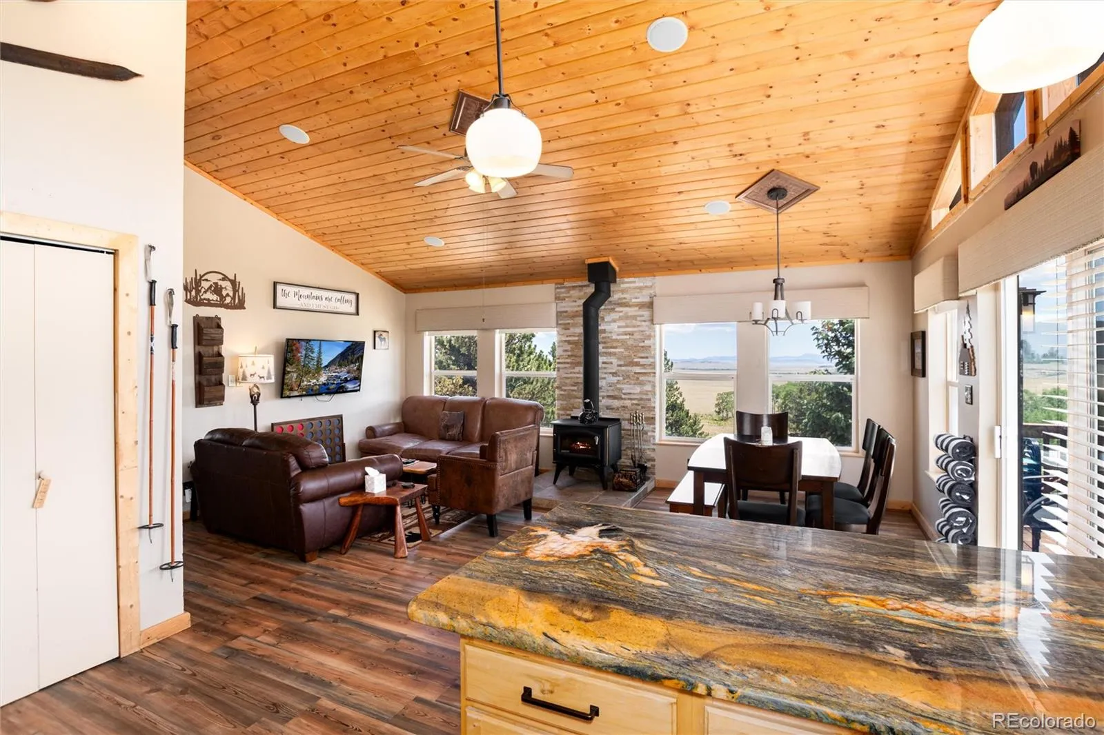 Great home in a sought-after neighborhood! This Warm Springs property offers easy year-round access on a sunny 1.25-acre lot with sweeping views in every direction. Move-in ready and fully furnished, this ranch-style home comfortably accommodates a large group with three spacious bedrooms and an open floor plan. Vaulted tongue-and-groove ceilings extend throughout the entire home, creating a warm mountain feel. The kitchen features granite countertops, stainless steel appliances, and comes fully stocked. The living room showcases stunning mountain and valley views, complemented by a cozy wood-burning fireplace. A covered front porch welcomes you inside, along with a convenient entry nook for boots and coats. Out back, enjoy a large private deck with panoramic views that stretch for miles. Relax under the stars in the hot tub or host outdoor meals with space for a dining table and grill. The circular driveway offers plenty of parking for vehicles and trailers. Located in the gated Warm Springs community, owners enjoy access to stocked fishing ponds, HOA-maintained water, miles of hiking trails, and well-maintained roads—all just a short drive to Fairplay. Whether you’re looking for a full-time residence, mountain getaway, or short-term rental investment, this property checks all the boxes.