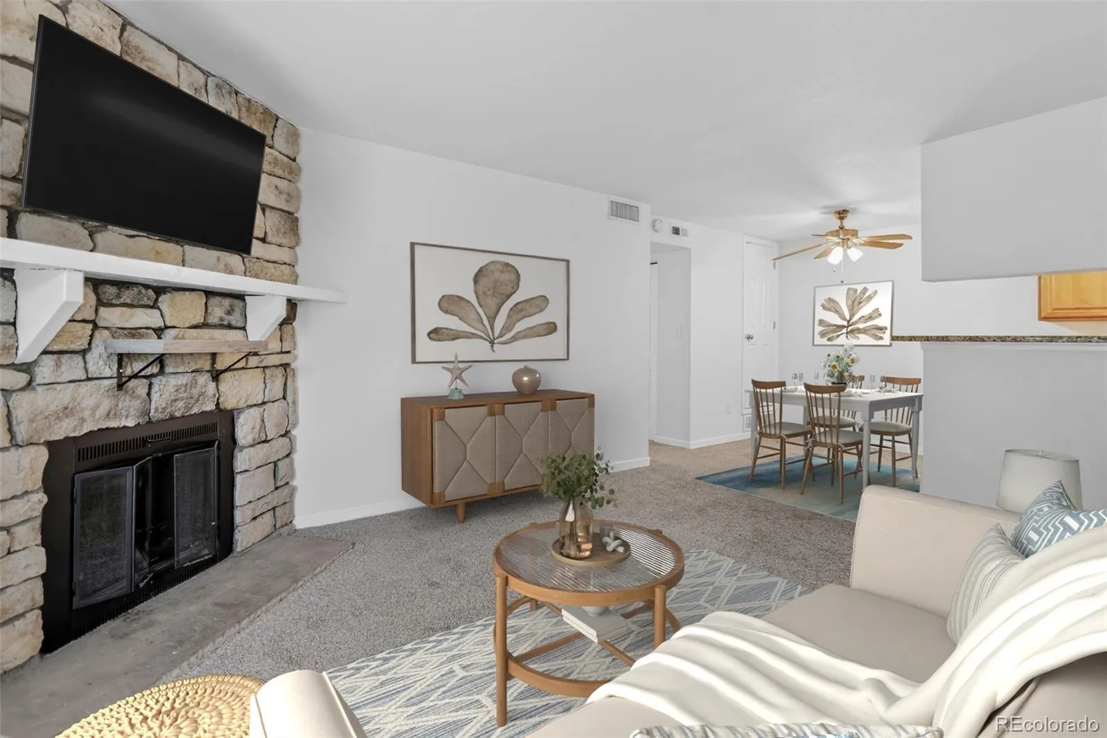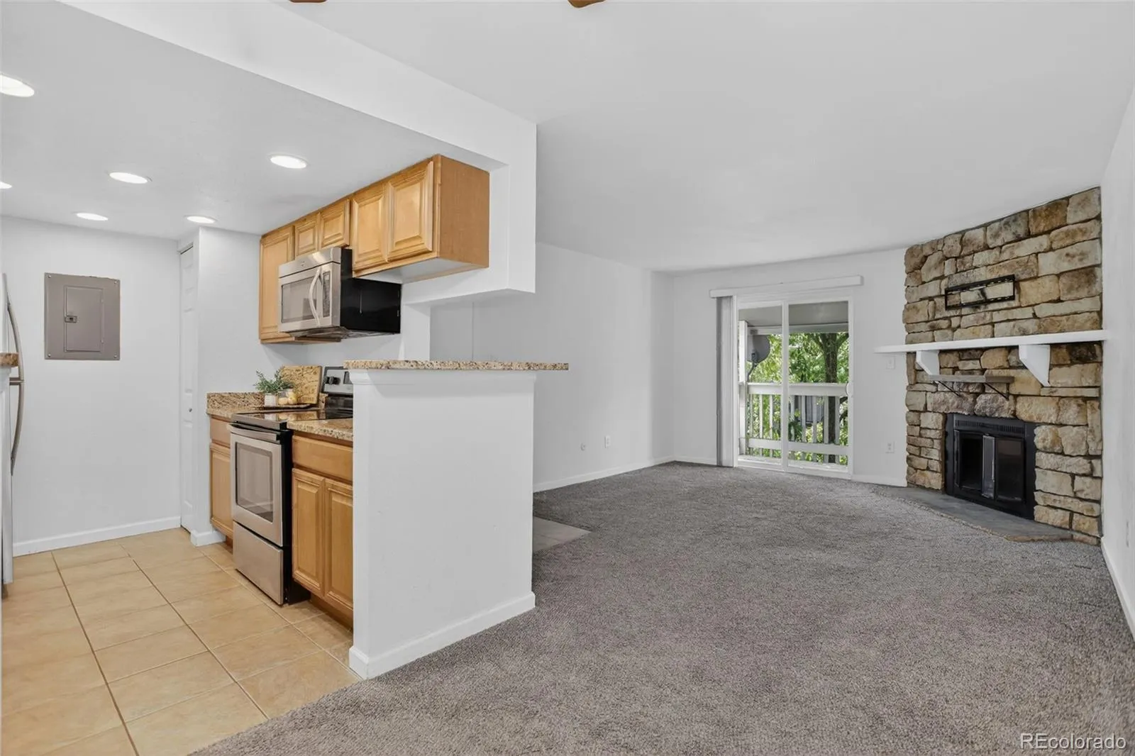 Move-in ready top-floor, turn-key condo in a prime DTC location! This 2-bed, 2-bath unit has been thoughtfully updated for the modern buyer, featuring a sleek kitchen with granite counters and stainless appliances. The open-concept floor plan is located in a quiet location in the community. Enjoy a cozy fireplace in living room that opens to a secluded, tree-lined balcony. Both bathrooms have been tastefully refreshed, and double-pane windows ensure a quiet, energy-efficient interior. Newer AC (2023) | Large Closets. Enjoy the ultimate lock-and-leave lifestyle with in-unit laundry and community amenities including a pool and tennis courts. Unbeatable location with easy access to Denver Tech Center, I-25, shopping at Park Meadows, and local parks. A great opportunity for low-maintenance living in a prime location! Some pictures have been virtually staged.
