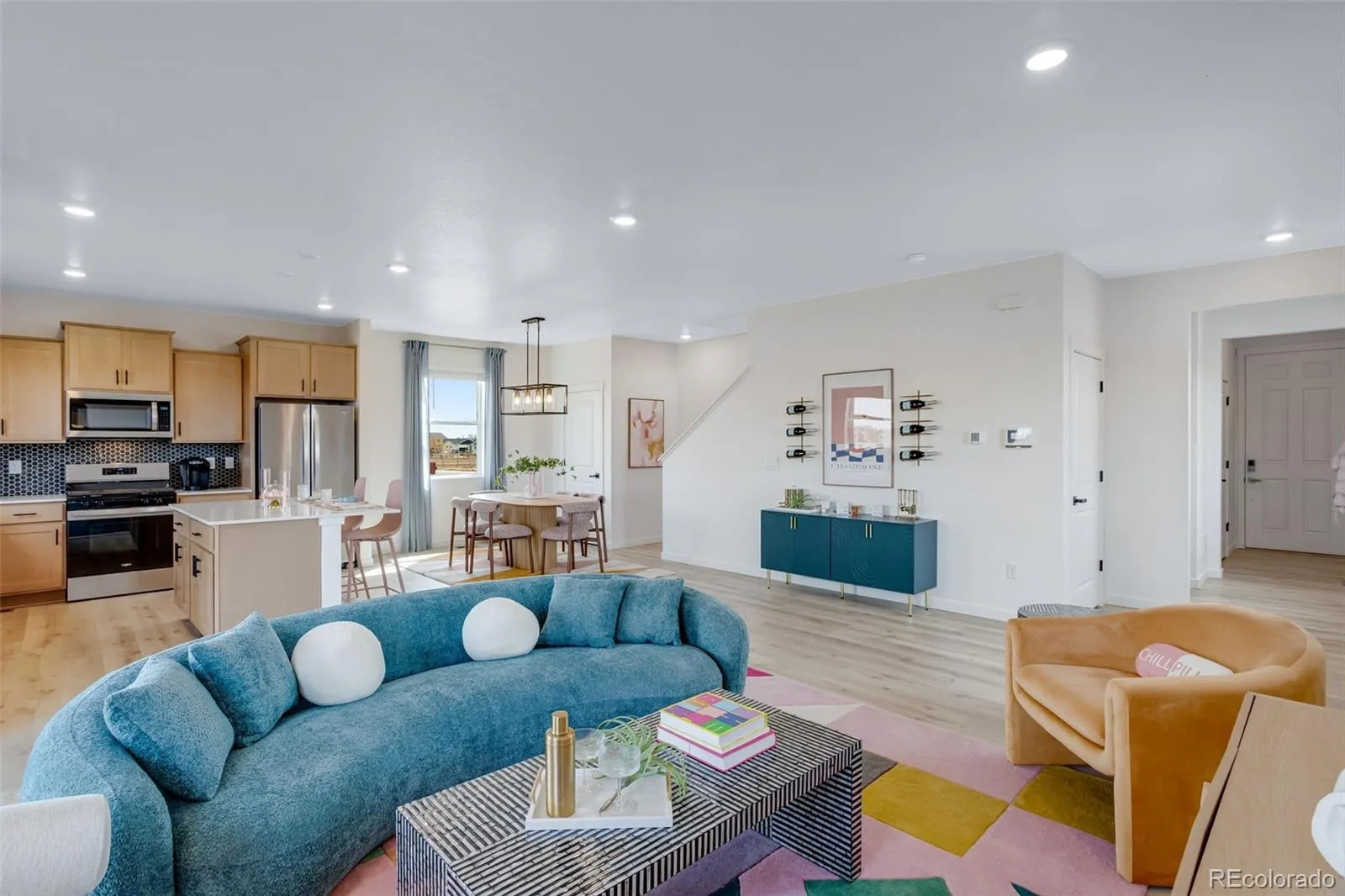 A main level with space galore that is designed for entertaining. Your guests will have room to move freely on the beautiful low maintenance laminate flooring that is throughout the main level. The kitchen showcases stainless steel gas range, microwave and dishwasher that complement the quartz top, tile back splash, neutral color cabinets and black hardware. Upstairs you have a spacious and private south facing bedroom, 1 that looks out over the community park that is right across the street. The stairs separate bedroom 1 from the 3 additional bedrooms on the second floor. Estimated Delivery Date: July allowing you to enjoy the community pool and park this summer. ***Photos are representative and not of actual property***