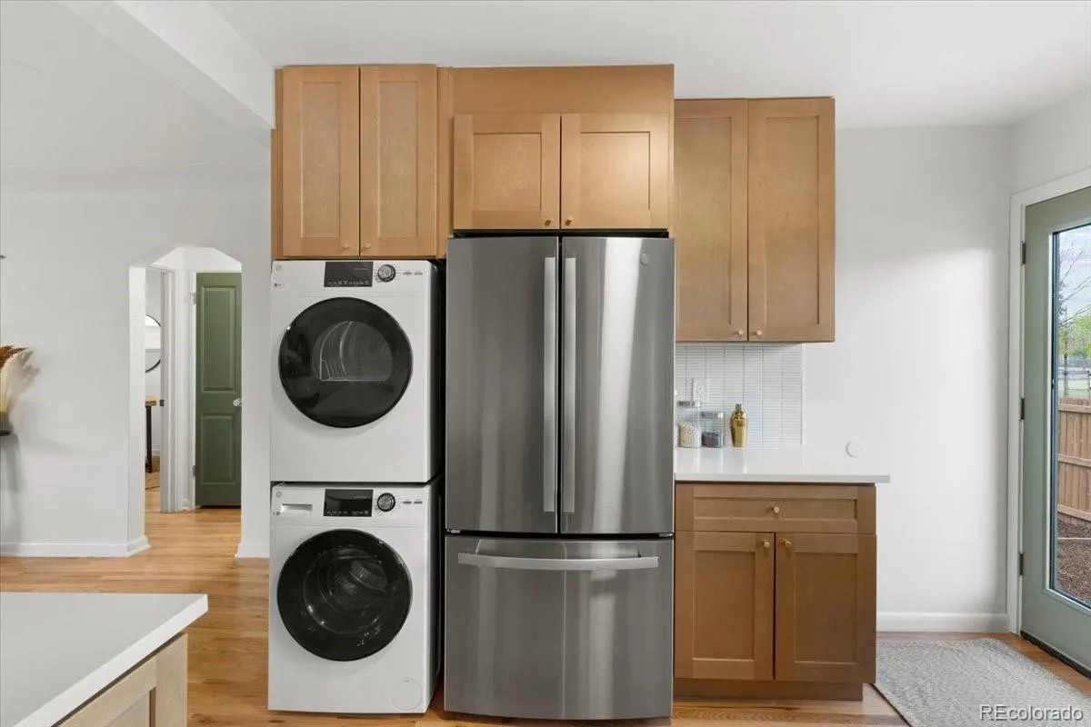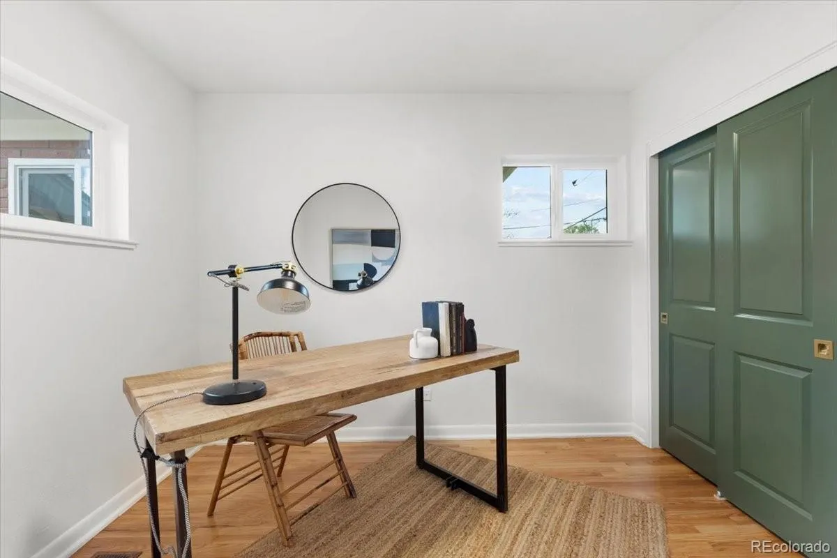 Ask us how to get a lower interest rate with $8,000 lender credit using our preferred lender! Check out this cute and comfy 2 Bedroom 1 bath townhome in North Park Hill with NO HOA! Walk into open concept living and dining. The kitchen is the highlight of the home featuring an eat-up peninsula, quartz counters, gas range with over the range microwave, a beautiful backsplash, new solid-wood cabinets, new GE stainless steel appliances, and gold hardware. Move into the hallway and find yourself at the spa-like bathroom. Completely updated with Zellige-style tile and new finishes for a modern aesthetic. 2 spacious bedrooms on either side of the hallway. Flowing naturally from the living dining area out through the back door to the private yard with patio area and a HUGE artificial turf lawn (low maintenance!) ready for BBQ’s and for the pup to play! Off street parking spot through back yard off the alley. Off the front door features another area exclusive to this unit ready for some patio furniture or some planter boxes! The unique Colorado Red Sandstone brick gives this building a native Denver flavor. This home is truly move in ready with nearly everything updated including new roof, new windows, tankless water heater, new HVAC, and brand new washer/dryer included. Some local favorites close by: Ruby’s Good Shoes, the shops and dining at Park Hill Commons, two blocks to Skyland park, public library, and rec center. Shopping/dining in Central Park nearby as well! Easy access to downtown or I70 to the mountains. Make it home while you can!