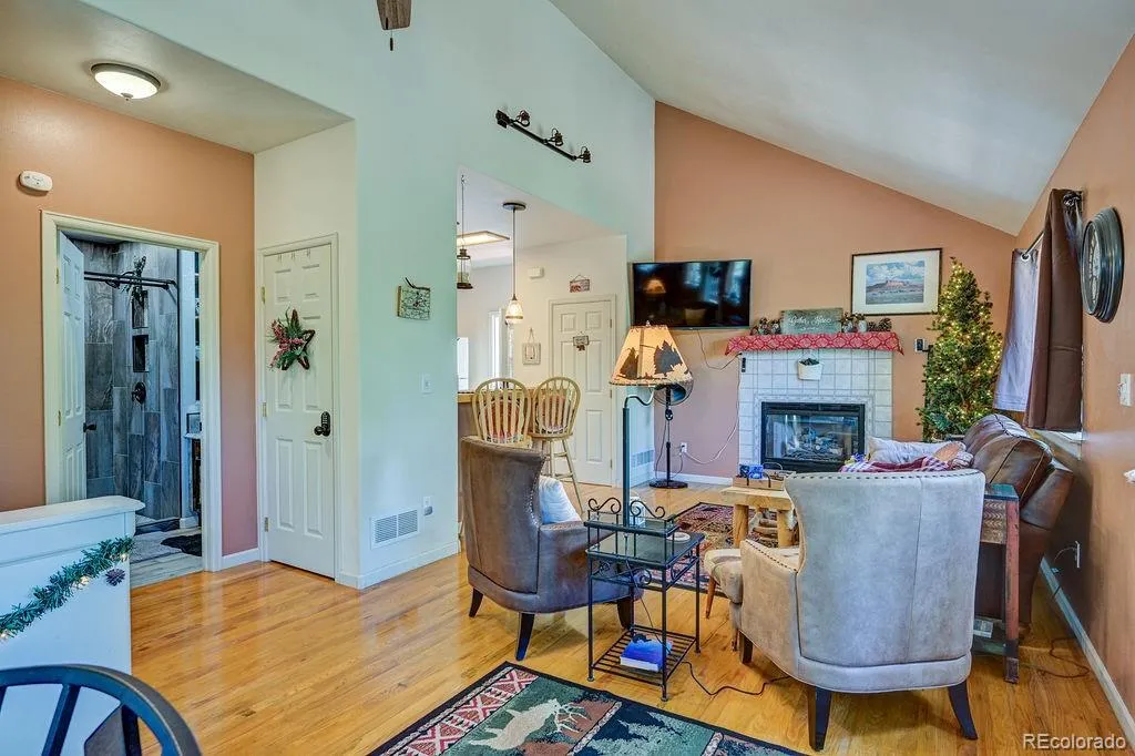 access to the crisp mountain air on the back deck. Downstairs, a cozy family room joins