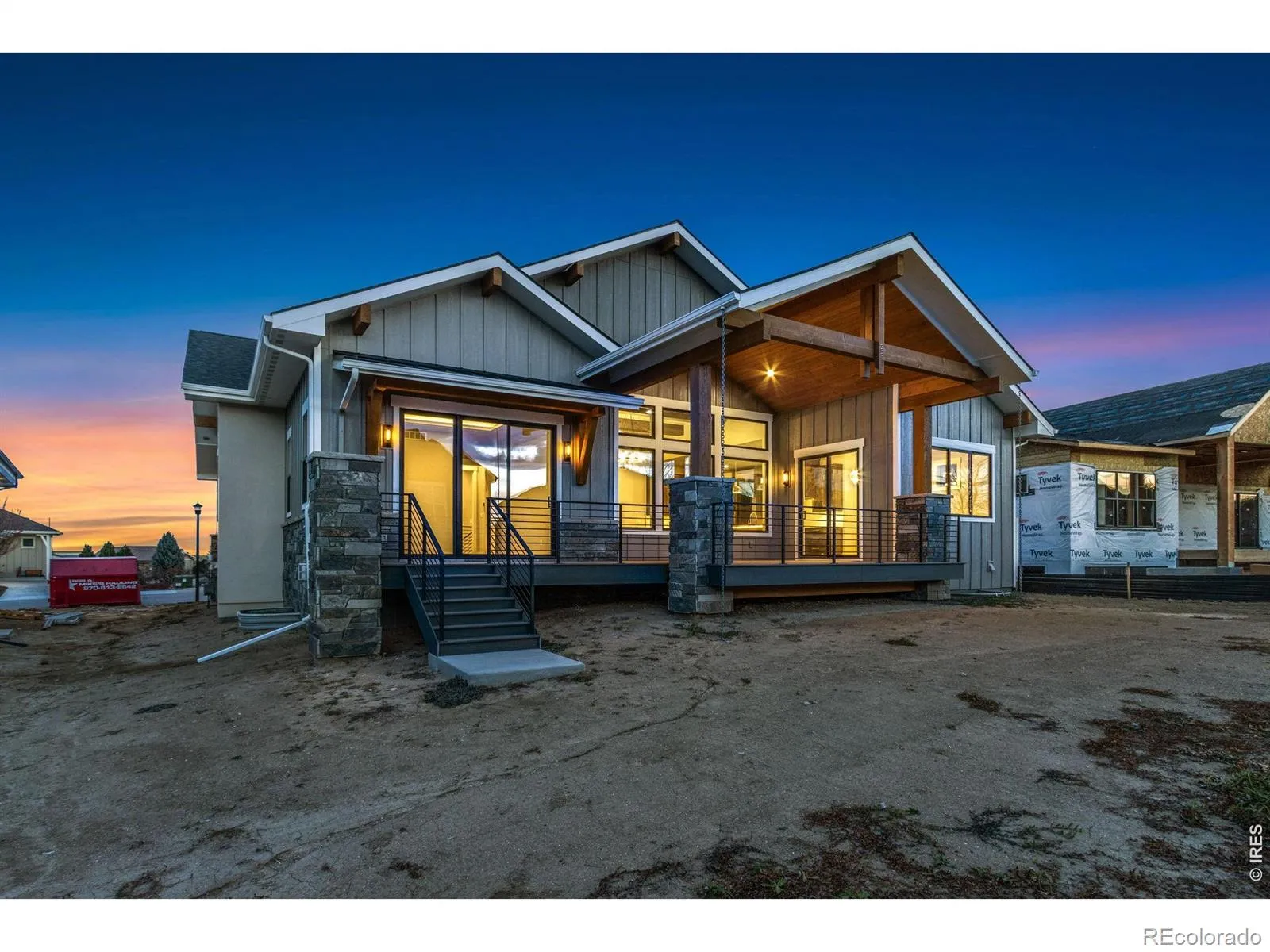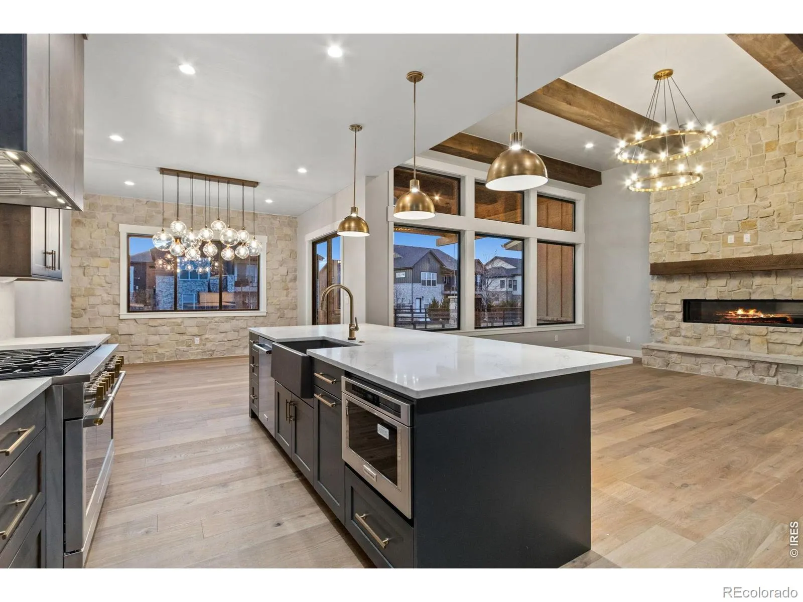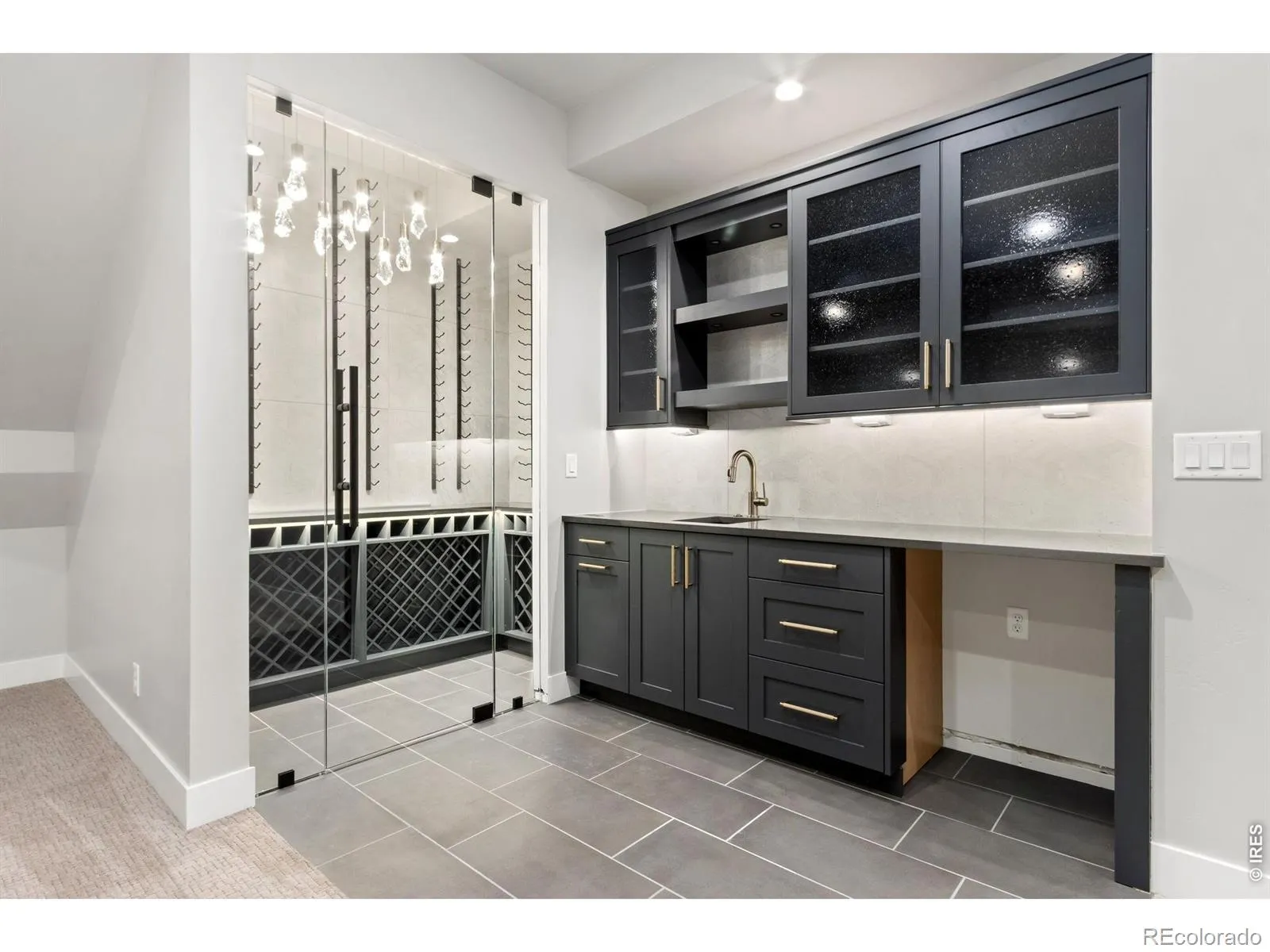 Incredible move-in-ready semi-custom ranch by Haven Builders, showcasing high-end finishes and thoughtful design throughout. This home is built for entertaining, featuring an open-concept kitchen, dining, & living room, plus a spacious basement w/rec room, media area, wet bar & custom wine room. Luxurious primary suite offers a spa-like bath, expansive walk-in closet & direct access to the patio. Additional highlights include wide-plank white oak flooring on the main level, rough-sawn custom beams, gourmet appliances with a built-in Miele coffee machine, and a cozy gas fireplace. Enjoy the covered back patio and an oversized garage. Enjoy pool & tennis courts included in metro district! Move in ready semi-custom home by Haven Builders