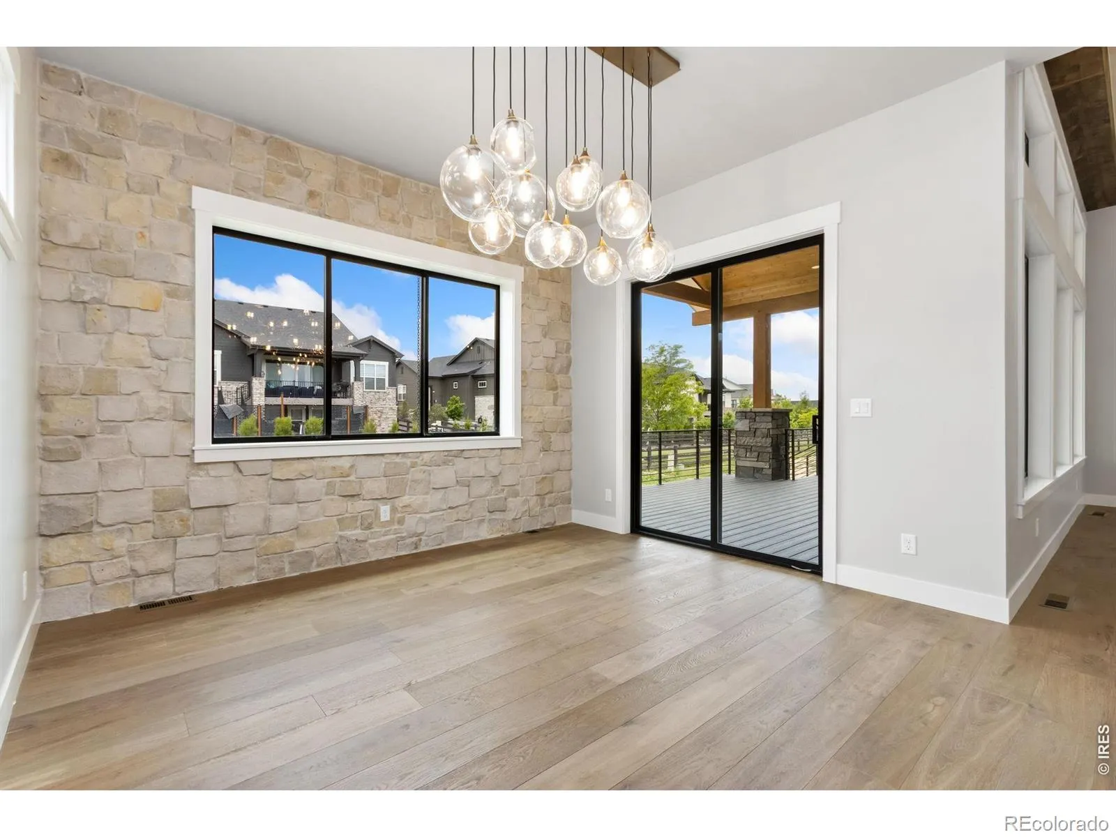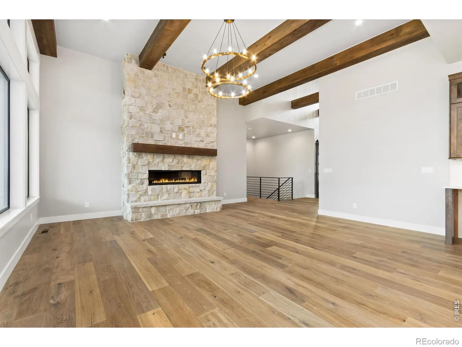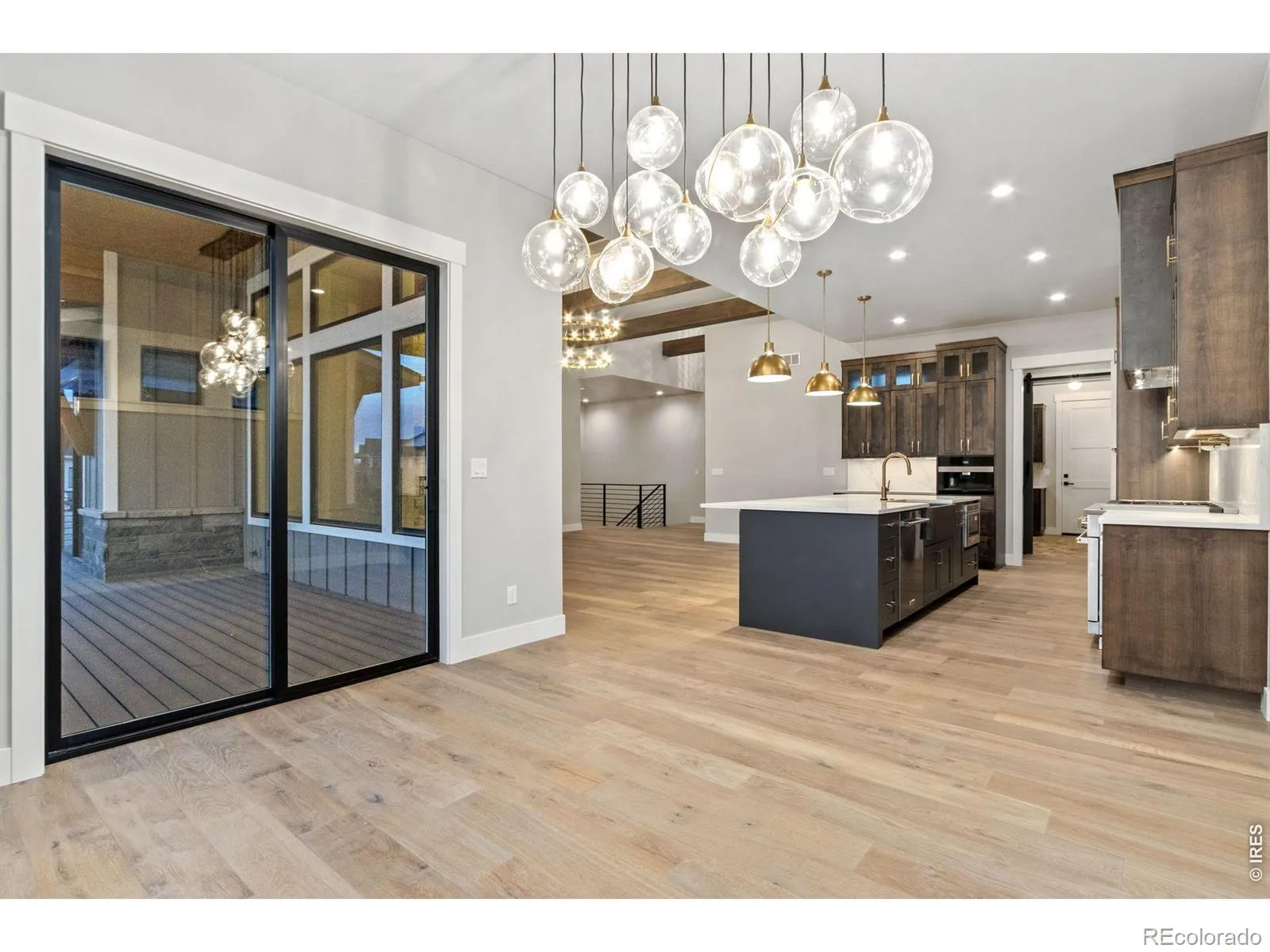 Incredible move-in-ready semi-custom ranch by Haven Builders, showcasing high-end finishes and thoughtful design throughout. This home is built for entertaining, featuring an open-concept kitchen, dining, & living room, plus a spacious basement w/rec room, media area, wet bar & custom wine room. Luxurious primary suite offers a spa-like bath, expansive walk-in closet & direct access to the patio. Additional highlights include wide-plank white oak flooring on the main level, rough-sawn custom beams, gourmet appliances with a built-in Miele coffee machine, and a cozy gas fireplace. Enjoy the covered back patio and an oversized garage. Enjoy pool & tennis courts included in metro district! Move in ready semi-custom home by Haven Builders